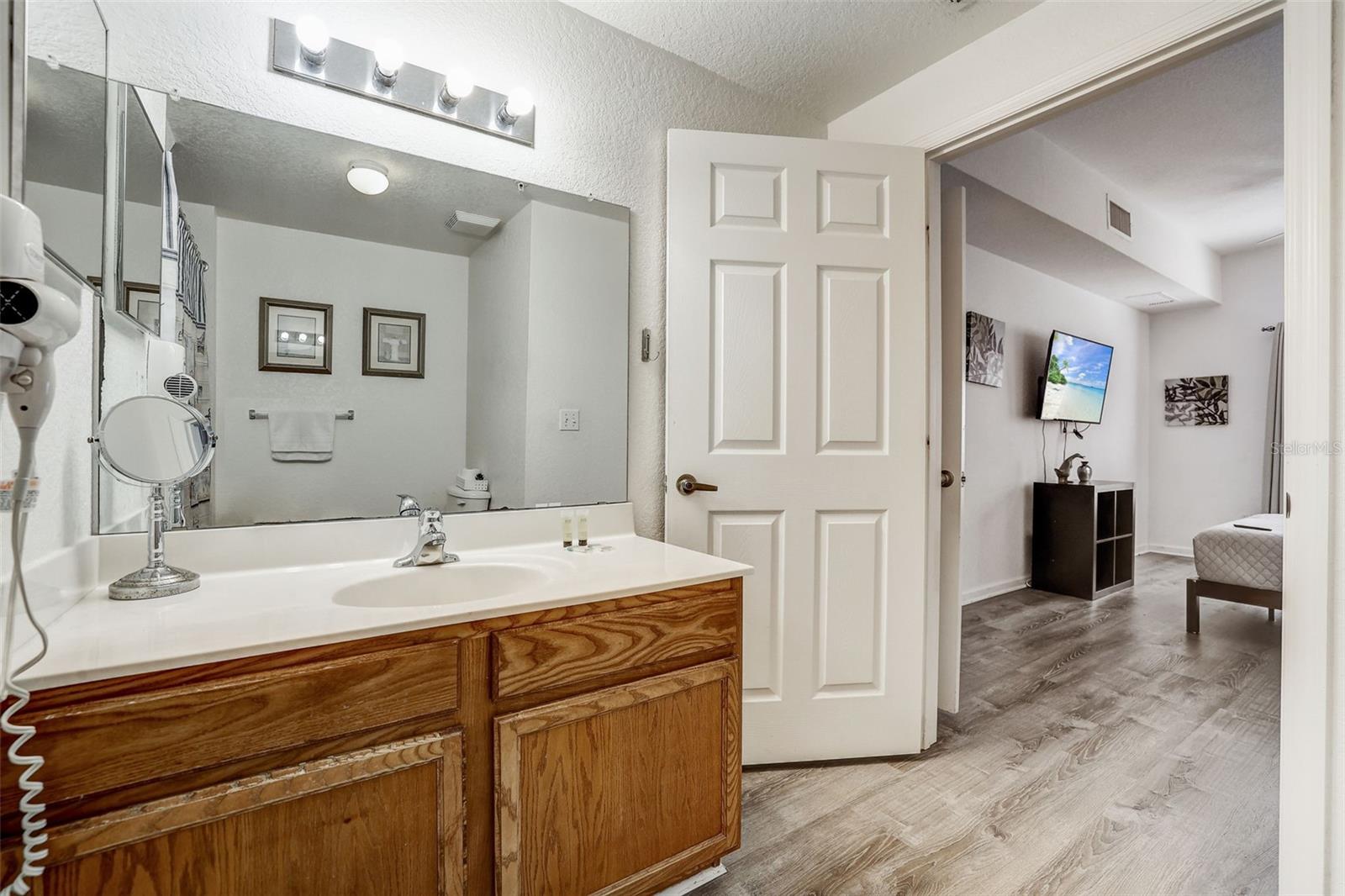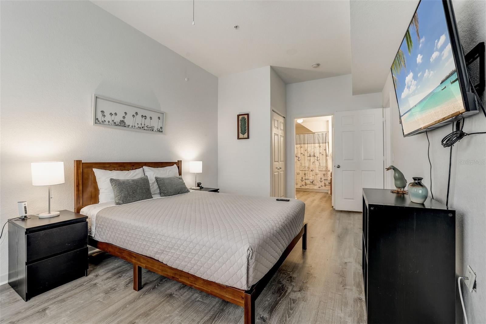 Welcome to this exquisite corner unit townhouse, meticulously maintained and boasting 4 bedrooms and 3 bathrooms. The first floor welcomes you with a spacious family room, tastefully adorned with a comfortable living set and dining area. The fully equipped kitchen features all modern appliances and a convenient breakfast bar. The master bedroom, situated on the first floor, offers privacy and luxury with its own ensuite bathroom featuring a relaxing bathtub. Ascend to the second floor to discover a second ensuite bedroom, along with two additional bedrooms that share a well-appointed bathroom. For your convenience, a washer and dryer are included within the residence. This property comes "fully furnished", ensuring a seamless transition for immediate rental opportunities. With a proven track record in short-term rentals, this townhouse is a sound investment. Ideally located in a prime area, it is in proximity to theme parks, shops, and restaurants. The community itself offers a plethora of amenities, including a spacious swimming pool, a heated spa, basketball and tennis courts, and a well-equipped clubhouse with computers. Whether you're considering this property as a vacation home or a permanent residence, seize the opportunity to experience the ultimate in resort-style living. Don't miss out on making this exceptional property your own