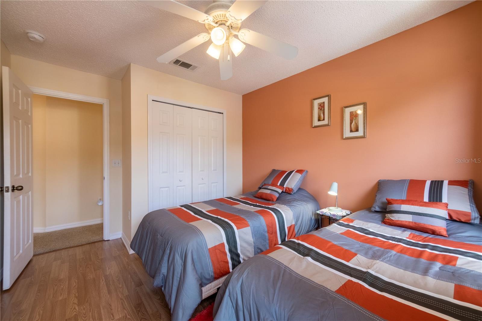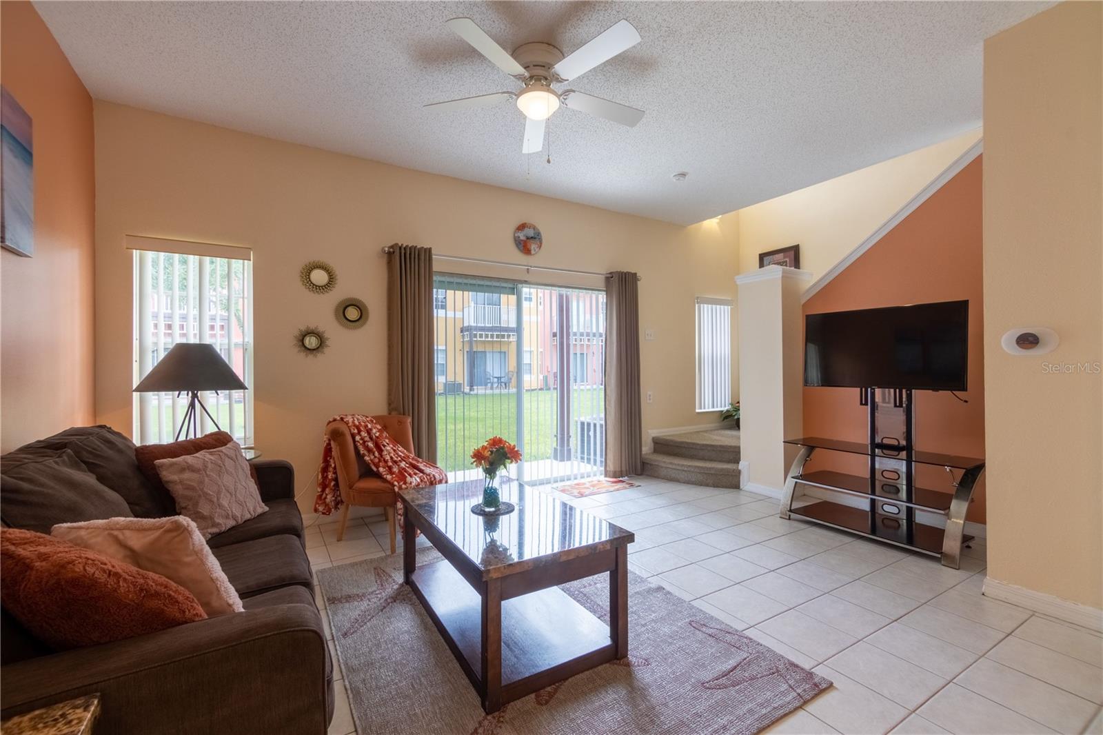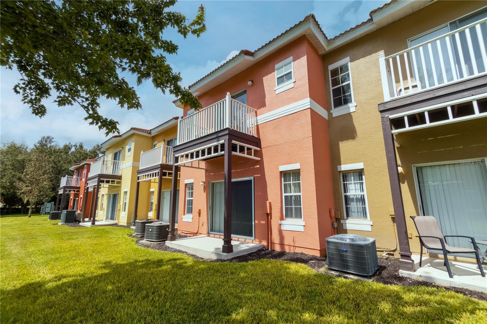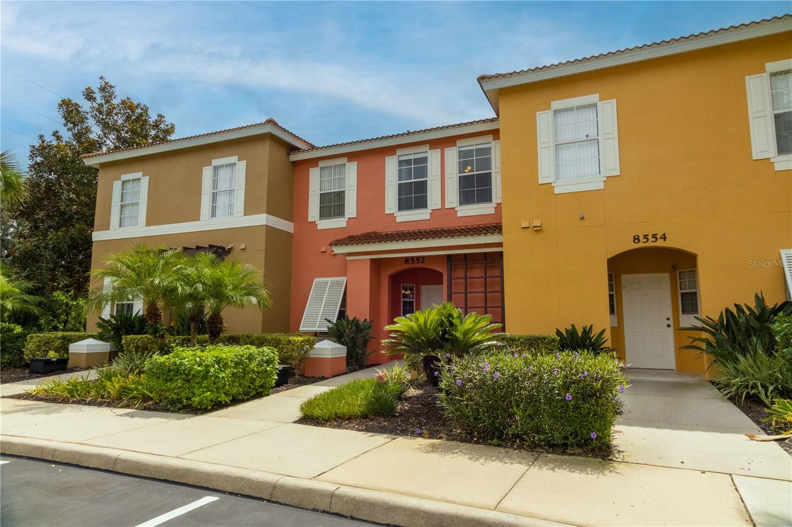 **Newly painted and ready to go!!** Beautiful 3-bedroom, with 2 and a half baths townhouse, fully-furnished, is available now for your new vacation home, or permanent home! Living-room, dining area and kitchen are all on the first level, along with a half-bath and laundry room, with three bedrooms and two bathrooms upstairs. A lovely balcony off the master bedroom is ideal for that morning coffee!! Situated in a quiet street with trees at the end, and open area out back, this townhouse is in a lovely location, and only a minute's walk to the community pool! Owners or guests can also use the main community pool, clubhouse, and fitness center in Emerald Island. Location is ideal for shopping, restaurants, theme parks, and all the fun things that Orlando can offer!! Don't miss this one!!