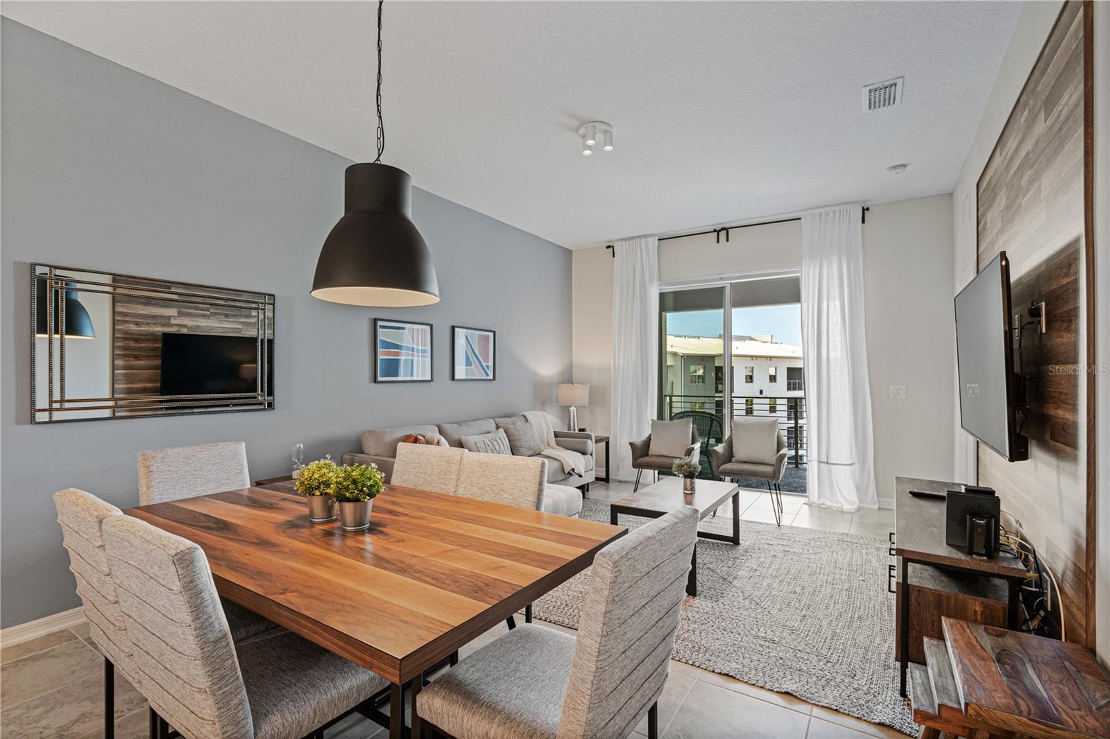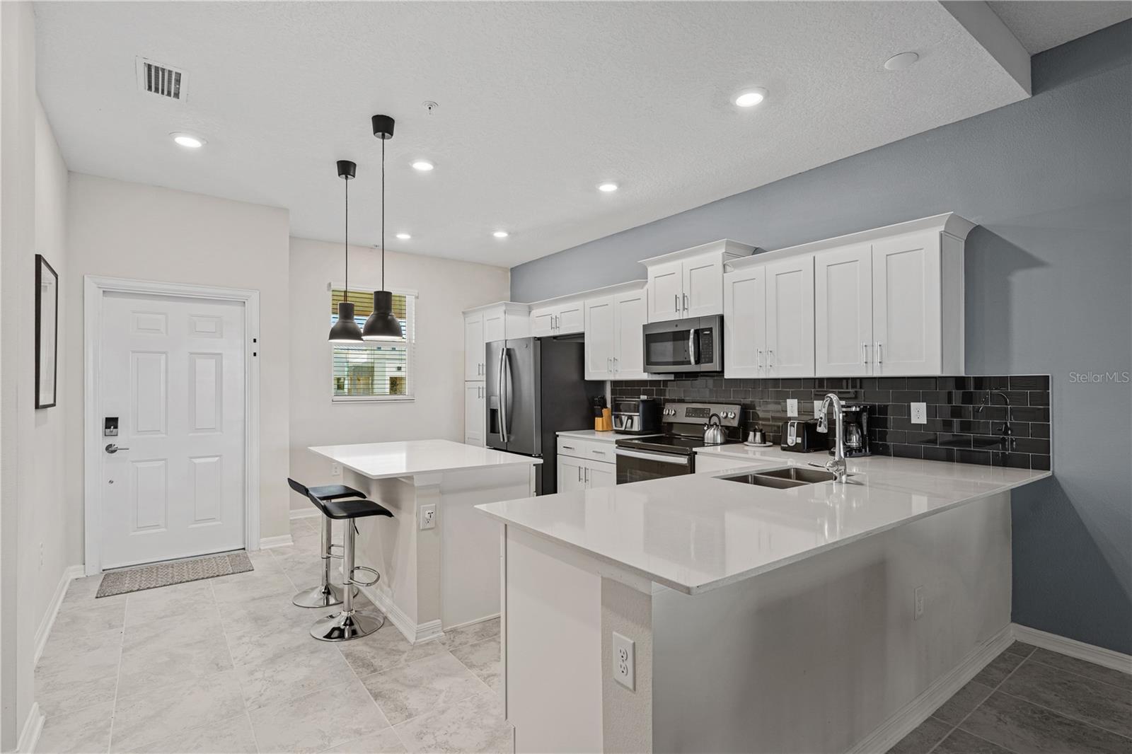 Exquisitely appointed and adorned, this condominium embodies luxurious living. Nestled within the prestigious Storey Lake Community, this property is available for short-term rentals, making it an ideal choice for discerning travelers seeking both opulence and convenience. The kitchen, a masterpiece of modern design, boasts high-end features such as quartz countertops, 42" cabinets, and stainless steel appliances, enhancing the culinary experience for residents and guests alike. The sophisticated decor, meticulously curated, envelops the entire space, creating an ambiance of refined elegance. Storey Lake Community stands as a paragon of resort living in Orlando, offering an unparalleled vacation experience. At its heart lies the Hideaway Club, a splendid clubhouse replete with amenities tailored for active families. The community boasts multiple sports courts, a thoughtfully designed playground, and a resort-style swimming pool complete with a captivating splash park, representing the pinnacle of leisure and entertainment. In summary, this impeccably furnished and decorated condo, situated within the Storey Lake Community, presents an exceptional opportunity for those seeking a luxurious and convenient retreat in the heart of Orlando. Experience the essence of resort living amidst a backdrop of unparalleled beauty and comfort.