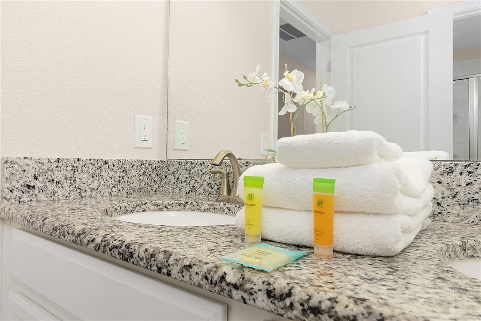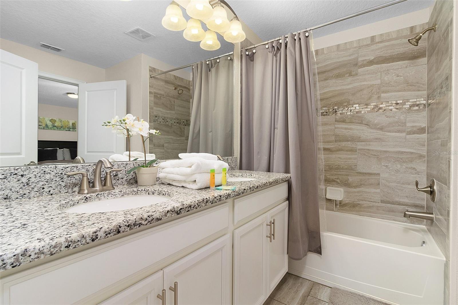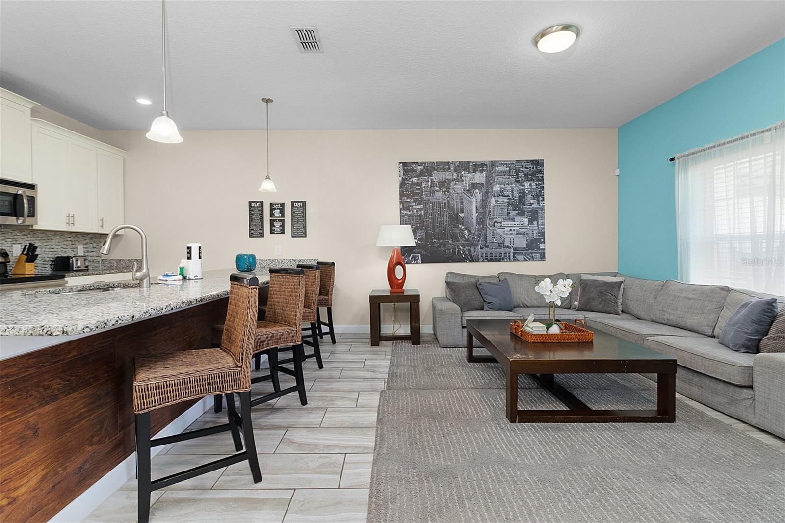 Excellent Investment Opportunity in STOREY LAKE Community! Welcome in this 4/3 TOWNHOME located in the desirable RESORT community ** STOREY LAKE ** by Lennar Homes, and make yourself at home! This beautifully decorated, fully FURNISHED, and filled with natural light home, has it's own PRIVATE HEATED POOL with screen enclosure. As you enter through the front door using your door code, be amazed by this READY TO MOVE IN home. The kitchen has robust WHITE 42"CABINETS, STAINLESS STEEL APPLIANCES such as built in microwave, dishwasher, range and side by side refrigerator. All granite countertops, granite ISLAND with double sink make this open kitchen/family room perfect for family gatherings and durable if you wish to rent it to SHORT TERM guests. The sliding doors in the main area lead to a covered patio area with a HEATED POOL with plenty of room to relax. The first floor offers a full bathroom with granite counters and a beautifully adorned bedroom with dual closets. Additional bedrooms are strategically placed on the second floor, ensuring privacy. The LUXURIOUS master bedroom features a private bathroom with double vanity, granite counters, and white cabinets. The second and third bedrooms share a full bathroom with double vanity, granite counters, and white cabinets as well. All bedrooms are carpeted for added comfort, with a conveniently located laundry room on the second floor. Conveniently situated just 25 minutes from Orlando International Airport and a mere 10-minute drive to Disney's iconic attractions. Seaworld, Universal Studios, and Central Florida's renowned attractions are within easy reach. Indulge in RESORT-STYLE AMENITIES including various pools, water slides, a lazy river, hot tub, spa, splash park, mini-golf, sports courts, a top-notch gym, tiki bar, restaurants, and more. The association fee covers a plethora of services, including 24-hour manned and unmanned gates, cable TV, internet, common ground taxes, street lighting, valet trash service, exterior maintenance of the unit, ground and landscape maintenance, a sprinkler system with reclaimed water, and sidewalks. Don't miss the chance to explore this INCREDIBLE INVESTMENT OPPORTUNITY that offers luxurious living and excellent INCOME POTENTIAL through renting when not in use. Schedule a Showing Today!