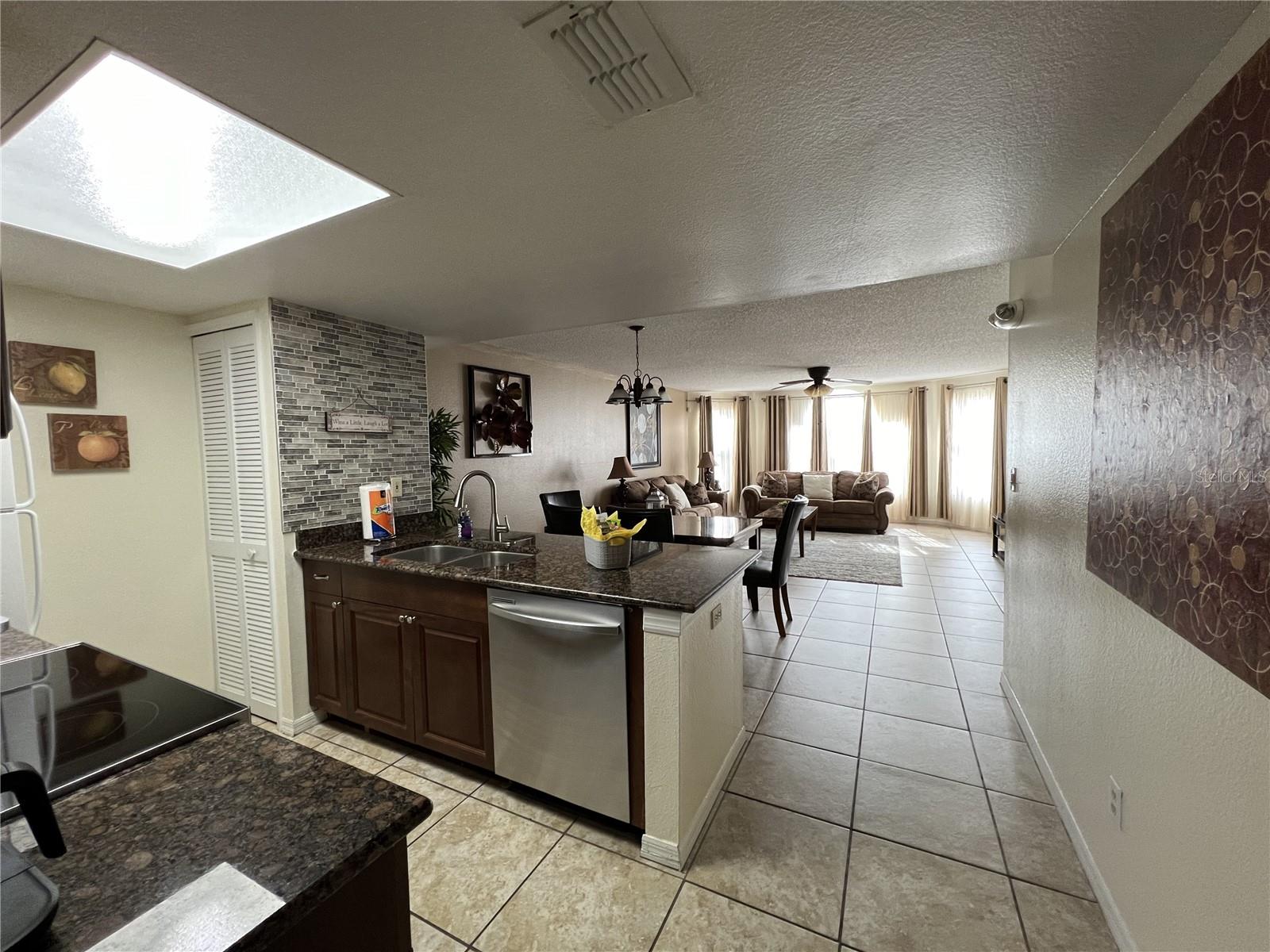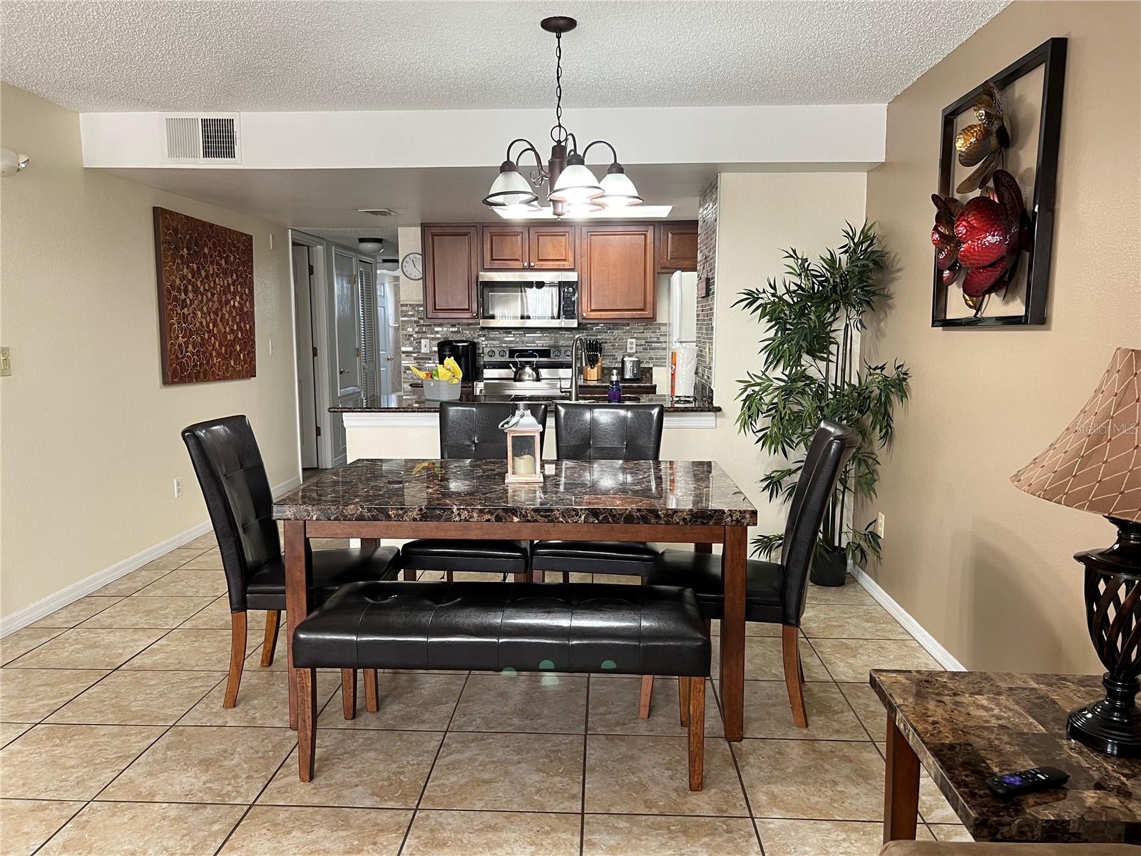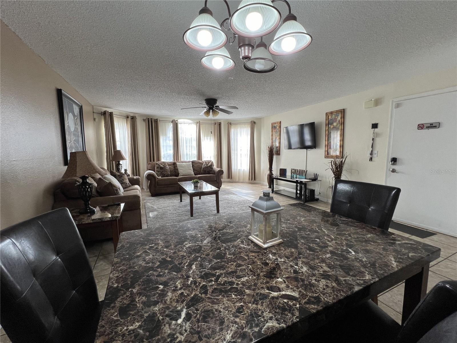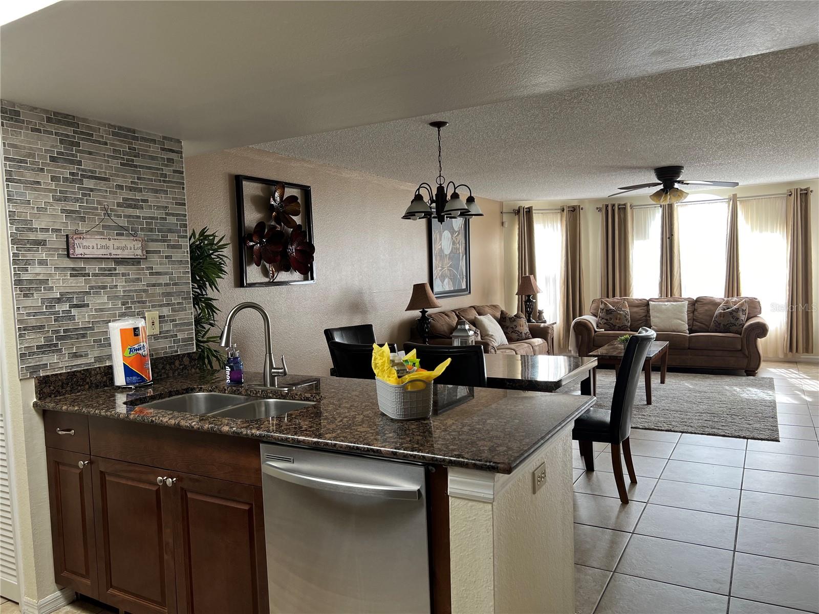 3-BR, 2-BA condo so close to Disney, approved for short-term rental. This tastefully renovated home can be a perfect second home for family vacations or live the vacation lifestyle year-round! Easy-care ceramic tile flooring throughout the home, except for bedrooms, which are carpeted. Large living room with a bay window for lots of natural light. Open floor plan for easy entertaining. The kitchen features a granite breakfast bar with seating, and all appliances will stay, to include the new glass cooktop range. The dining room has ample space for family dining. The primary bedroom has a new sliding glass door with in-glass blinds out to the back patio, a walk-in closet, and newly remodeled en suite bath with granite sink counter and tiled step-in shower. The two secondary bedrooms share the second full bath, which also has been newly remodeled with tiled tub enclosure, and granite-topped vanity. The washer and dryer will also stay. AC was replaced in 2021. Sweetwater Club is surrounded by tropical plantings, and amenities include a clubhouse, perfect for gatherings. There are tennis courts, basketball courts, a fitness center, and covered BBQ area. Take a dip in the pool anytime! The HOA pays your sewer, trash and water bills. No lawn mower needed, as the HOA maintains the grounds. This location provides easy access to shopping centers, grocery stores, restaurants, and retail outlets. And don't forget the world-famous theme parks. Whether you are looking for a place to call home all year, or a vacation home, or you are seeking a lucrative investment opportunity, this property has it all. With a full price offer, this unit will being sold fully furnished, an added value for you. Check it out soon, they sell quickly here!