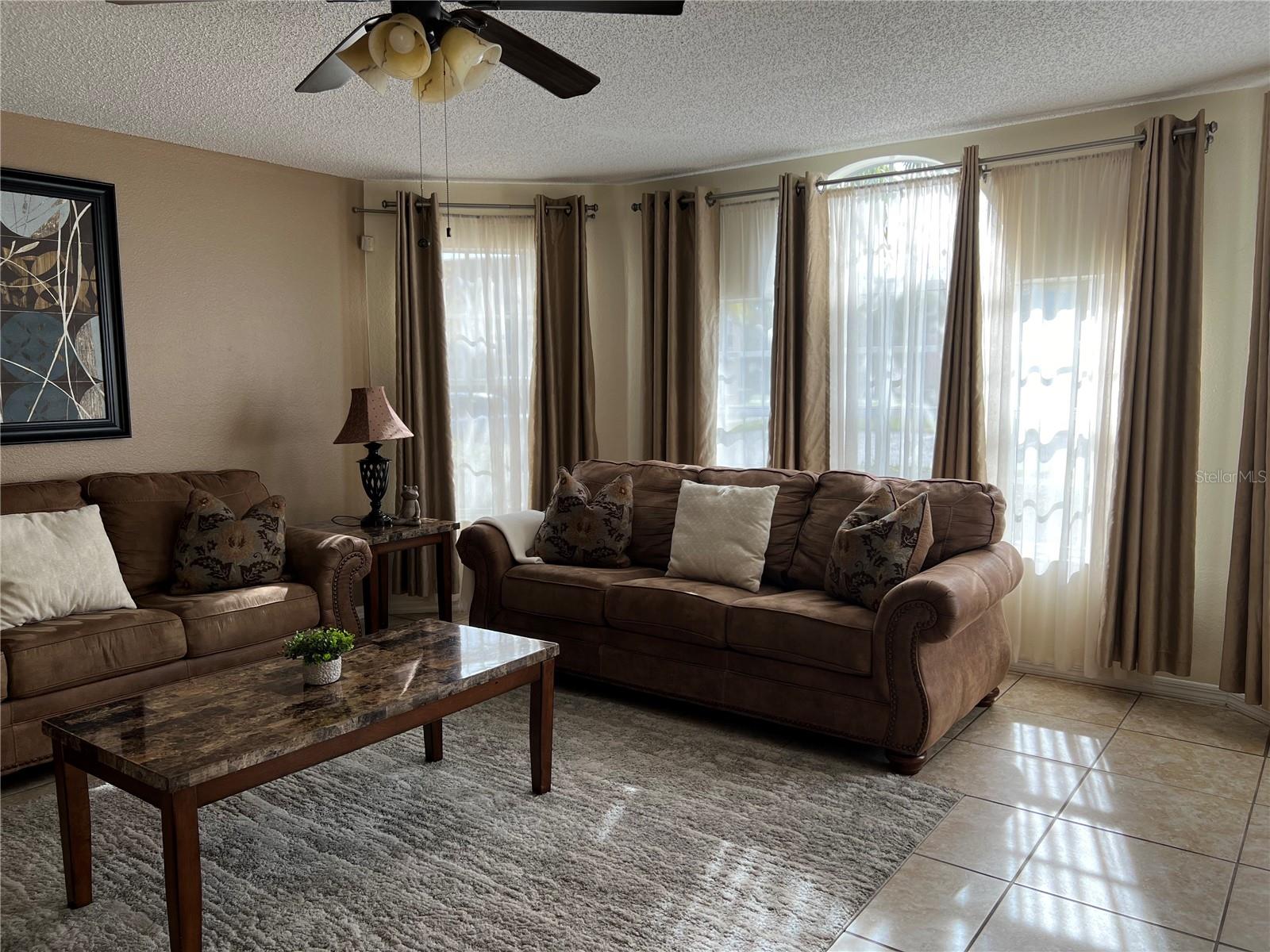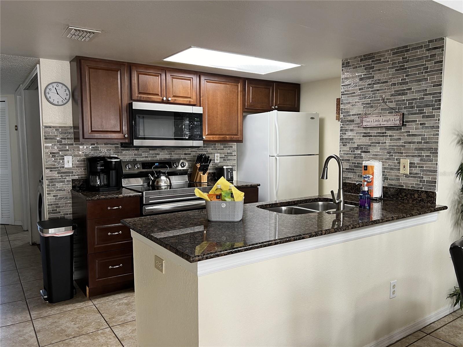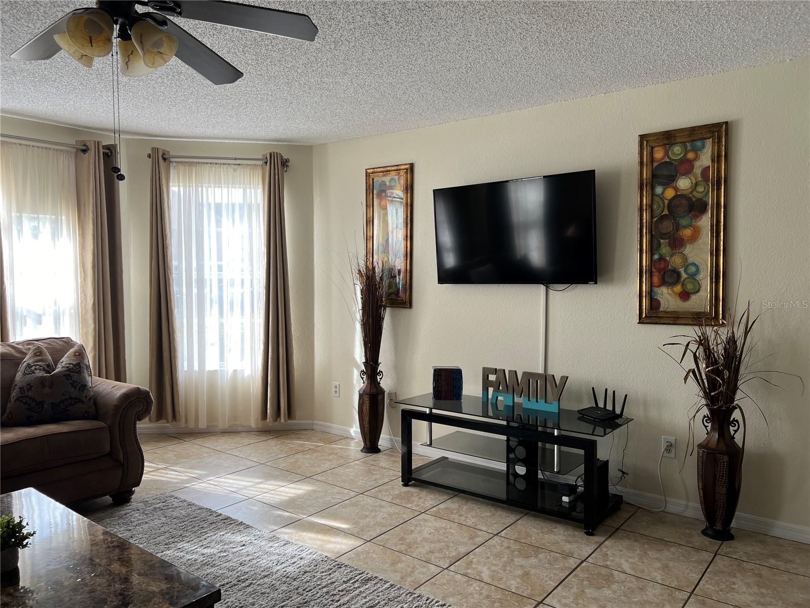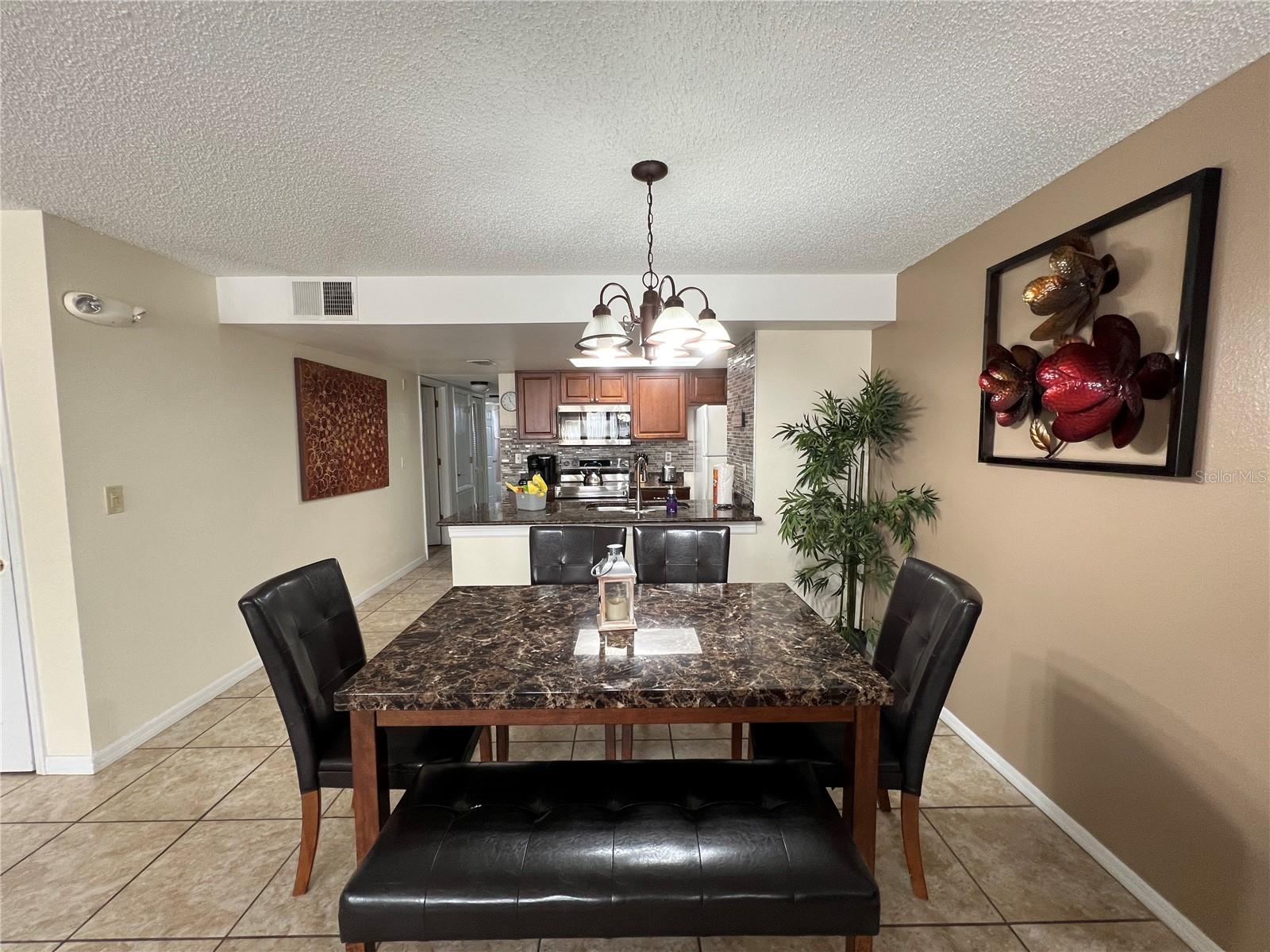 3-BR, 2-BA condo so close to Disney, approved for short-term rental. This tastefully renovated home can be a perfect second home for family vacations or live the vacation lifestyle year-round! Easy-care ceramic tile flooring throughout the home, except for bedrooms, which are carpeted. Large living room with a bay window for lots of natural light. Open floor plan for easy entertaining. The kitchen features a granite breakfast bar with seating, and all appliances will stay, to include the new glass cooktop range. The dining room has ample space for family dining. The primary bedroom has a new sliding glass door with in-glass blinds out to the back patio, a walk-in closet, and newly remodeled en suite bath with granite sink counter and tiled step-in shower. The two secondary bedrooms share the second full bath, which also has been newly remodeled with tiled tub enclosure, and granite-topped vanity. The washer and dryer will also stay. AC was replaced in 2021. Sweetwater Club is surrounded by tropical plantings, and amenities include a clubhouse, perfect for gatherings. There are tennis courts, basketball courts, a fitness center, and covered BBQ area. Take a dip in the pool anytime! The HOA pays your sewer, trash and water bills. No lawn mower needed, as the HOA maintains the grounds. This location provides easy access to shopping centers, grocery stores, restaurants, and retail outlets. And don't forget the world-famous theme parks. Whether you are looking for a place to call home all year, or a vacation home, or you are seeking a lucrative investment opportunity, this property has it all. With a full price offer, this unit will being sold fully furnished, an added value for you. Check it out soon, they sell quickly here!