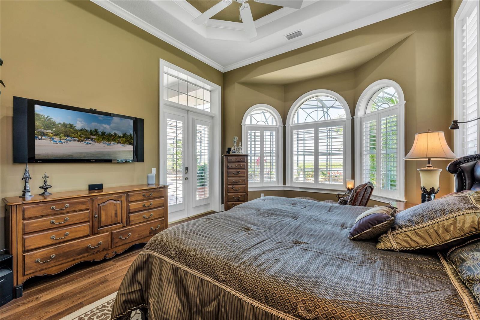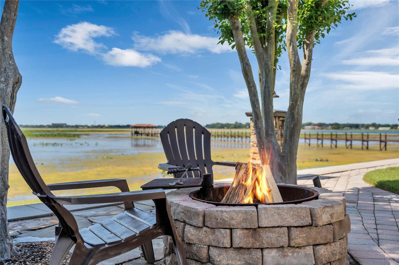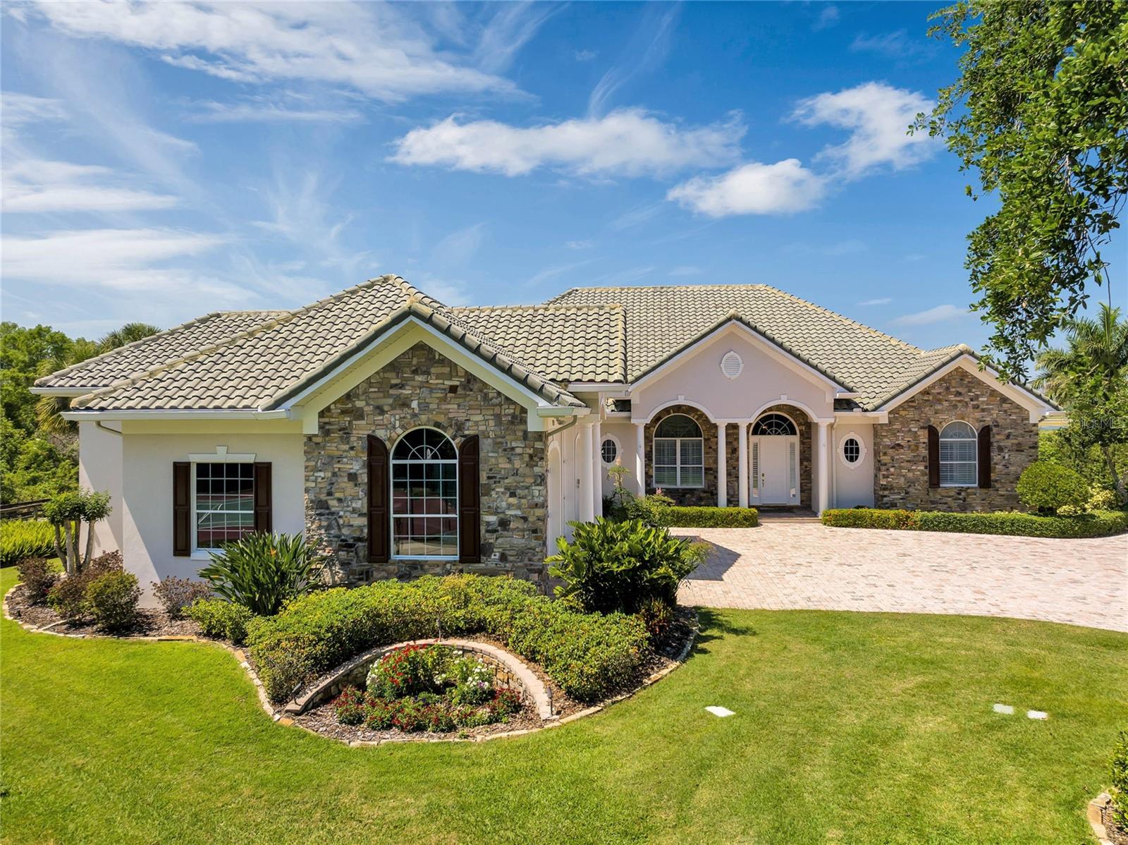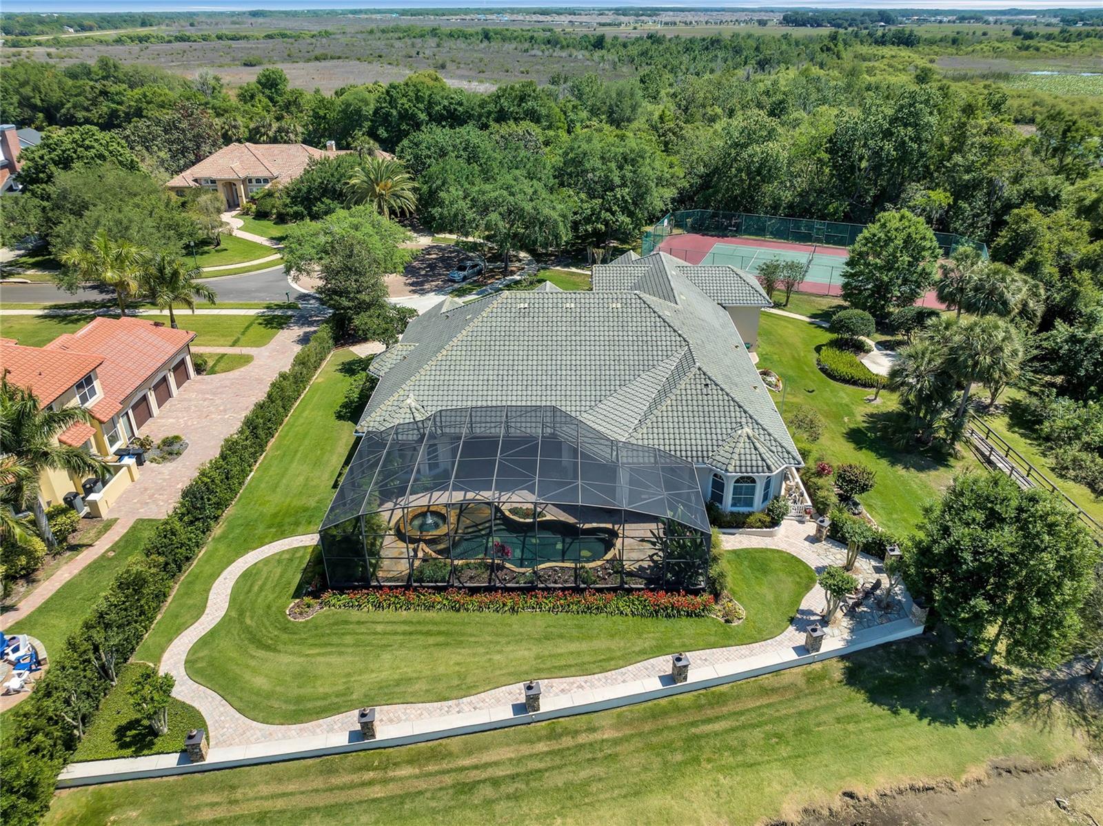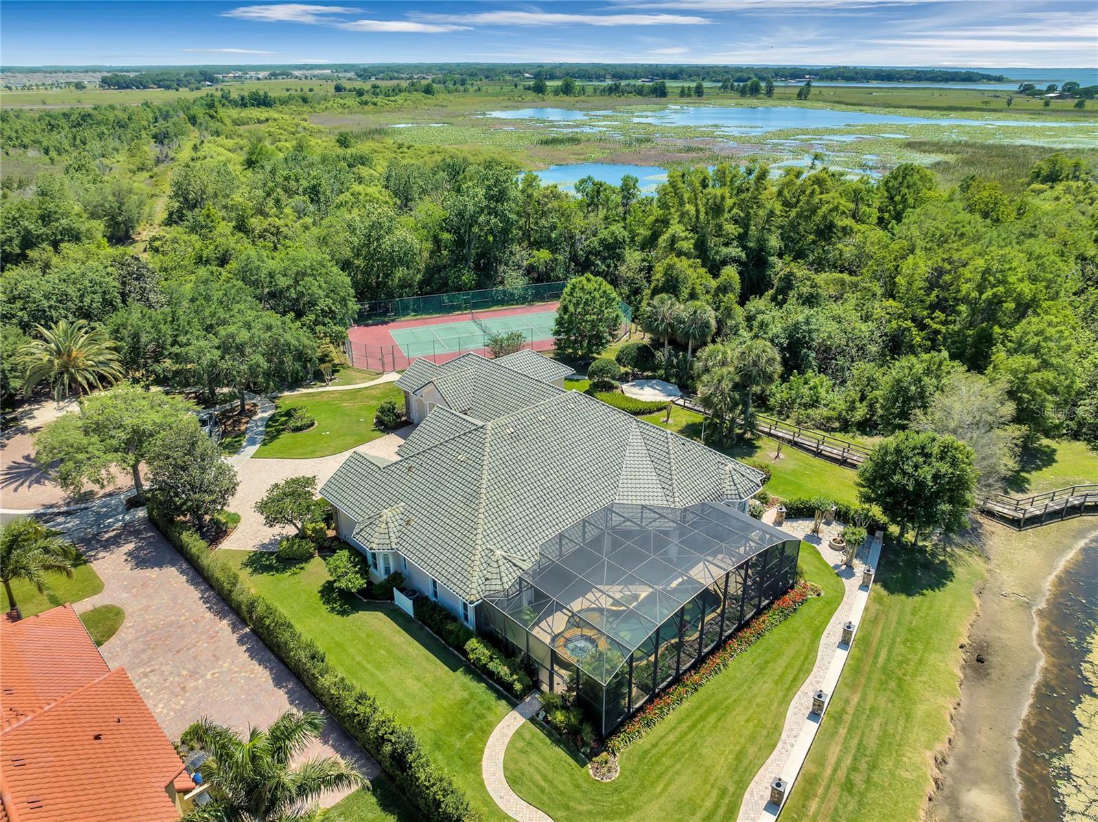 Experience breathtaking Florida LAKEFRONT SUNSETS from this stunning and unique custom home in the sought-after gated community of Sunset Pointe. Situated near shopping, DISNEY/UNIVERSAL/SEA WORLD, major transportation, hospitals, LAKE NONA, and NEO CITY and nestled amongst only 14 properties, this secluded oasis offers the perfect blend of privacy, security and convenience. On the shores of West Lake Tohopekaliga, the home is adjacent to a conservation area and is connected by a walking/biking path to historic Downtown Kissimmee, where you can catch a SunRail train to downtown Orlando/Winter Park, launch a boat from the marina, take in entertainment at the lakefront park, indulge in local dining, enjoy the nightly fireworks on the horizon from the attractions, celebrate the 4th of July with a spectacular view of the City fireworks, or catch the SpaceX launches from the front yard. The ORLANDO INT'L AIRPORT is just 16 miles away, and COCOA BEACH is a 60-mile drive. The low maintenance exterior of the home boasts a barrel tile concrete roof and genuine Tennessee fieldstone, which carries through to the waterfalls in the lagoon-style saltwater pool and hot tub overlooking the lake. Step inside this luxurious home and discover a world of comfort and elegance. The primary suite features dual walk-in closets and vanities, a deep jetted tub, shower with dual heads/slide bars/seat, and direct access to the lanai. The updated kitchen is a chef's dream, boasting SS Bosch double oven and dishwasher, KitchenAid glass cooktop, a Samsung 4-door refrigerator, cast iron Kohler sink, prep island, instant hot water dispenser, wine rack, pull-out trays, tilt-out trays and granite countertops. The spacious utility room has a laundry tub, built-in cabinetry w/desk, solid surface countertops, space for a washer/two dryers, built-in ironing board and 3 built-in laundry hampers. Additional highlights include spacious 12' ceilings throughout, transom windows, bay windows, crown molding, architectural trim with tray/coffered ceilings, a gas ventless fireplace, 3 bookcase, custom louvered shutters and abundant storage. Keep cool with a 3-zone A/C system for energy efficiency and comfort control, not to mention an 80-gallon hot water heater with recirculating pump, water filtration system with ozonator, carbon filter and softener. The garage is truly impressive, measuring over 1500 sf with 3 oversized doors (10x10 and 12x13), 12' and 14' ceilings, and a deep center bay for an RV/boat/antique car. It's also wired for EV charging and offers ample storage space, including shelving, two huge closets, a utility sink/cabinet above and attic storage. Room for all your tools and toys! Indulge in the ultimate entertainment experience with surround sound prewiring in the family room and primary bedroom, speaker prewiring on the lanai, intercom system and in-wall/ceiling speakers with volume controls throughout the home. Smart wire and dimmer switches, Google Nest(R) doorbell, LED lighting and automatic night lights offer some of the latest technology and conveniences. If you enjoy spending your leisure time fishing, boating, bird/nature-watching, playing tennis or simply relaxing by the lagoon-style saltwater pool with fountain and waterfalls, you won't want to miss the opportunity to own this custom home of unparalleled quality and luxury. Check out the floorplan and virtual tour for more details.