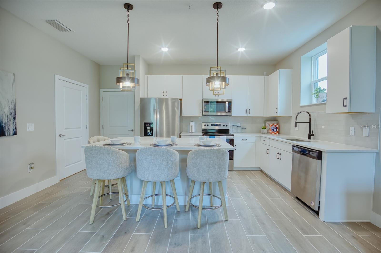 Under Construction. Introducing our brand new townhome, boasting high ceilings, a gourmet-style kitchen, a charming primary suite, and a spacious two-car garage! This modern townhome community offers 3 bedrooms and 2.5 baths. Stepping into the foyer, you're greeted with a tiled floor open concept, featuring a generous kitchen with bar seating, a dining area, and a living room opening to a covered patio. With spacious 9’ ceilings, a large two-car garage, and a convenient downstairs half bathroom, this townhome caters to modern living. Upgraded Samsung stainless steel appliances and quartz countertops adorn the kitchen, simplifying cooking and cleaning. Venturing to the second floor, you'll find all 3 bedrooms and 2 bathrooms. The primary suite stands out with a walkout balcony, double bowl vanity, walk-in closet, linen closet, and a spacious shower. Completing the second floor are two guest bedrooms, an additional bathroom, and a laundry room. Enjoy fantastic curb appeal without the hassle of maintenance, allowing more time for family activities. Situated just minutes from Lake Nona, Orlando International Airport, and the Kissimmee/St. Cloud Turnpike exit, convenience is at your doorstep. Professionally managed HOA fees cover internet, cable, landscaping, amenity maintenance, roof replacement, and building reserve accounts. SoHo at Lakeside boasts NO HIDDEN CDD Fee, ensuring transparency and peace of mind for residents. Additionally, the community is close to the local elementary school, local private schools, and Mark Durbin Community Park at Lakeside, which offers athletic programs, a baseball field, basketball courts, BBQ grills, a community room, a drinking fountain, an in-line hockey rink, open space, picnic tables, a playground, recreation programs, restrooms, a shelter/pavilion, a skate park, and tennis courts. Discover the perfect blend of style, convenience, and recreational opportunities at SoHo at Lakeside! *Photos are of a similar model but not that of the exact house. Pictures, photographs, colors, features, and sizes are for illustration purposes only and will vary from the homes as built. Home and community information including pricing, included features, terms, availability, and amenities are subject to change and prior sale at any time without notice or obligation. Please note that no representations or warranties are made regarding school districts or school assignments; you should conduct your own investigation regarding current and future schools and school boundaries.*