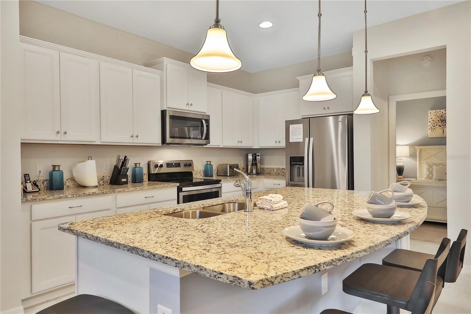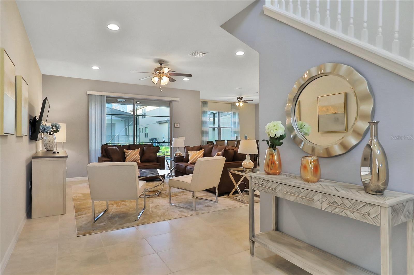 Gorgeous South Facing Private Pool, Fully Furnished and Turn Key Ready. A fantastic choice to be your Vacation Rental Property in the Windsor at Westside, located in Kissimmee Florida! 5 Bedrooms - 4 Bathrooms. Welcoming you inside is an amazing open floor concept that combines your living, dining and kitchen areas into one space. Also downstairs you will have an ensuite for your convenience. Upstairs you will find the loft, master bedroom, one more ensuite and two more bedrooms and one bathroom. Also the laundry room is conveniently located upstairs. Granite countertops, light color cabinets, stainless steel kitchen appliances, themed bedrooms and much more. This home features a heated, private pool, a covered Lanai and pool deck area. The Windsor at Westside is a resort community and features a large Community pool, Lazy river, splash pool, gym, restaurant and much more. This is a great vacation home, very close to other area attractions. Schedule your visit now.