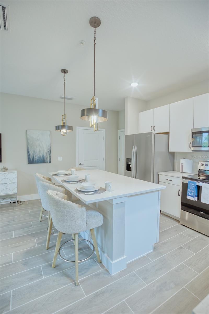 Under Construction. Introducing our brand new townhome, boasting high ceilings, a gourmet-style kitchen, a charming primary suite, and a spacious two-car garage! This modern townhome community offers 3 bedrooms and 2.5 baths. Stepping into the foyer, you're greeted with a tiled floor open concept, featuring a generous kitchen with bar seating, a dining area, and a living room opening to a covered patio. With spacious 9’ ceilings, a large two-car garage, and a convenient downstairs half bathroom, this townhome caters to modern living. Upgraded Samsung stainless steel appliances and quartz countertops adorn the kitchen, simplifying cooking and cleaning. Venturing to the second floor, you'll find all 3 bedrooms and 2 bathrooms. The primary suite stands out with a walkout balcony, double bowl vanity, walk-in closet, linen closet, and a spacious shower. Completing the second floor are two guest bedrooms, an additional bathroom, and a laundry room. Enjoy fantastic curb appeal without the hassle of maintenance, allowing more time for family activities. Situated just minutes from Lake Nona, Orlando International Airport, and the Kissimmee/St. Cloud Turnpike exit, convenience is at your doorstep. Professionally managed HOA fees cover internet, cable, landscaping, amenity maintenance, roof replacement, and building reserve accounts. SoHo at Lakeside boasts NO HIDDEN CDD Fee, ensuring transparency and peace of mind for residents. Additionally, the community is close to the local elementary school, local private schools, and Mark Durbin Community Park at Lakeside, which offers athletic programs, a baseball field, basketball courts, BBQ grills, a community room, a drinking fountain, an in-line hockey rink, open space, picnic tables, a playground, recreation programs, restrooms, a shelter/pavilion, a skate park, and tennis courts. Discover the perfect blend of style, convenience, and recreational opportunities at SoHo at Lakeside! *Photos are of a similar model but not that of the exact house. Pictures, photographs, colors, features, and sizes are for illustration purposes only and will vary from the homes as built. Home and community information including pricing, included features, terms, availability, and amenities are subject to change and prior sale at any time without notice or obligation. Please note that no representations or warranties are made regarding school districts or school assignments; you should conduct your own investigation regarding current and future schools and school boundaries.*