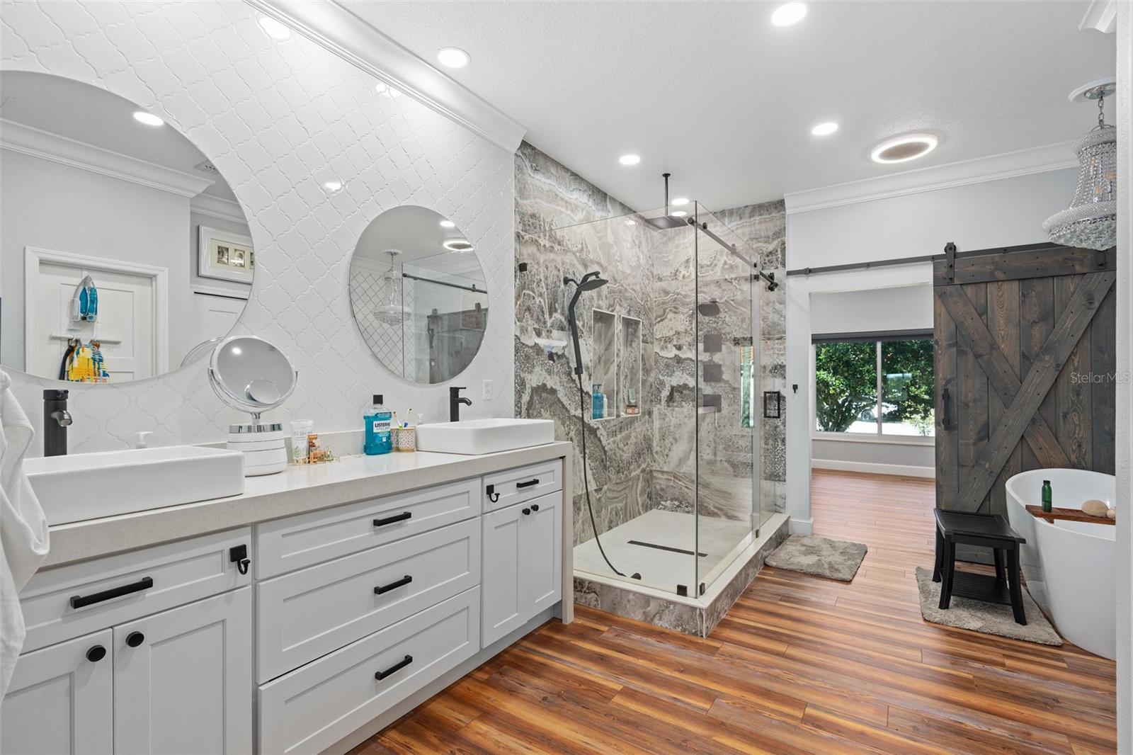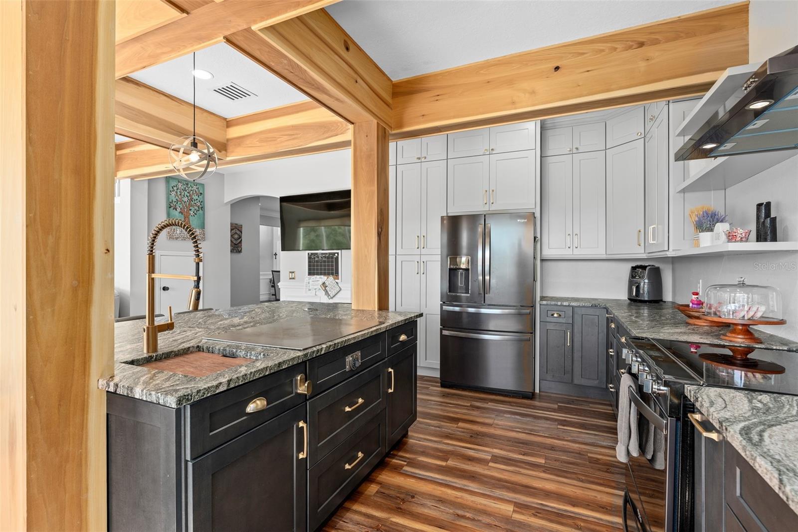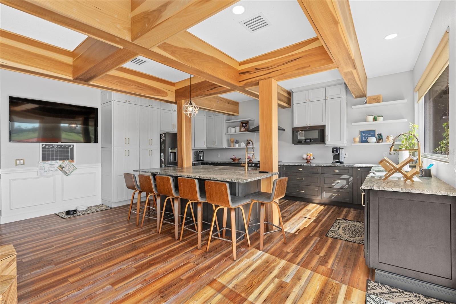 ATTENTION, ATTENTION, ATTENTION!!! - Price on this special upgraded home has been reduced AGAIN...BELOW APPRAISED VALUE, priced to sell. APPRAISAL and INSPECTION ARE COMPLETE - Buyers backed out for personal reasons. Don't miss out on your opportunity to buy this beautifully updated home. The Savonna Model has been recently updated with custom features to exceed your expectations. The 4-bedroom home located in Bellalago's community overlooks a pond to give you the tranquil experience you are looking for from your back yard. Open the new triple wall of windows to let the sun and breeze in. Your custom kitchen overlooking the pond will inspire you to prepare gourmet foods. The new kitchen cabinets with soft closing drawers and crown molding reach to the ceiling, no above the cabinet dust! Leathered granite countertop adds to the luxury appeal of this kitchen. Beams across the ceiling made with poplar wood adds additional value to the home. Add to all these custom features a beautiful, oversized center kitchen island with a prep sink and Teppanyaki grill! Farmers sink, 2 lazy susans, gold finished hardware, touchless faucets, and more.... New windows have been installed throughout the house. Also New front and rear doors. New wood vinyl plank flooring throughout gives you the luxury of beautiful floors without the hassle of keeping them clean. The downstairs guest bath contains a floating counter vanity with storage and exposed piping below backsplash. Laundry room - waterfall countertop with cabinet storage and mudroom storage above counter sink. New AC - Infinity - special for controlling humidity. New fenced in back yard with dog run. Oversized driveway with pavers around all trees. Oversized barbeque slab. Custom walk-in wardrobe closet in Master bedroom, or if you choose additional office/flex space, with barn door. new custom master bath with free-standing tub and water access from wall, barn doors. Double sink countertop with touch mirrors. Built-in closet system in all bedrooms. Blue tooth speakers, nightlights, fans in each bathroom as well. New light fixtures throughout. You won't be disappointed! This home, with all custom upgraded features and resort style living, in the gated and guarded community of Bellalago will exceed your expectations. Amenities are included in HOA fees. Bellalago Academy (grades K-8) is conveniently located at the community. Choose to go fishing in Lake Toho, join one of the community clubs, participate in a fitness or social activity, eat a meal at Bellalago's own Flip Flops Bar and Grill. Go shopping or visit the theme parks. Experience the Florida lifestyle in this one-of-a-kind home, schedule your appointment today. Let's Get Moving!