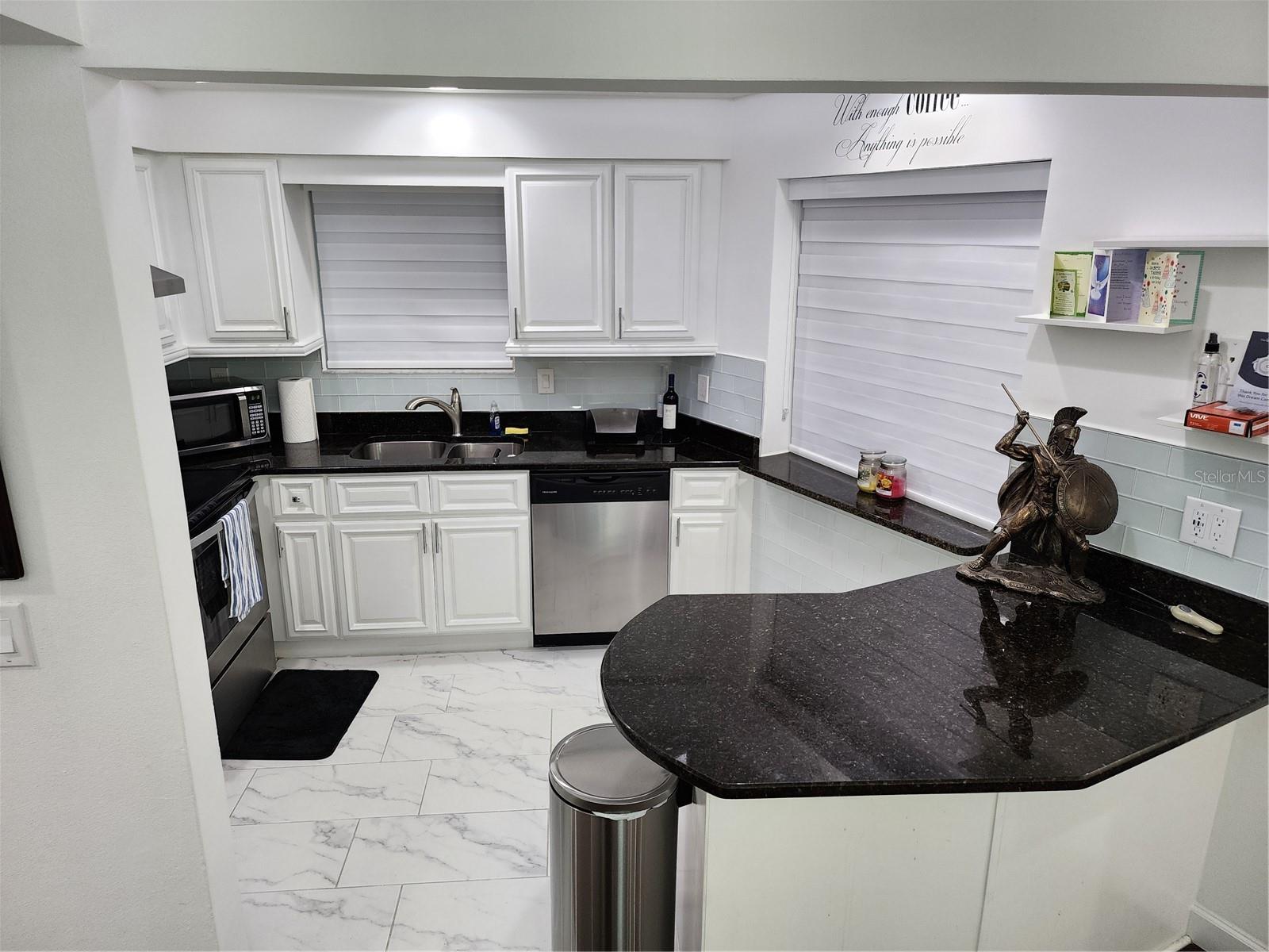 Looking for a luxurious, comfortable, and convenient lifestyle in a perfect community? This is the perfect place for you. This stunning, move-in ready condominium features 2 bedrooms, 2 bathrooms, and 938 square feet of living space. The entire unit has been fully renovated, including flooring, washer, dryer, lighting, bathrooms, windows blinds, slider doors, water heater, and more! As you step inside, you'll be greeted by a bright and airy foyer that opens up to the great room and kitchen. The kitchen boasts custom cabinetry with ample storage, stone countertops on the breakfast bar, and stainless steel appliances. The living room and master bedroom both have access to a large screened lanai, which allows natural light to pour in. To the left of the aisle, you will find the spacious master bedroom, which features a gorgeous ensuite master with a custom closet and an updated master bathroom. On the right side, you'll find the second room with the second bathroom located just outside. The unit also offers a newly designed, screened-in patio with a small yard in the back. Don't miss out on this amazing opportunity to live in luxury, comfort, and convenience in a perfect community.