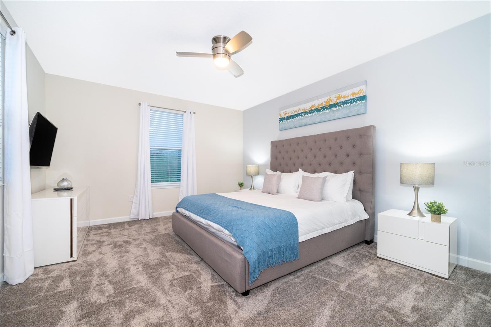 GREAT POOL & SPA VACATION HOME. There are 5 bedrooms, 5 bathrooms, with 2 luxurious owner suites! Additional rooms include a laundry room, loft, and game room. This beautiful home is located in Storey Lake, where Central Florida's major attractions are just minutes away. Walt Disney World is located just 5 miles West, Lake Buena Vista and Disney Springs are just 3 miles North, the Loop is just 2.5 miles East and the Orlando International Airport is just 15 miles away. The kitchen has quartz counters, 42" cabinets, slate appliances, window blinds, and more. Amenities include Tiki Bar/Grille, Canoe/Kayak Rental, Lazy River, Fitness Center, Miniature Golf, Quiet Pool, Splash Pad, Double Slide, Volleyball Court & Sports Court. See why many residents have already made Storey Lake their home.