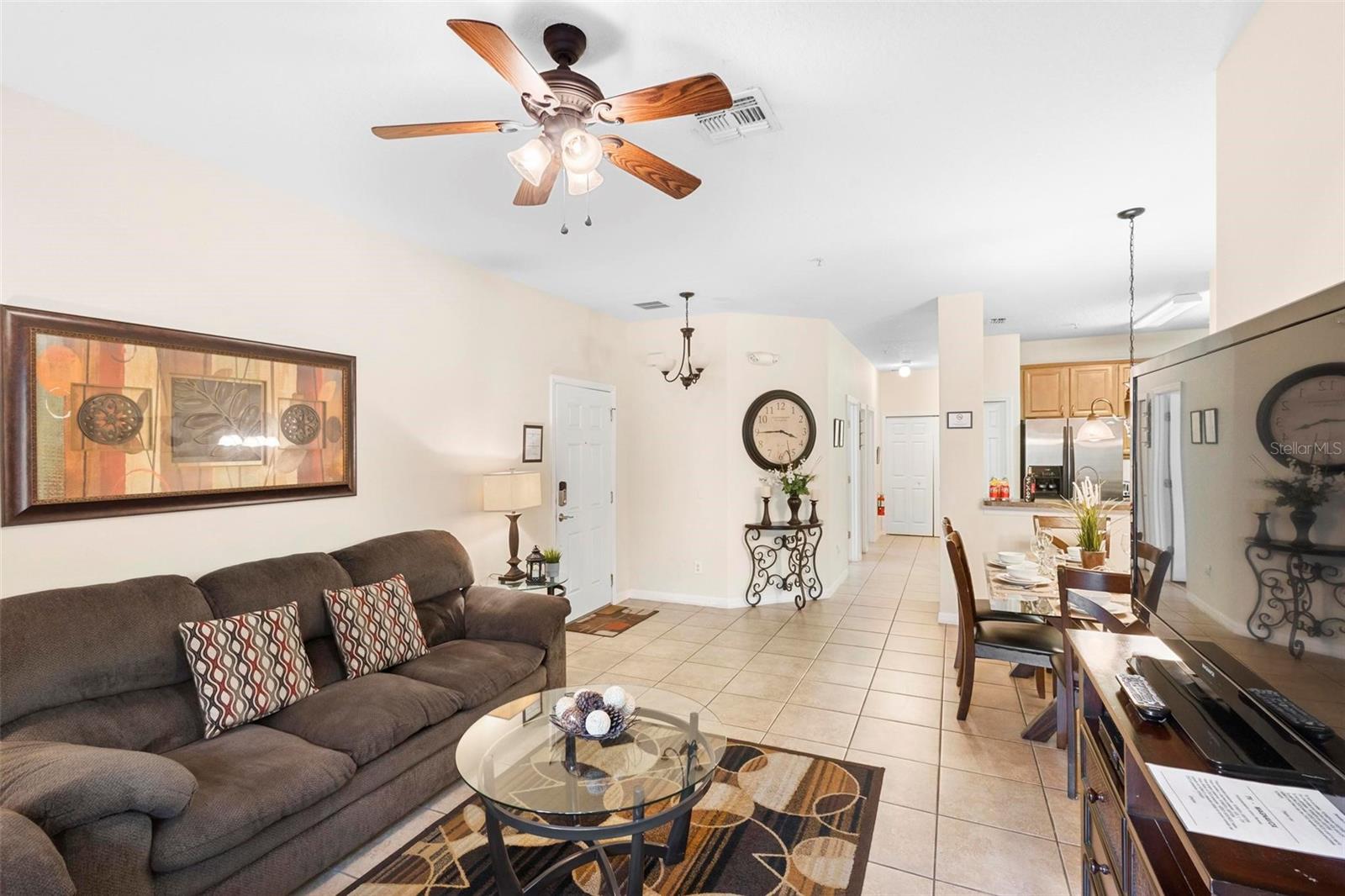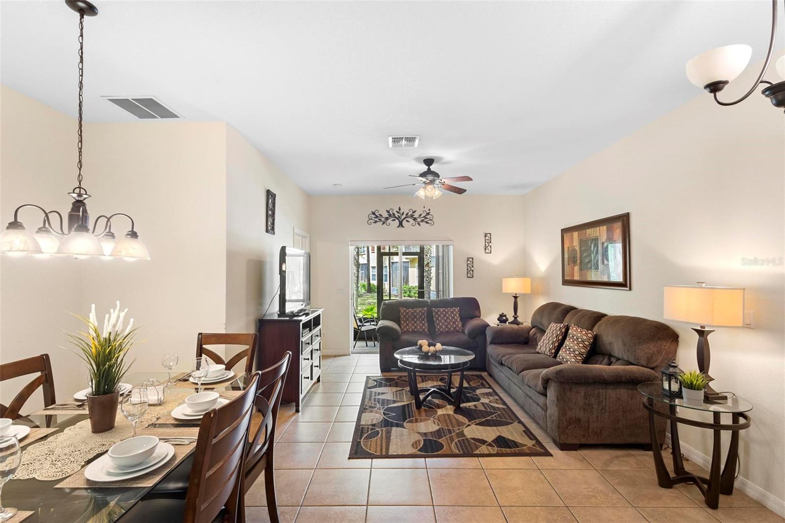 This fully furnished 3 bedrooms and 2 bathrooms first floor condo with a screened-in porch and its own attached car garage is what you’re looking for. As you enter the home to the main living, kitchen and dining areas, the split floorplan sets the master bedroom with master bathroom to one side while the other 2 guest bedrooms, guest bathroom and laundry set off to the other side. Located in the secure gated community of Oakwater, in the prime most desired vacation area, just about 2 miles to attractions, walking distance to Walmart and just minutes from all major highways. The Oakwater community offers a beautiful pool, spa, splash pad and playground, tennis and basketball courts and a clubhouse with a fitness center and game room. The perfect home for short-term guests, full time residents or long-term tenants. Take advantage of this opportunity to own an amazing property, schedule a showing today!