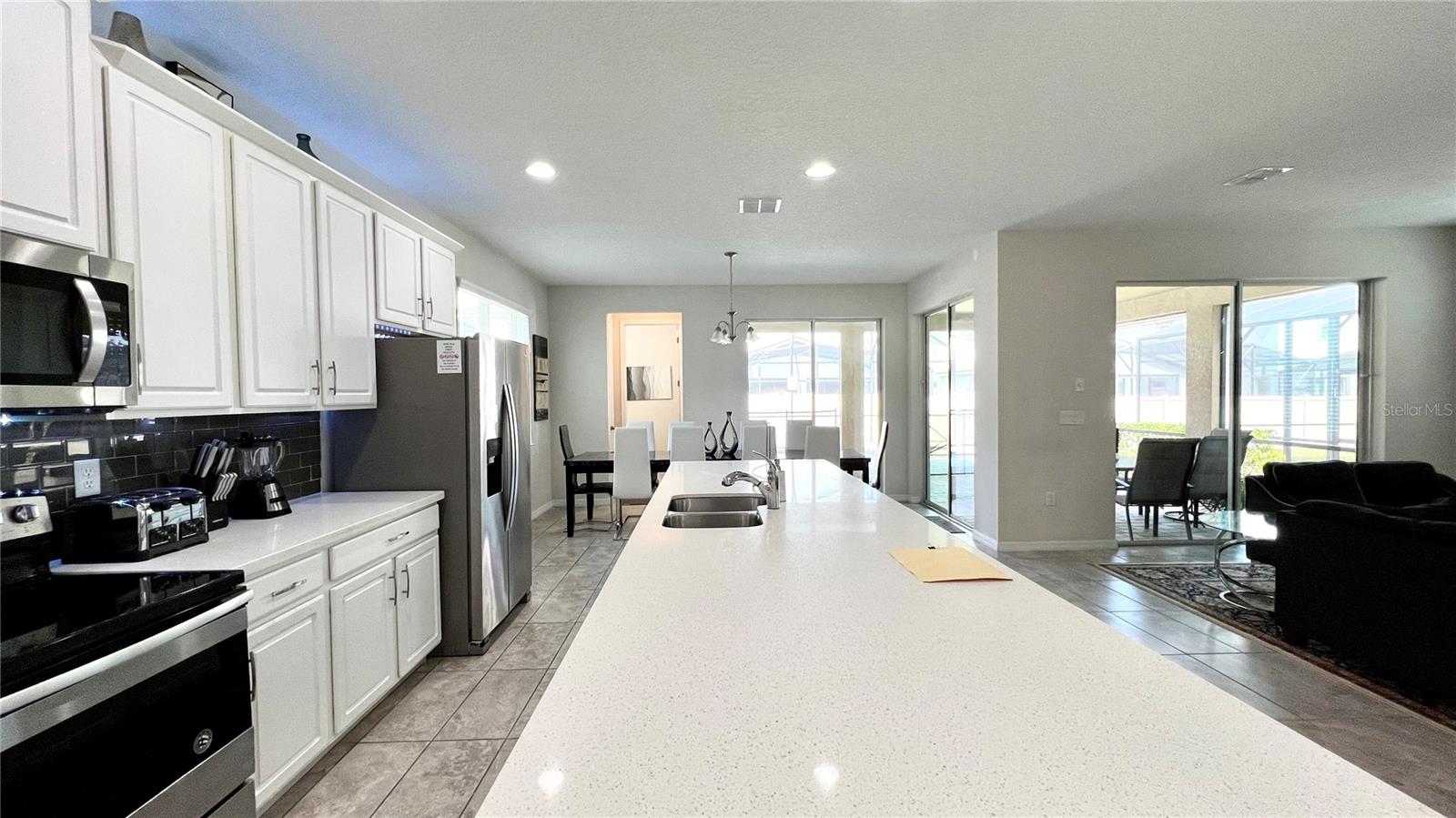 This amazing vacation home features 6 bedrooms and 4.5 bathrooms, with a private, spacious swimming pool, in the gated community of Solara Resort. The property is currently fully booked for a long-term rental, starting from March 18, the monthly rent is $3200. The home is fully furnished and professionally decorated, offering an open-concept floor plan with a spacious kitchen and family room overlooking a screened pool area. stainless steel appliances, granite counter tops and 42”wood cabinets. The main floor includes a master bedroom, with spacious walk-in closet, walk in bathroom, shower, and tub. The second floor offers four additional bedrooms and a loft. Residents and guests can enjoy the community Clubhouse, a water complex, water slides, a flowrider surf simulator free of charge, pool bar, restaurant, a coffee bar, fitness center, business center, outdoor basketball court and a beach volleyball court, full size soccer field, a walking distance from the fantastic Clubhouse. The HOA fee covers basic cable and internet, landscaping maintenance, valet trash service, and common area maintenance. It is located just off US-192, only a few minutes from Walt Disney World theme parks, shopping centers, and dining. This home is beautiful and ready for you and your family. Schedule your showing today!
