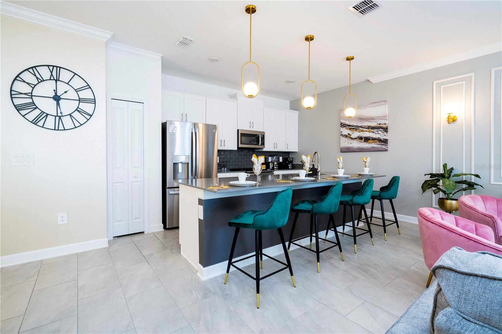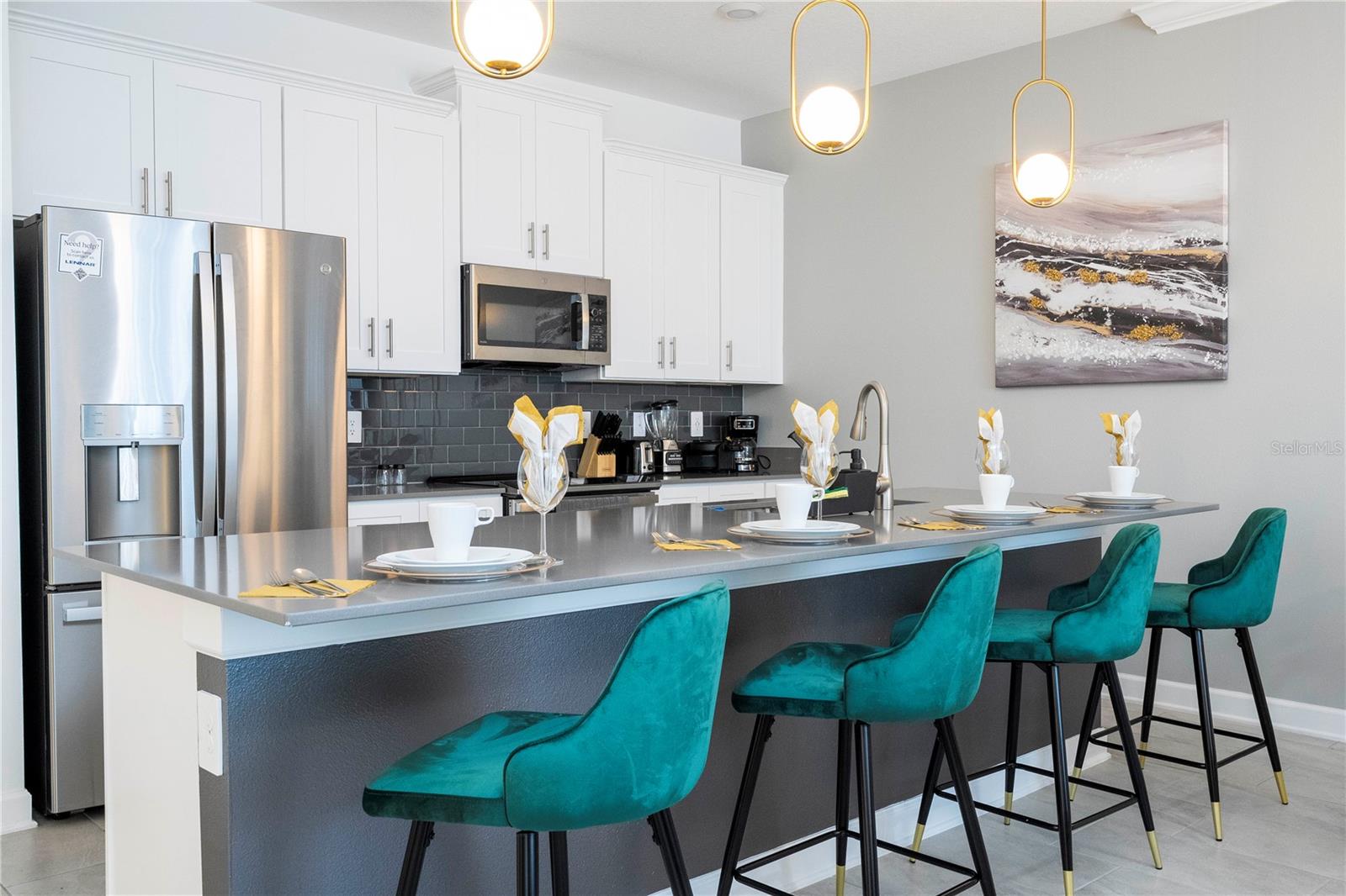 Beautiful vacation home in Storey Lake Resort. This amazing 4 bedroom, 3 bathroom townhouse, professionally decorated with luxury finishes and furnishings. 1 Master Suites and 2 bedrooms on the top floor, 1 bedroom on the first floor. The open floor plan has a generous kitchen, dining room and family room. The kitchen is spectacular with its modern finishes, central prep island and all top of the range appliances including washer and dryer. Outdoor area with private pool and just steps from Clubhouse and Water Park. The community is located on Osceola Parkway and has convenient access to major Florida highways such as SR 535, I-4, 417, US 192, I-Drive and Poinciana Blvd. The community offers an excellent amenities package including a state of the art clubhouse for the entire family to enjoy. Guests will find multiple sports courts, playground, as well as a resort-style pool with a water park and slides, a man-made beach, a restaurant and bar, a lazy river, nature trails and conservation areas, and activities such as miniature golf and kayaking.