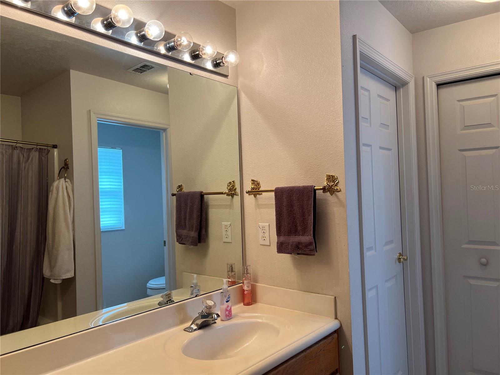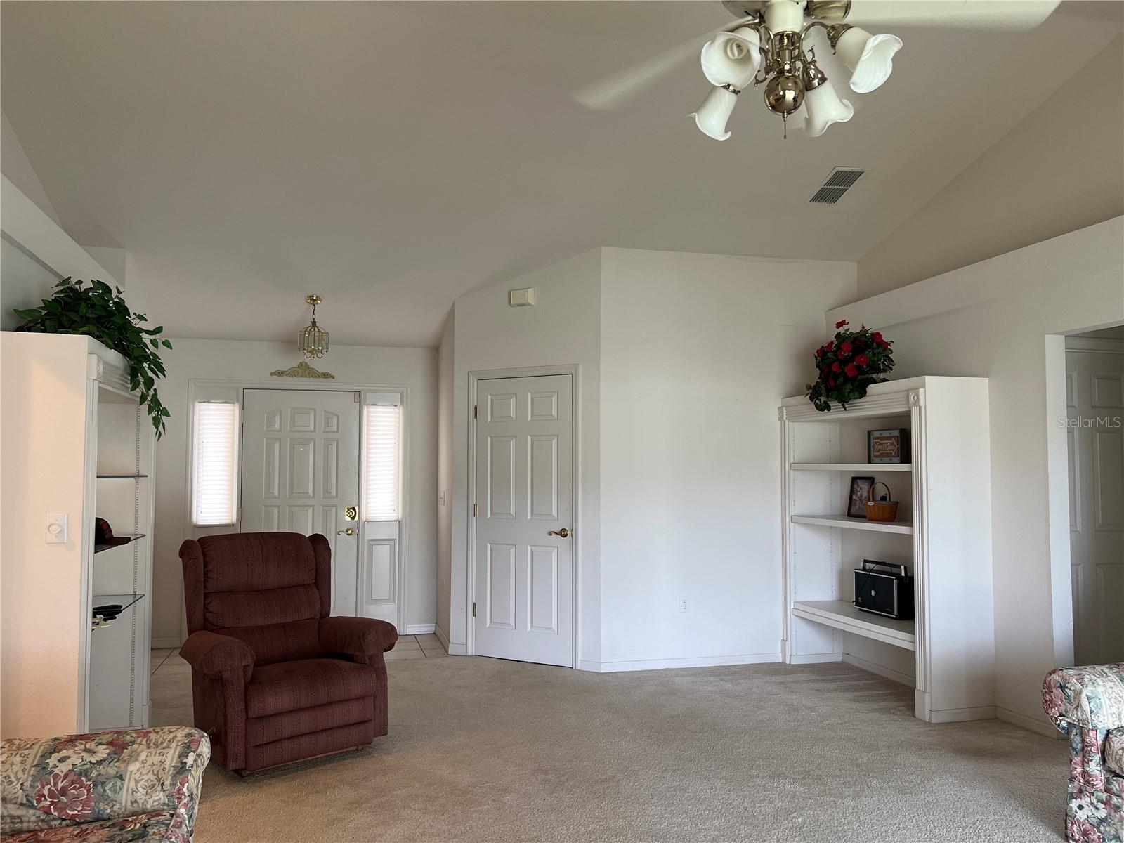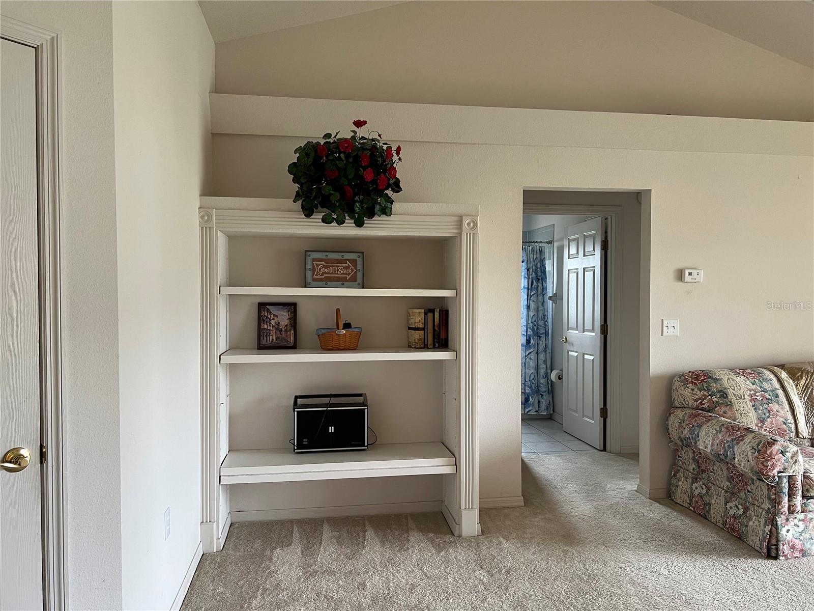 You will love this lightly-lived-in custom-designed home in sought-after The Woods subdivision. The living room has built-in display/bookcases with adjustable shelving and lights, an electric fireplace, high ceilings and plant shelves, and a superwide sliding glass door out to the concrete patio. The kitchen has plenty of honey-oak cabinets, a spacious closet pantry, and space for a breakfast table. All kitchen appliances will stay. There is also an adjacent dining room, which has automatic blinds in the window. Exit from the kitchen to the screened back porch, a perfect spot to enjoy that morning cup of coffee just listening to the birds. The primary bedroom has wide windows that really let in the natural light. There is an attached sitting room here, which can serve as a nursery, home office space, or whatever you need. The en suite bath has a step-in shower, lots of vanity-top space, a walk-in closet plus another closet. The two secondary bedrooms, each with a double-door closet, share the second full bath. There is a laundry room, and washer and dryer will stay. The garage has plenty of storage shelves, a brand-new electric water heater, and new HVAC system in March 2024. There are easy-access hurricane shutters for all windows. Low HOA fee, on city water and septic. Located between Kissimmee and St. Cloud on nearly one-quarter acre in an area with no thru traffic. There is easy access to FL Turnpike and all the attractions that Central Florida has to offer. Relax in a lovely home with serene surroundings!