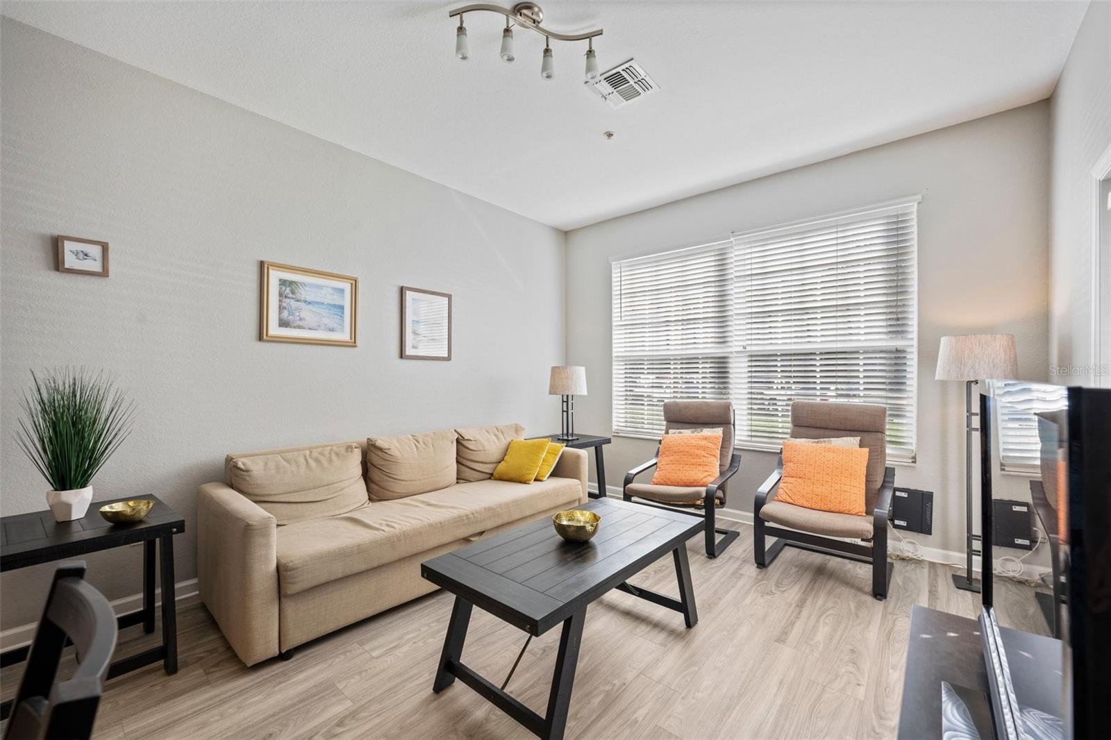 Back on the Market - After a long pending period with several extensions buyer decided to cancel the contract due to personal reasons. This 3-bedroom, 2-bathroom fully furnished condo in Wyndham/Windsor Palms offers a resort-style living experience with stunning views of the surrounding trees. The condo boasts an open-concept layout, generously sized bedrooms, and a versatile space perfect for hosting guests. The development is gated and guarded, with amenities including a heated Olympic-size community pool, fitness room, game room, and theater room. Plus, it's just minutes away from popular attractions like Disney World, Universal Studios, and SeaWorld, making it an excellent base for your Orlando adventures and a great investment opportunity for short-term rentals.