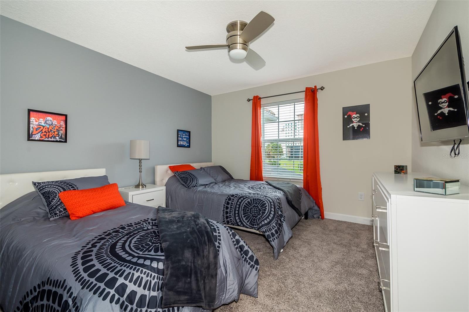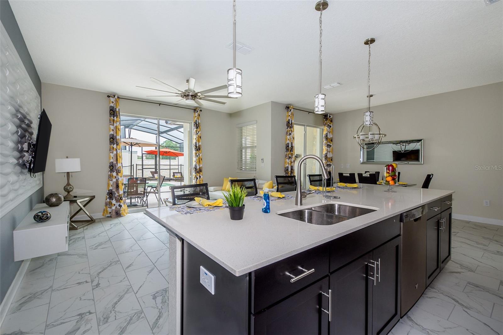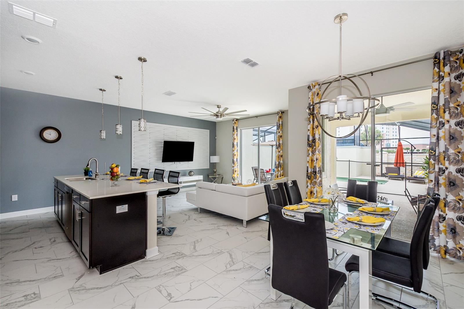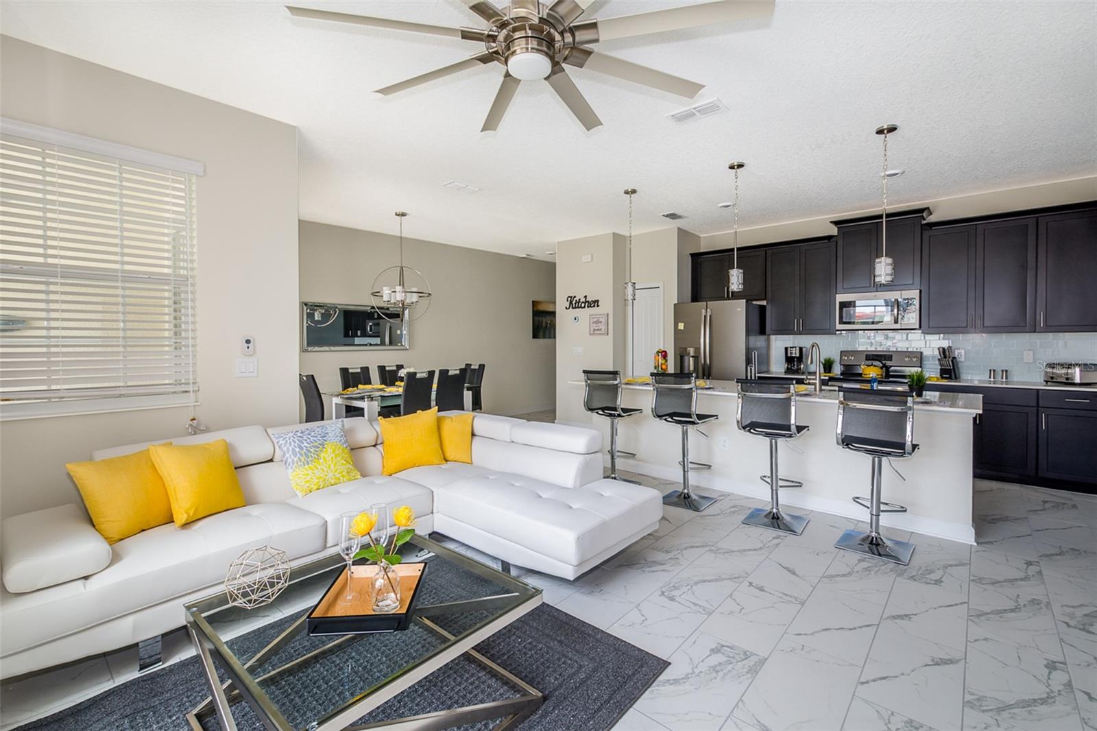 GREAT POOL TOWNHOUSE WITH EXTENDED PATIO. There are 4 bedrooms, 3 bathrooms, with 1 bedroom downstairs.This beautiful home is located in Storey Lake, where Central Florida's major attractions are just minutes away. Walt Disney World is located just 5 miles West, Lake Buena Vista and Disney Springs are just 3 miles North, the Loop is just 2.5 miles East and the Orlando International Airport is just 15 miles away. The kitchen has quartz counters, 42" cabinets, slate appliances, window blinds, and more. Amenities include Tiki Bar/Grille, Canoe/Kayak Rental, Lazy River, Fitness Center, Miniature Golf, Quiet Pool, Splash Pad, Double Slide, Volleyball Court & Sports Court.