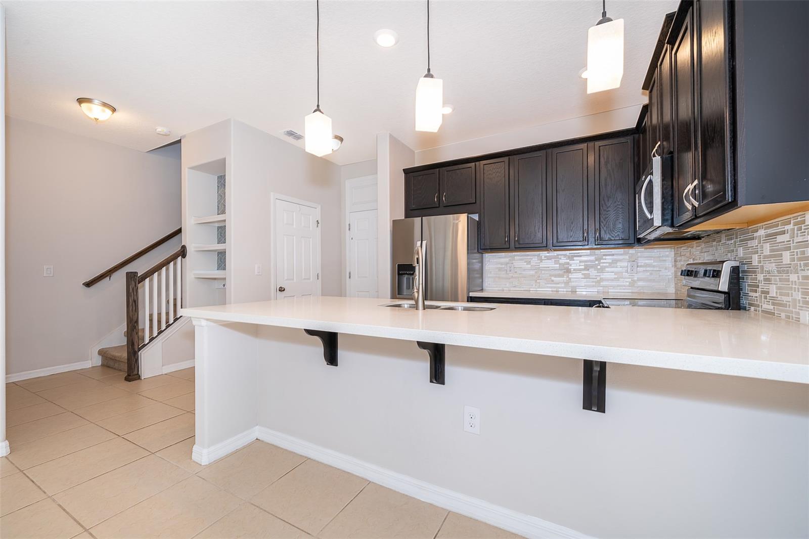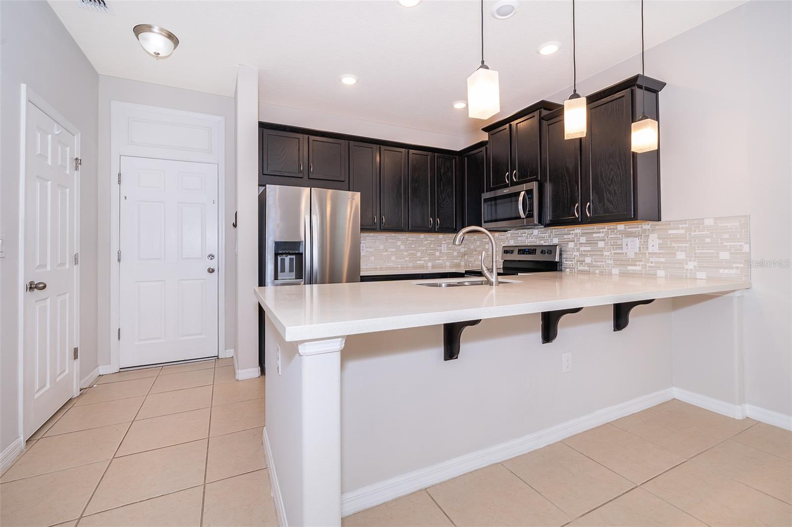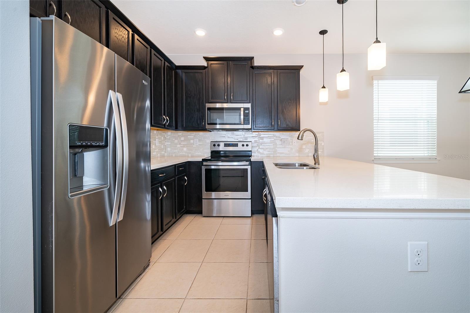 Welcome to Tapestry!! This beautiful Townhome (Camilla Model). Corner unit with 3 bedrooms, 2.5 baths, 2 car garage and 1602 Sq. Ft. This townhouse has a nice open concept w/many upgrades on the first floor with beautiful Ceramic tile flooring and the second-floor bedrooms have carpet, the kitchen fully equipped with stainless steel appliances, quartz countertops and 42' cabinets. All bedrooms are on the second floor, the master bedroom offers a walking closet and dual sinks in the master bath with seamless glass. Enjoy a nice balcony on the second floor for relaxing after a long day. The Tapestry community it's a gated community with 24-hour security guard and offers an amazing amenity, resort style pool with splash, playground area, BBQ Pavilions, beautiful clubhouse with a well-equipped catering kitchen, and a large fitness center. The location is the key just minutes from The Loop, Publix, restaurants and shopping centers, attractions & theme parks Disney, Universal and SeaWorld, Orlando International Airport, SR 417, Osceola Pkwy and John Young Parkway. MAINTENANCE-FREE LIVING included: trash pickup, pest control, landscaping, and exterior maintenance. Don't miss your chance to see this one before it's gone.