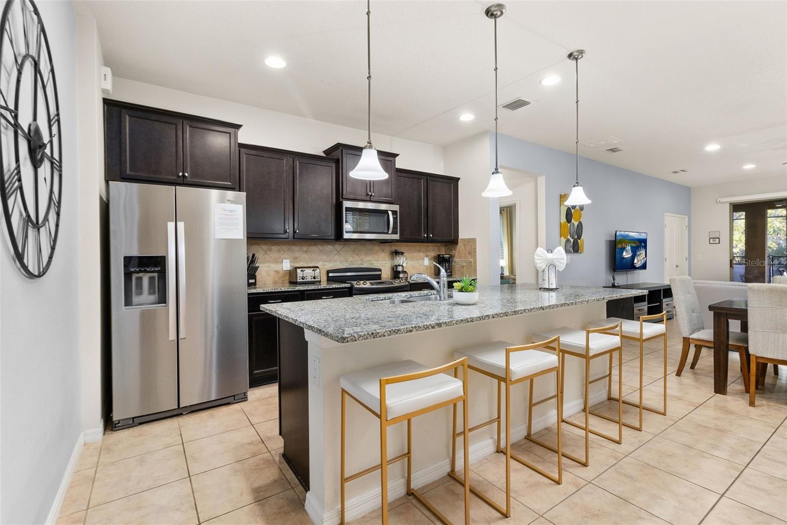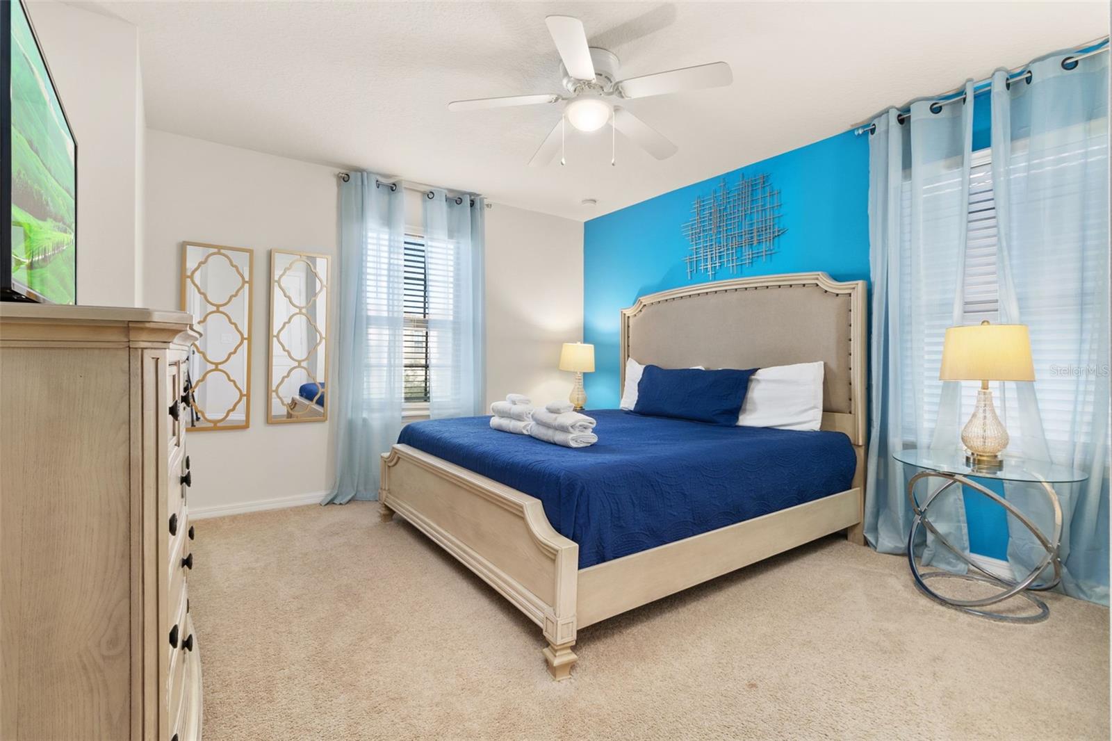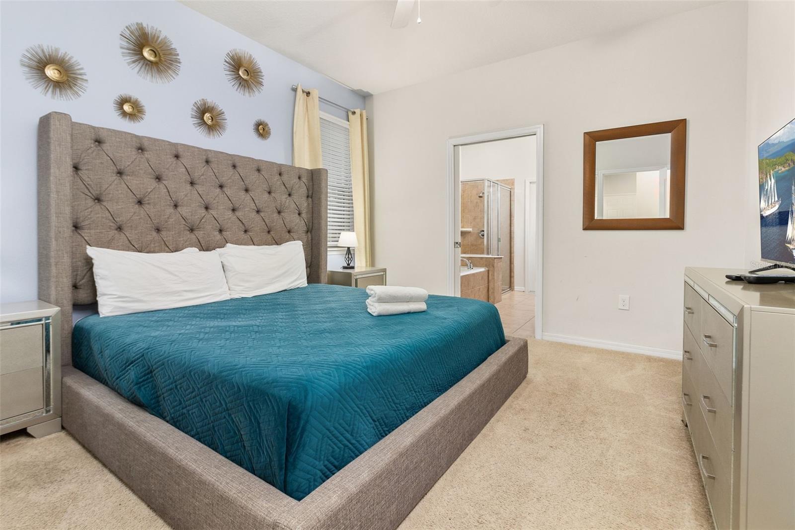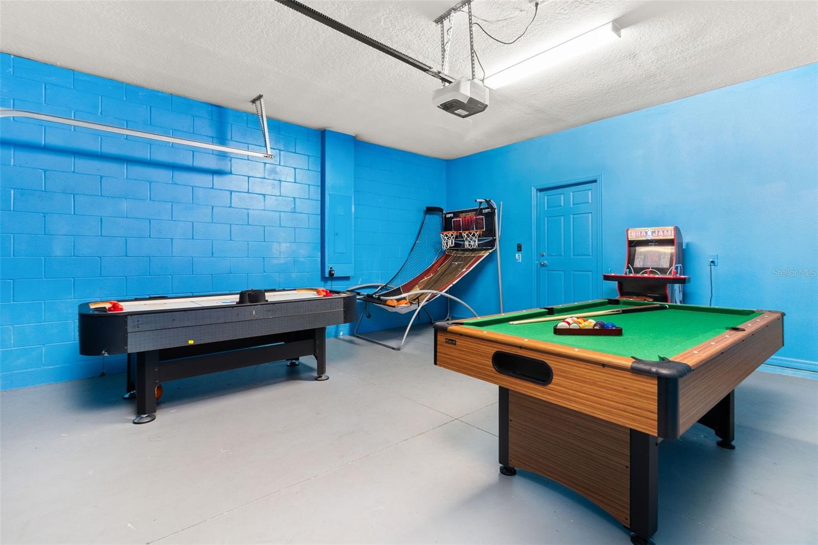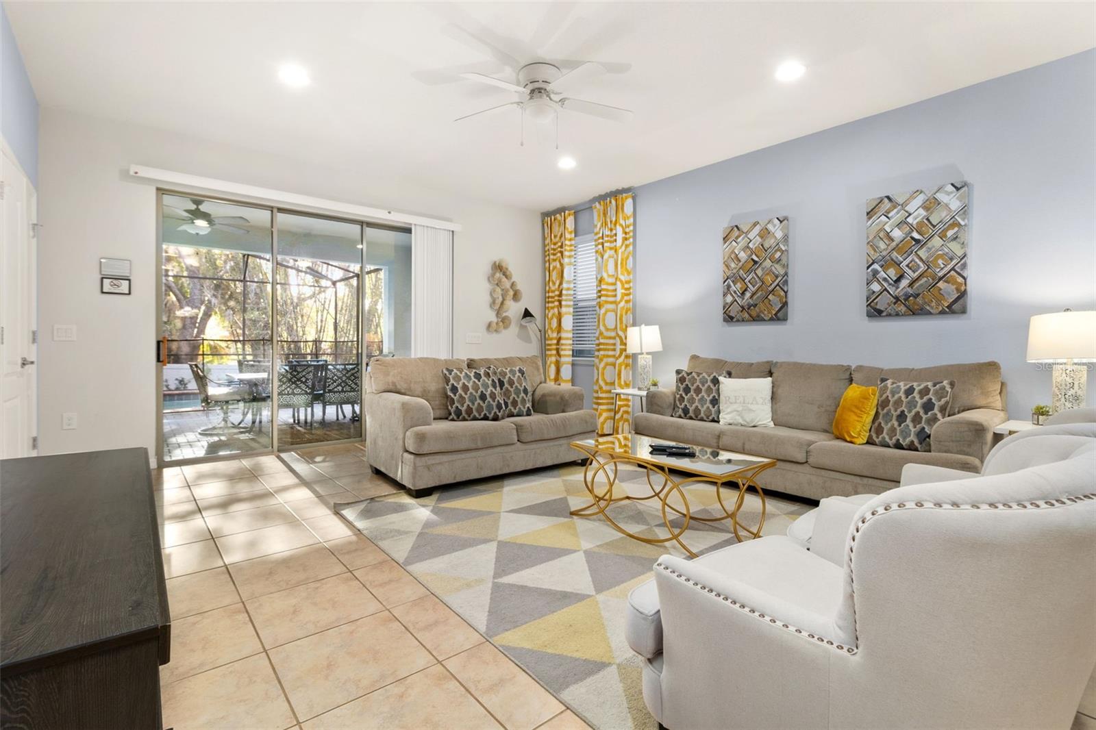Priced to sell! This luxurious FULLY FURNISHED and DECORATED 7 bedroom, 5.5 bathroom vacation home in the desirable Resort of WINDSOR AT WESTSIDE offers a Florida luxury lifestyle. Boasting a PRIVATE POOL and HOT TUB, and an expansive layout that includes 7 bedrooms— with master suites on both floors— and 5.5 bathrooms, this home can sleep up to 16 guests, ensuring a steady booking rate throughout the year. This professionally designed home is in great condition, with CERAMIC TILE flooring on the first floor for easier cleaning and maintenance, a FULLY EQUIPPED kitchen with STAINLESS STEEL APPLIANCES, granite countertops, tiled backsplash, and expresso 42” cabinetry. The main level includes a MASTER BEDROOM with access to the pool area, while the open-concept living area seamlessly connects the family room, dining area, and kitchen. The master bedroom on the first floor features an ensuite bathroom with a tub and walk-in shower. The property's 2-car garage has been converted into a GAME ROOM and is equipped with various games, transforming it into an ideal recreational space. Outside, soak up the sunny Florida weather on your covered patio with a private pool and hot tub, fully furnished with a FANTASTIC LOFT. On the upper level, there are 6 BEAUTIFULLY DECORATED additional bedrooms and four more bathrooms. There is also a LOFT SPACE perfect for gathering on movie nights. The Windsor at Westside Resort amenities include a clubhouse, fitness center, resort-style pool with a lazy river, bar, game room, and more. This property is also close to major attractions, shopping, and dining. Don't miss the chance to own a piece of luxury living close to all the area has to offer! **3D VIDEO TOUR AVAILABLE.