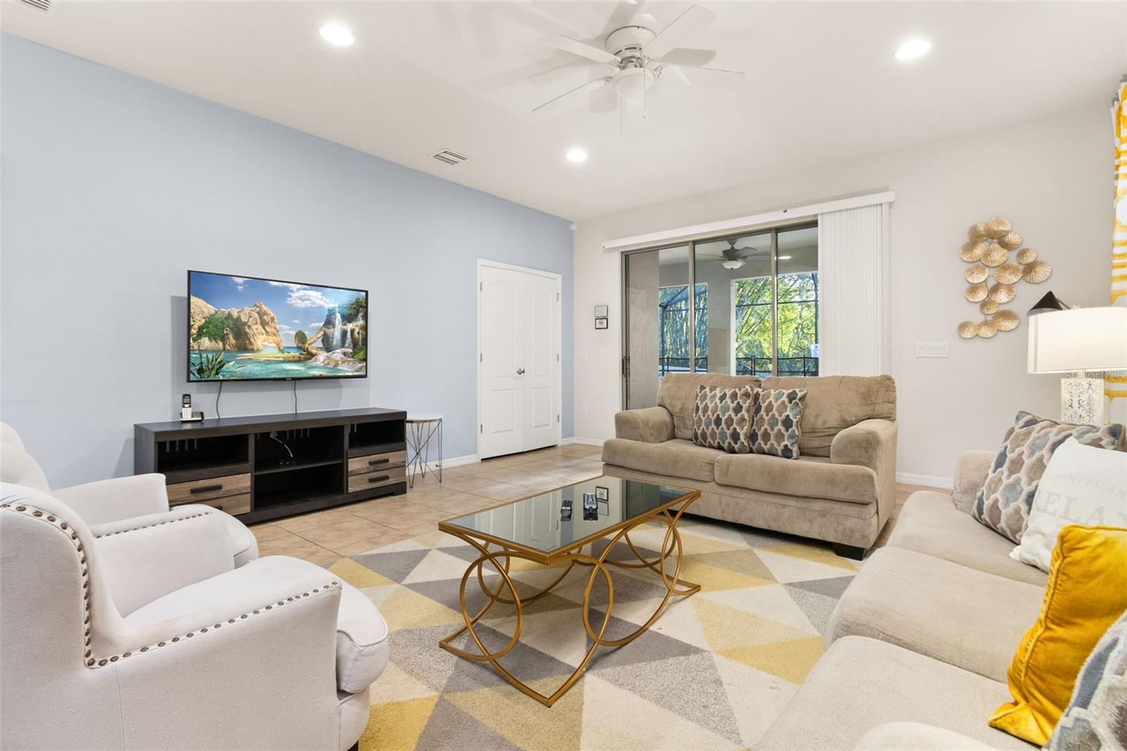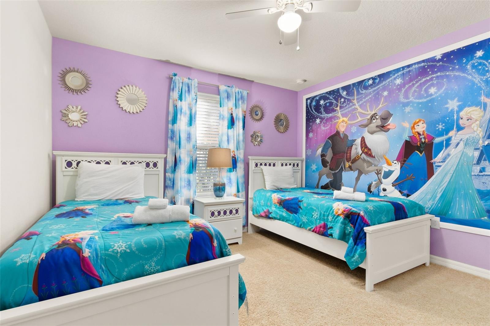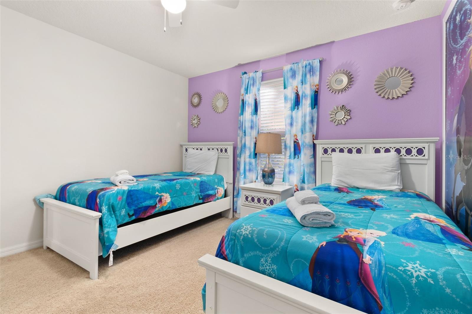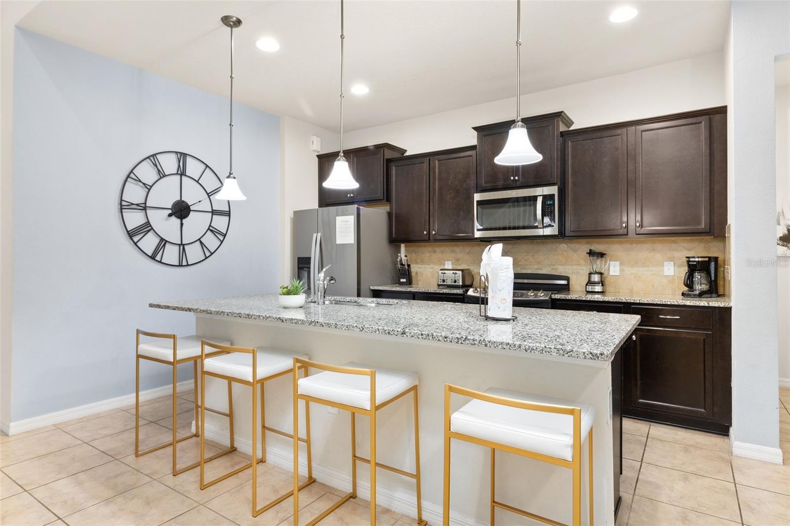 Priced to sell! This luxurious FULLY FURNISHED and DECORATED 7 bedroom, 5.5 bathroom vacation home in the desirable Resort of WINDSOR AT WESTSIDE offers a Florida luxury lifestyle. Boasting a PRIVATE POOL and HOT TUB, and an expansive layout that includes 7 bedrooms— with master suites on both floors— and 5.5 bathrooms, this home can sleep up to 16 guests, ensuring a steady booking rate throughout the year. This professionally designed home is in great condition, with CERAMIC TILE flooring on the first floor for easier cleaning and maintenance, a FULLY EQUIPPED kitchen with STAINLESS STEEL APPLIANCES, granite countertops, tiled backsplash, and expresso 42” cabinetry. The main level includes a MASTER BEDROOM with access to the pool area, while the open-concept living area seamlessly connects the family room, dining area, and kitchen. The master bedroom on the first floor features an ensuite bathroom with a tub and walk-in shower. The property's 2-car garage has been converted into a GAME ROOM and is equipped with various games, transforming it into an ideal recreational space. Outside, soak up the sunny Florida weather on your covered patio with a private pool and hot tub, fully furnished with a FANTASTIC LOFT. On the upper level, there are 6 BEAUTIFULLY DECORATED additional bedrooms and four more bathrooms. There is also a LOFT SPACE perfect for gathering on movie nights. The Windsor at Westside Resort amenities include a clubhouse, fitness center, resort-style pool with a lazy river, bar, game room, and more. This property is also close to major attractions, shopping, and dining. Don't miss the chance to own a piece of luxury living close to all the area has to offer! **3D VIDEO TOUR AVAILABLE.