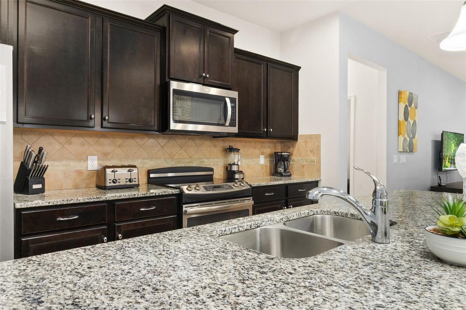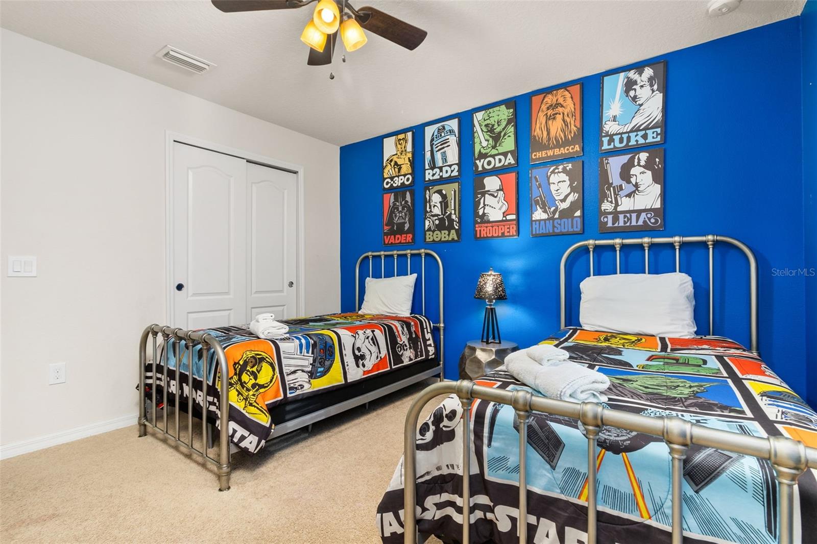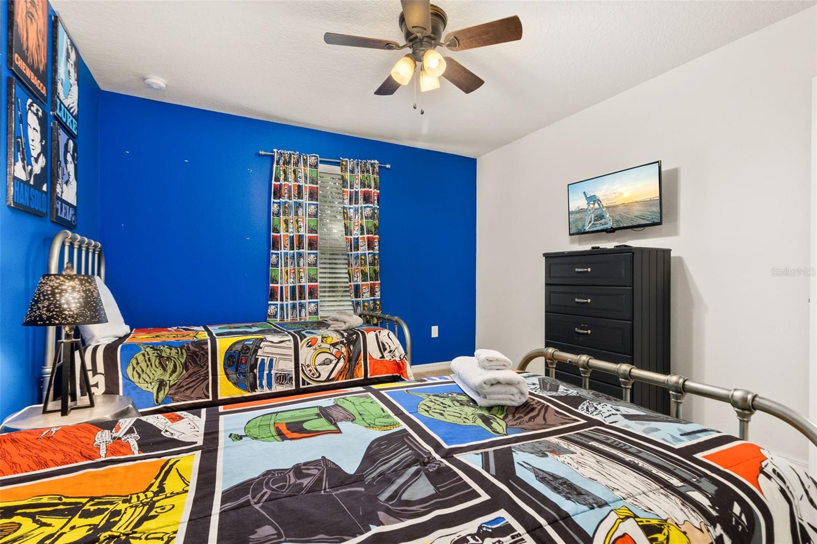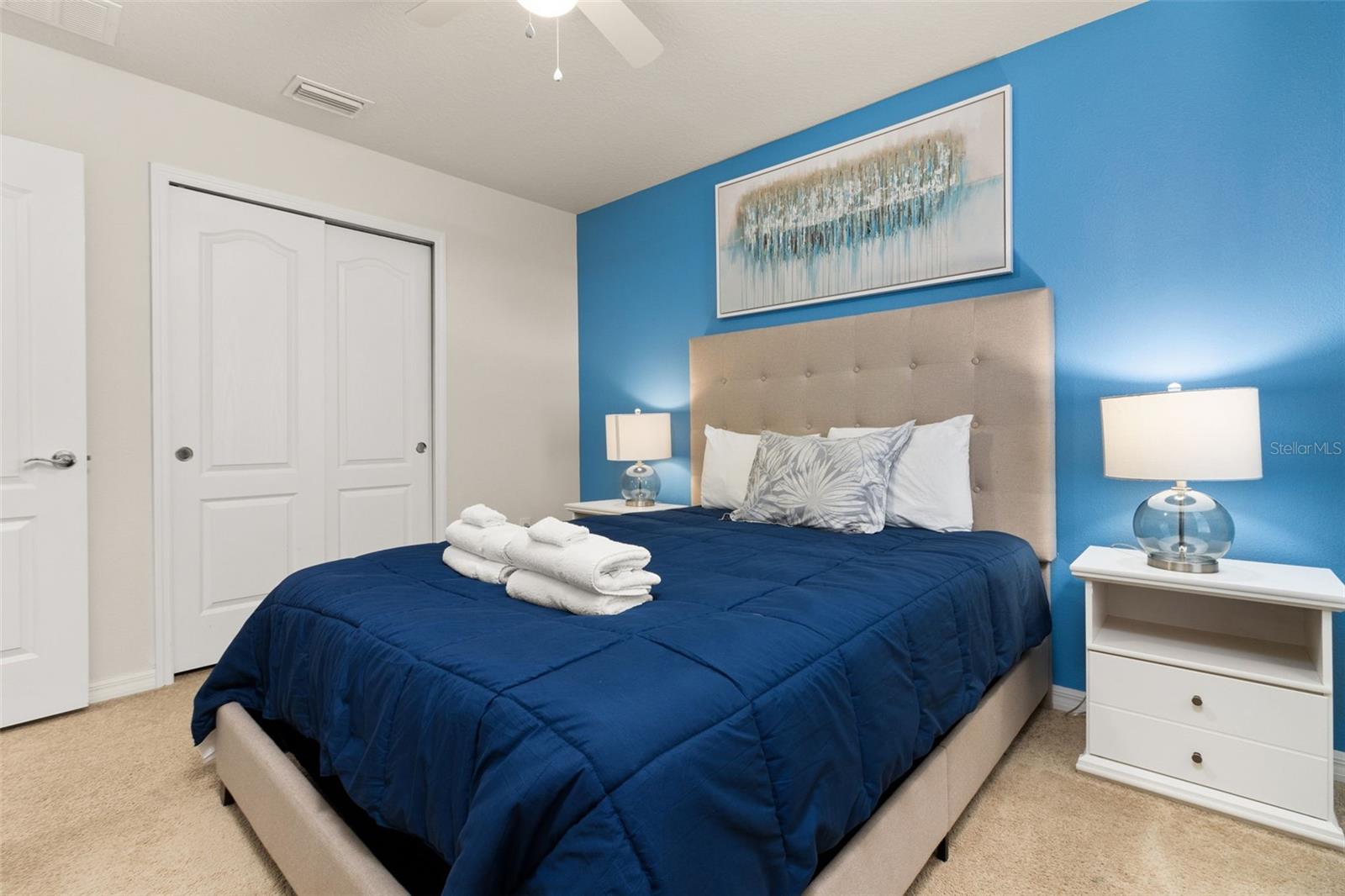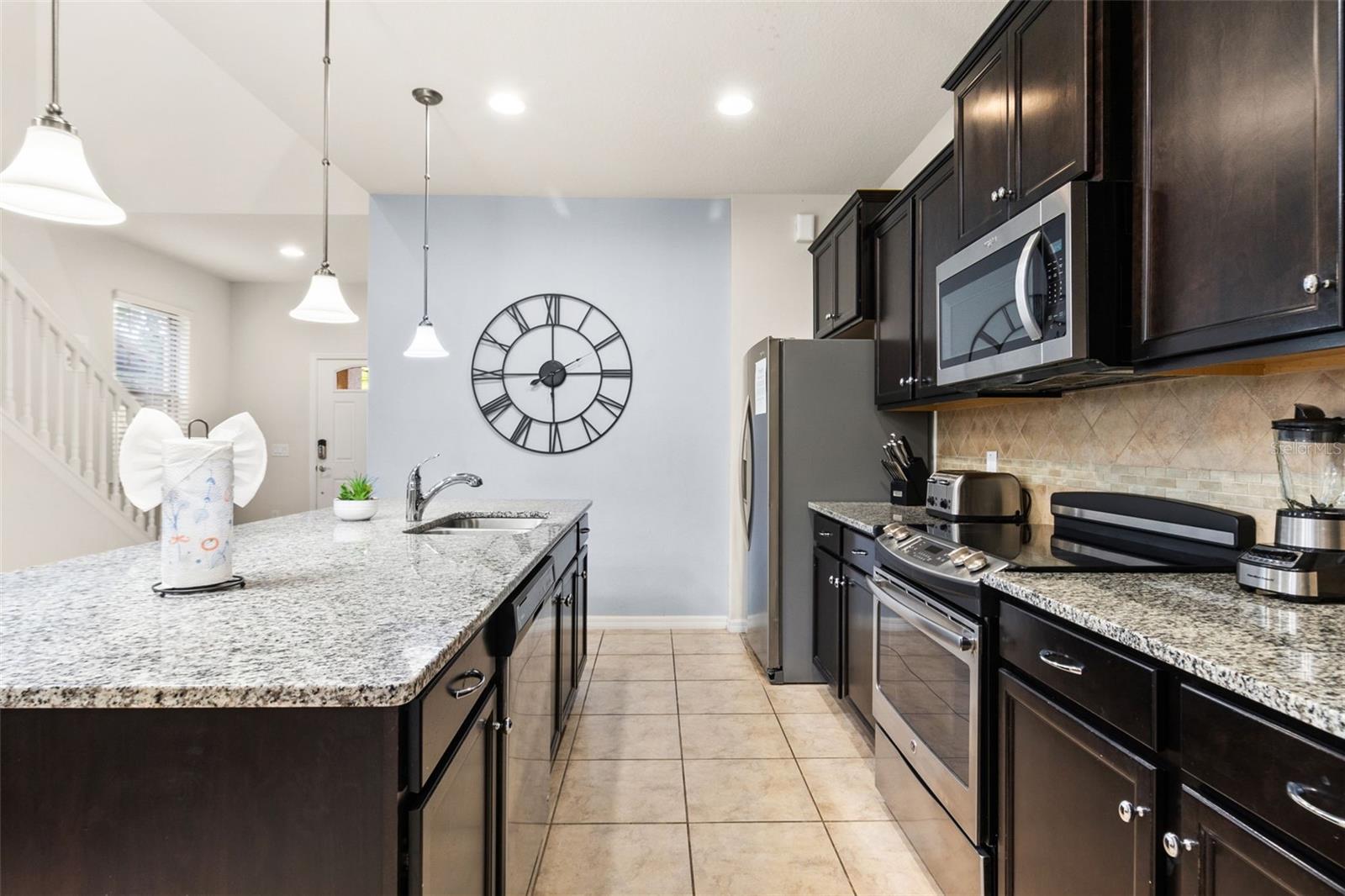 Priced to sell! This luxurious FULLY FURNISHED and DECORATED 7 bedroom, 5.5 bathroom vacation home in the desirable Resort of WINDSOR AT WESTSIDE offers a Florida luxury lifestyle. Boasting a PRIVATE POOL and HOT TUB, and an expansive layout that includes 7 bedrooms— with master suites on both floors— and 5.5 bathrooms, this home can sleep up to 16 guests, ensuring a steady booking rate throughout the year. This professionally designed home is in great condition, with CERAMIC TILE flooring on the first floor for easier cleaning and maintenance, a FULLY EQUIPPED kitchen with STAINLESS STEEL APPLIANCES, granite countertops, tiled backsplash, and expresso 42” cabinetry. The main level includes a MASTER BEDROOM with access to the pool area, while the open-concept living area seamlessly connects the family room, dining area, and kitchen. The master bedroom on the first floor features an ensuite bathroom with a tub and walk-in shower. The property's 2-car garage has been converted into a GAME ROOM and is equipped with various games, transforming it into an ideal recreational space. Outside, soak up the sunny Florida weather on your covered patio with a private pool and hot tub, fully furnished with a FANTASTIC LOFT. On the upper level, there are 6 BEAUTIFULLY DECORATED additional bedrooms and four more bathrooms. There is also a LOFT SPACE perfect for gathering on movie nights. The Windsor at Westside Resort amenities include a clubhouse, fitness center, resort-style pool with a lazy river, bar, game room, and more. This property is also close to major attractions, shopping, and dining. Don't miss the chance to own a piece of luxury living close to all the area has to offer! **3D VIDEO TOUR AVAILABLE.