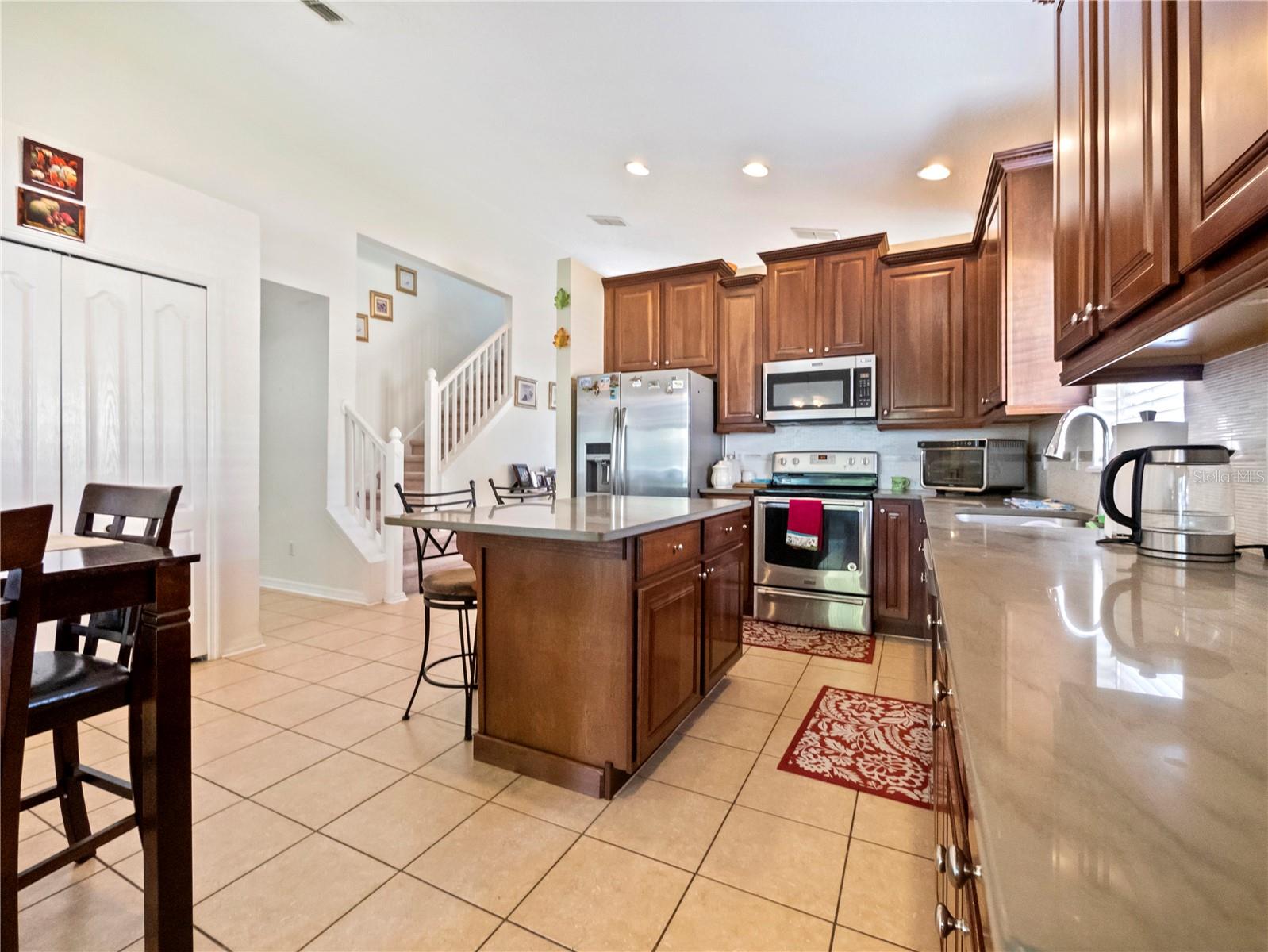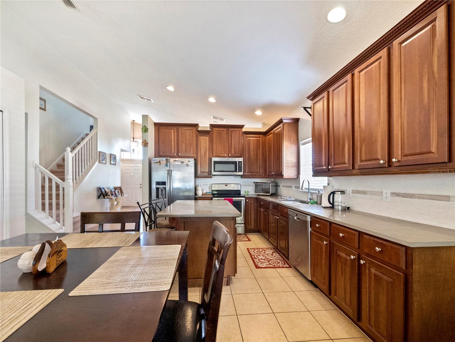PRICE REDUCED. Very spacious and well-maintained 3266 sq. ft. 4 bedroom, 2 1/2 bath, 2 story home with many upgrades. Front faces a community park and the large rear fenced backyard with covered patio faces another park area. Covered entryway, 2 car garage, laundry room, vaulted ceilings, ceramic tile on first floor and carpet upstairs. Formal living and dining room by entrance, large family room at rear open to spacious kitchen with stainless appliances, pantry, center island/breakfast bar and a dining area. Sizeable loft area upstairs useable as second family room. Spacious master suite has room for seating area, a large walk-in closet and bathroom with dual vanities, garden tub and walk-in shower. NEW water heater. Home includes a recently installed TESLA POWERWALL SOLAR PANEL AND WHOLE HOUSE BACKUP BATTERY POWER SYSTEM. ROOF REPLACED in 2016. Low HOA. Located near schools, shopping and Downtown Kissimmee area. A MUST SEE!