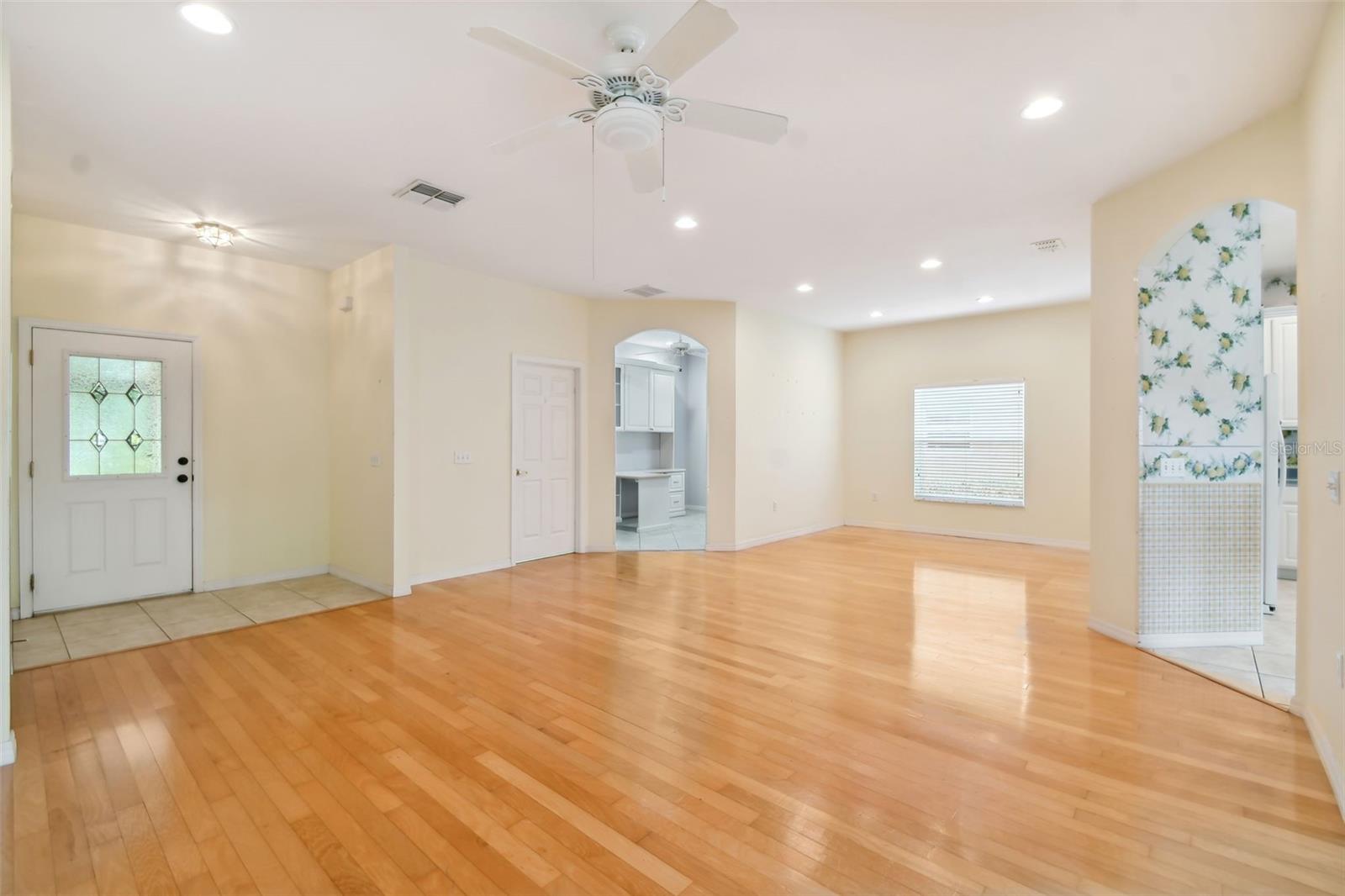 NEW LOWER PRICE! SELLER MOTIVATED! Welcome Home to 196 Ventana Drive in the Upscale, Resort-Style 55+ Community of Solivita! As soon as you drive up to your new home, there is a sense of peace and tranquility with your view from your screened front porch of one of the many treed neighborhood parks. The open floor plan of the Sonata model home, with sliding glass doors leading from the Great Room, Kitchen, and Primary Bedroom to the trussed patio and extended screened lanai, allow for the southern exposure sun to make the rooms bright and cheery. You will want to keep the doors open during the cooler months of Spring, Fall, and Winter to remind you why you chose to retire to this slice of Heaven. The HVAC was replaced in 2019, so that will take care of the summer months. The expansive lanai adds additional living and entertaining space for family and friends and the conservation view is spectacular! With engineered wood and tile flooring, maintenance is a breeze. There is built-in cabinetry in the Great Room giving you a place to display your favorite treasures along with a built-in desk and cabinetry in the Den/Office giving you flexibility on how to use the space. The generously-sized Primary Bedroom with its en-suite Bathroom and walk-in closet is the perfect nighttime retreat. The Second Bedroom is ideal for guests who may not want to leave after they see all that Solivita has to offer! Check out the Floor Plan so you can imagine how you will make this home your own. Beyond your front door, the Solivita community awaits with an impressive array of amenities. Dive into a life full of fun and relaxation with over 200 clubs, sports, and activities. Enjoy the community’s clubhouse, softball field, 14 swimming pools, an indoor walking track, and much more. Every day offers something new to explore and enjoy. Additionally, enjoy the convenience of having Poinciana Lakes Plaza, a major new shopping center, opening directly across from the Solivita Main Gate this year. This vibrant plaza will feature a diverse selection of stores and services, including a grocery store, TJ Maxx, Ross, Burlington, Rack Room Shoes, 5 Below, Ulta, Outback, First Watch, Petco, Five Guys, Popeyes, Urgent Care, a dentist, TD Bank, Hair Cuttery, Walgreens, and even more to come.