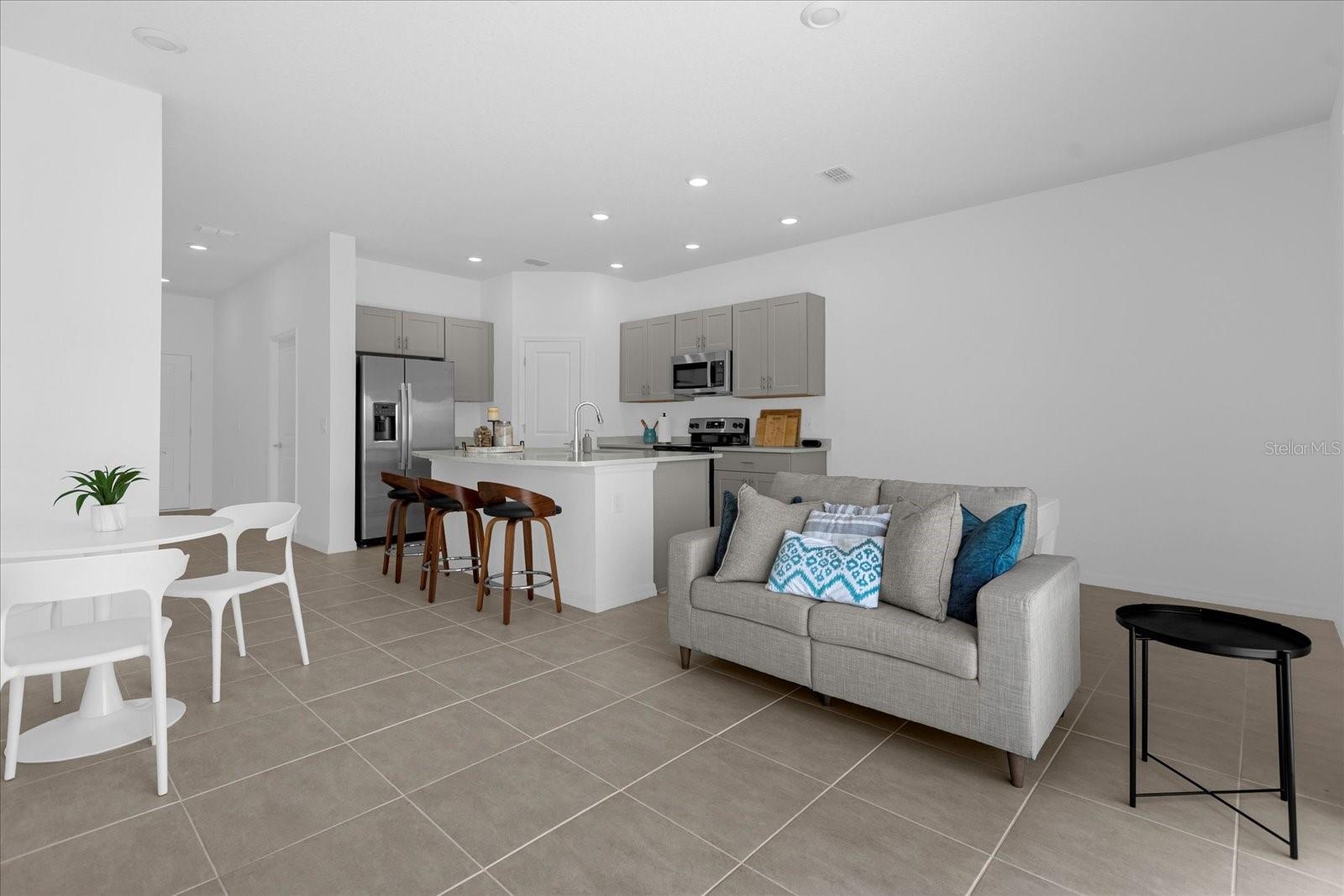Welcome to the brand NEW Townhome that is READY for you! Why wait months to build and secure your 3 bedrooms, 2 and 1/2 Bathroom home with a spectacular WATER View?! The Townhomes is the final phase of this great gated community of Bellalago with 24/7 security and offers the best amenities that make living the Florida lifestyle reality! Walking in to find a modern and upgraded first floor that features an open floor plan, Kitchen with 42" cabinets, Quartz counters and large breakfast bar, included Stainless Steel Refrigerator, Range, Dishwasher and Microwave, closet pantry, recessed lighting, under-stairs storage closet, sliding doors that leads to patio with an amazing VIEWS and partially PVC-fenced yard for privacy. Second story leads to upstairs laundry closet with new washer and dryer, Primary bedroom with Walk-in closet and En-Suite bathroom featuring double vanity with Quartz counters, two more Guest Bedrooms and a Guest Bathroom. Within steps away from your future house and surrounded by nature, you will be on the amenity Center well designed with aquatic center with a water slide and junior olympic pool, playgrounds, restaurant onsite, Basketball and Tennis courts and there is 2 fitness centers. There is plenty to do whether you enjoy spending time outdoors or trying different restaurants and easy access to Lake Toho through a boat ramp with a lift, and Club Vialago or walk on the deck to watch the most incredible sunset and an easy access to the lake's exciting attractions, including airboat tours or fishing on Kissimmee Lakefront Park.With the Shingle Creek Regional Park nearby another great option for hiking or biking in a 32-mile trail that's available. Nearby the community its the Village Shoppes at Bellalago that has a good variety that includes stores, restaurants, banks, a Publix Supermarket.
