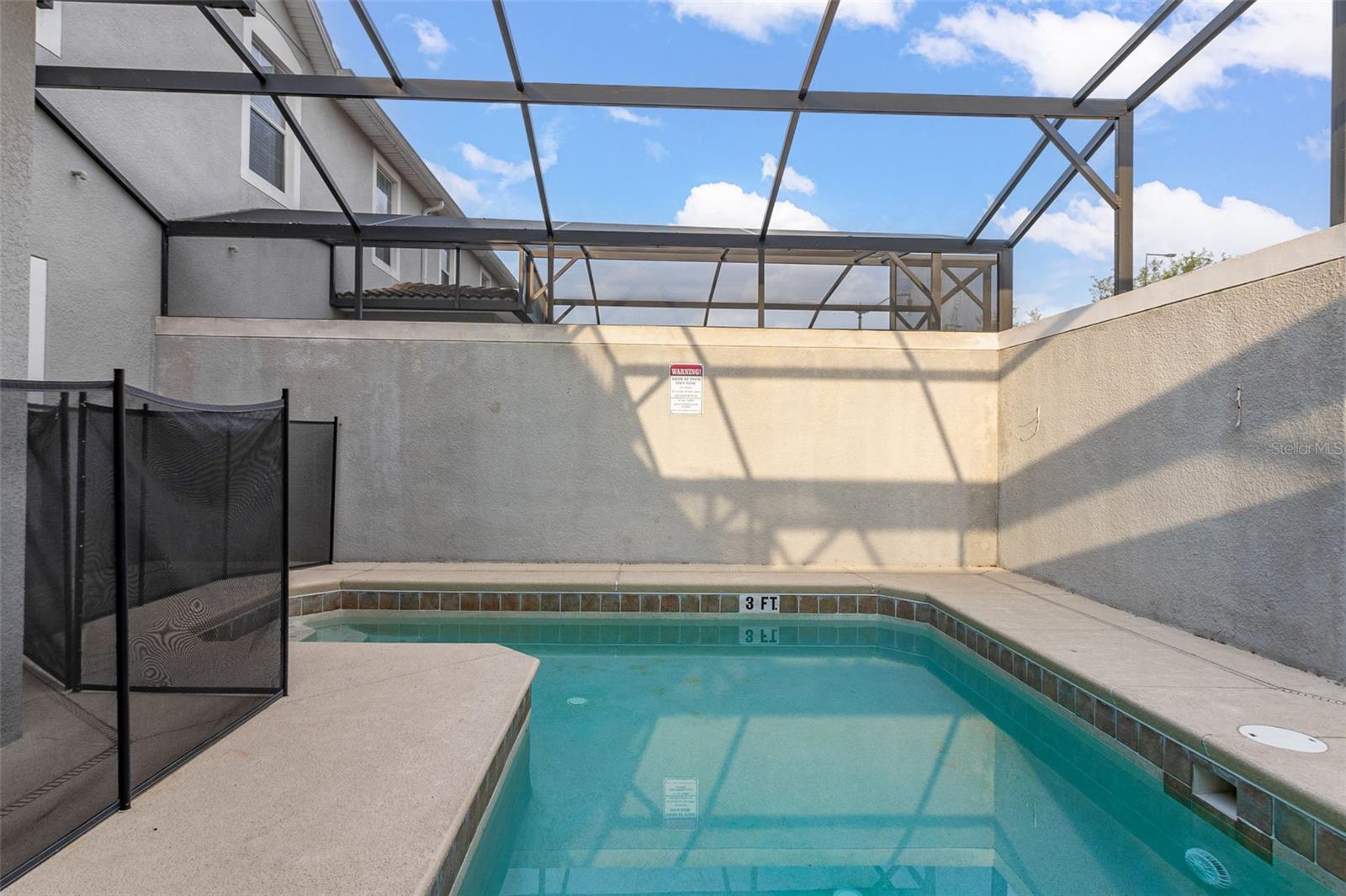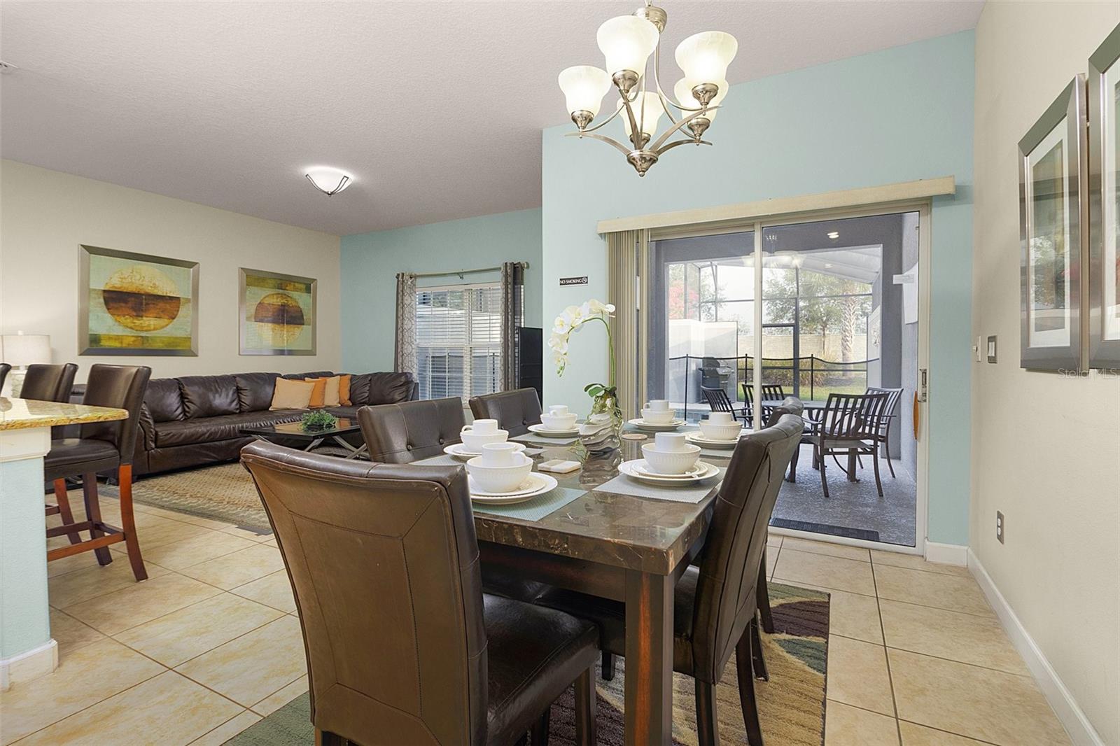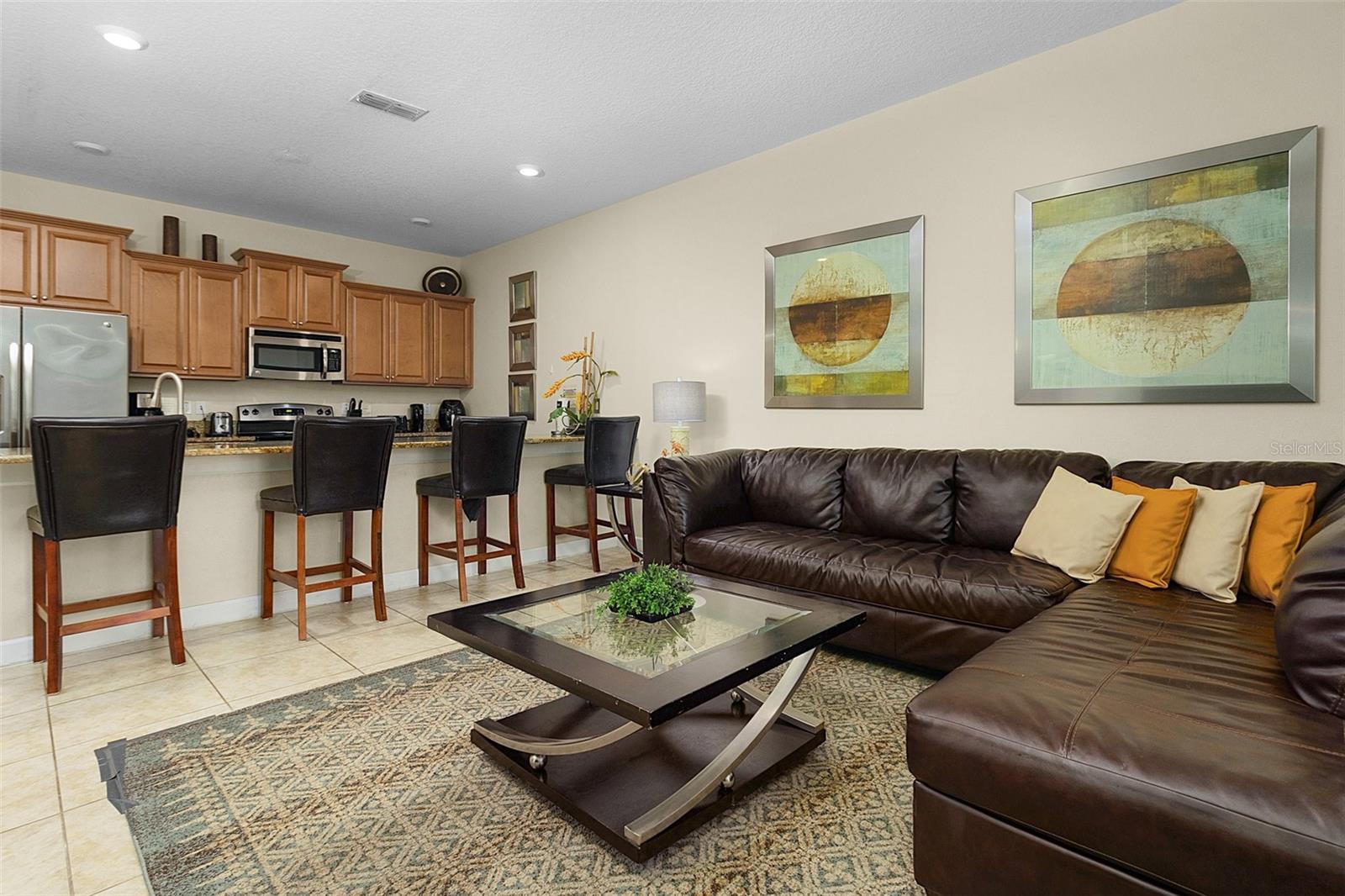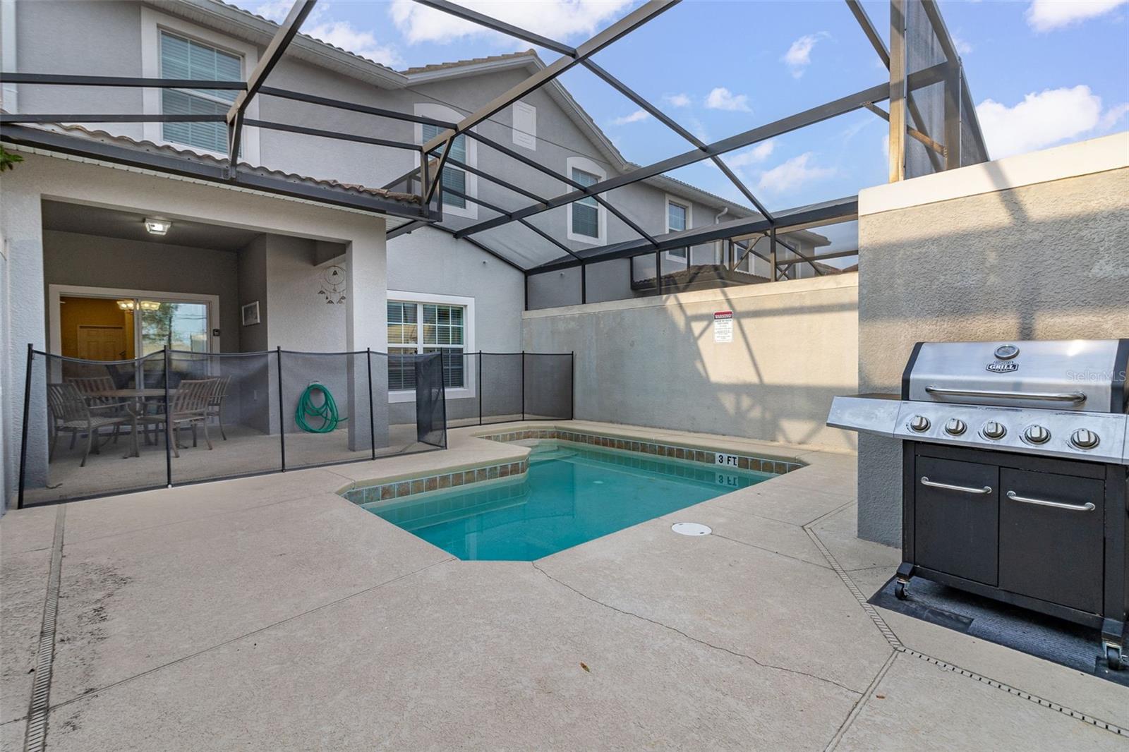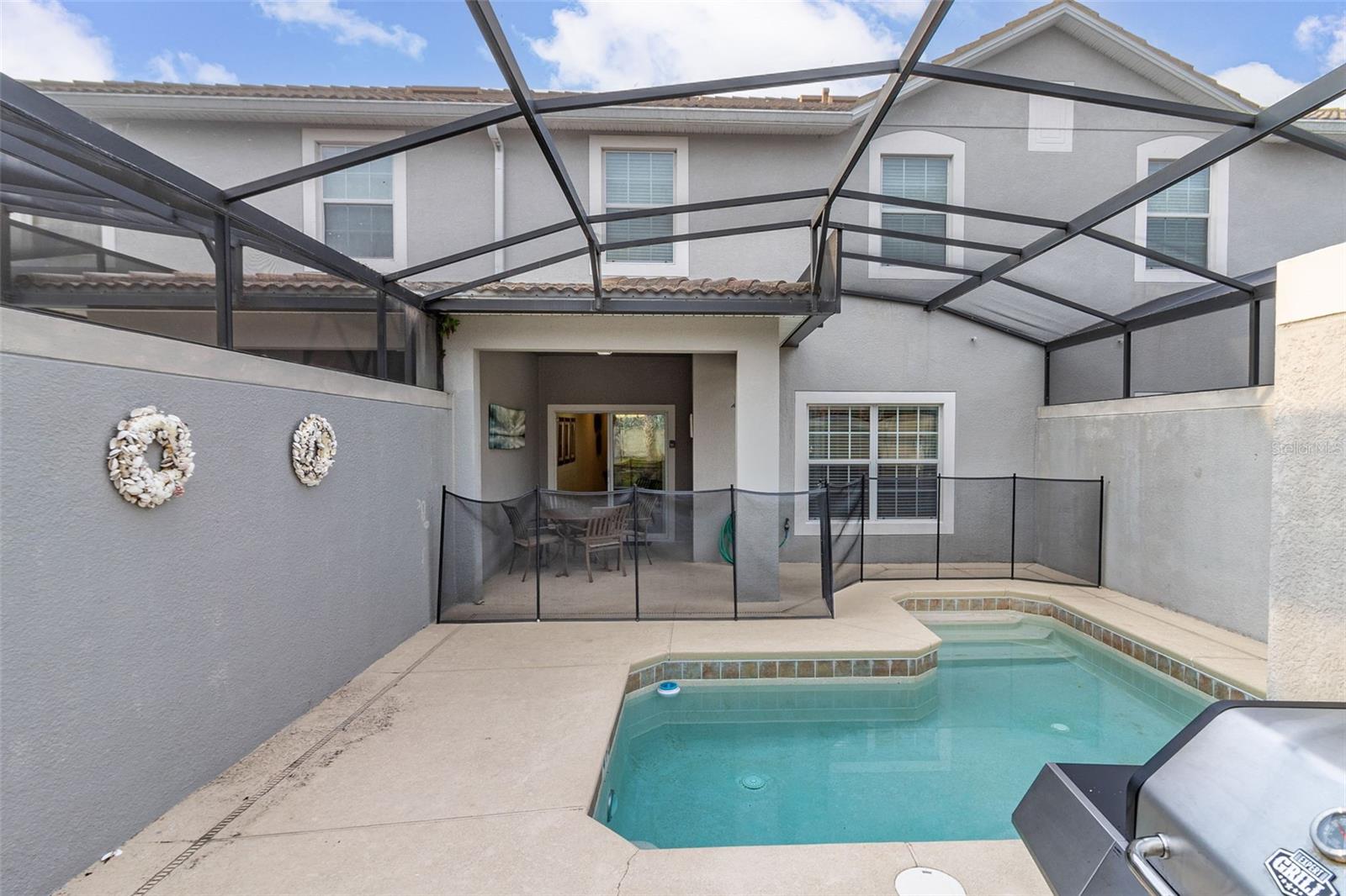 Excellent Investment Opportunity in STOREY LAKE Community! Welcome in this 4/3 TOWNHOME located in the desirable RESORT community ** STOREY LAKE ** by Lennar Homes, and make yourself at home! This beautifully decorated, fully FURNISHED, and filled with natural light home, has it's own PRIVATE HEATED POOL with screen enclosure. As you enter through the front door using your door code, be amazed by this READY TO MOVE IN home. The fully equipped kitchen has robust WOOD 42"CABINETS, STAINLESS STEEL APPLIANCES such as built in microwave, dishwasher, range and side by side refrigerator. All granite countertops, granite ISLAND breakfast bar with double sink make this open kitchen/family room perfect for family gatherings and durable if you wish to rent it to SHORT TERM guests. The sliding doors in the main area lead to a covered patio area with a HEATED POOL with plenty of room to relax with complete patio furniture. The first floor offers a full bathroom with granite counters and a beautifully adorned bedroom with dual closets. Additional bedrooms are strategically placed on the second floor, ensuring privacy. The LUXURIOUS master bedroom features a private bathroom with double vanity, granite counters, and wood cabinets. The second and third bedrooms share a full bathroom with double vanity, granite counters, and wood cabinets as well. All bedrooms are carpeted for added comfort, with a conveniently located laundry room on the second floor. Conveniently situated just 25 minutes from Orlando International Airport and a mere 10-minute drive to Disney's iconic attractions. Seaworld, Universal Studios, and Central Florida's renowned attractions are within easy reach. Indulge in RESORT-STYLE AMENITIES including various pools, water slides, a lazy river, hot tub, spa, splash park, mini-golf, sports courts, a top-notch gym, tiki bar, restaurants, and more. The association fee covers a plethora of services, including 24-hour manned and unmanned gates, cable TV, internet, common ground taxes, street lighting, valet trash service, exterior maintenance of the unit, ground and landscape maintenance, a sprinkler system with reclaimed water, and sidewalks. Don't miss the chance to explore this INCREDIBLE INVESTMENT OPPORTUNITY that offers luxurious living and excellent INCOME POTENTIAL through renting when not in use. Schedule a Showing Today!
