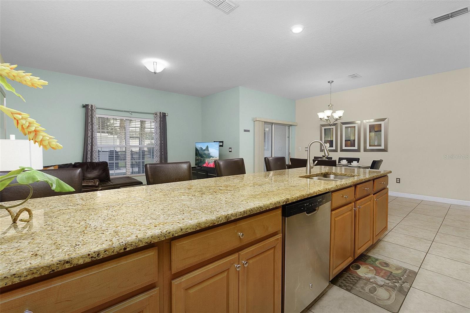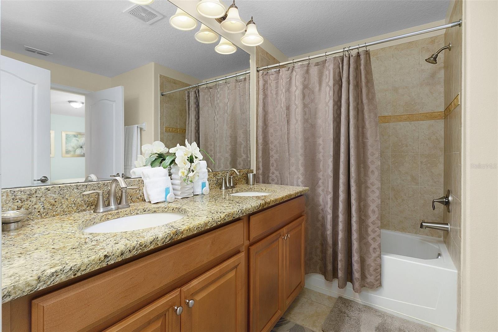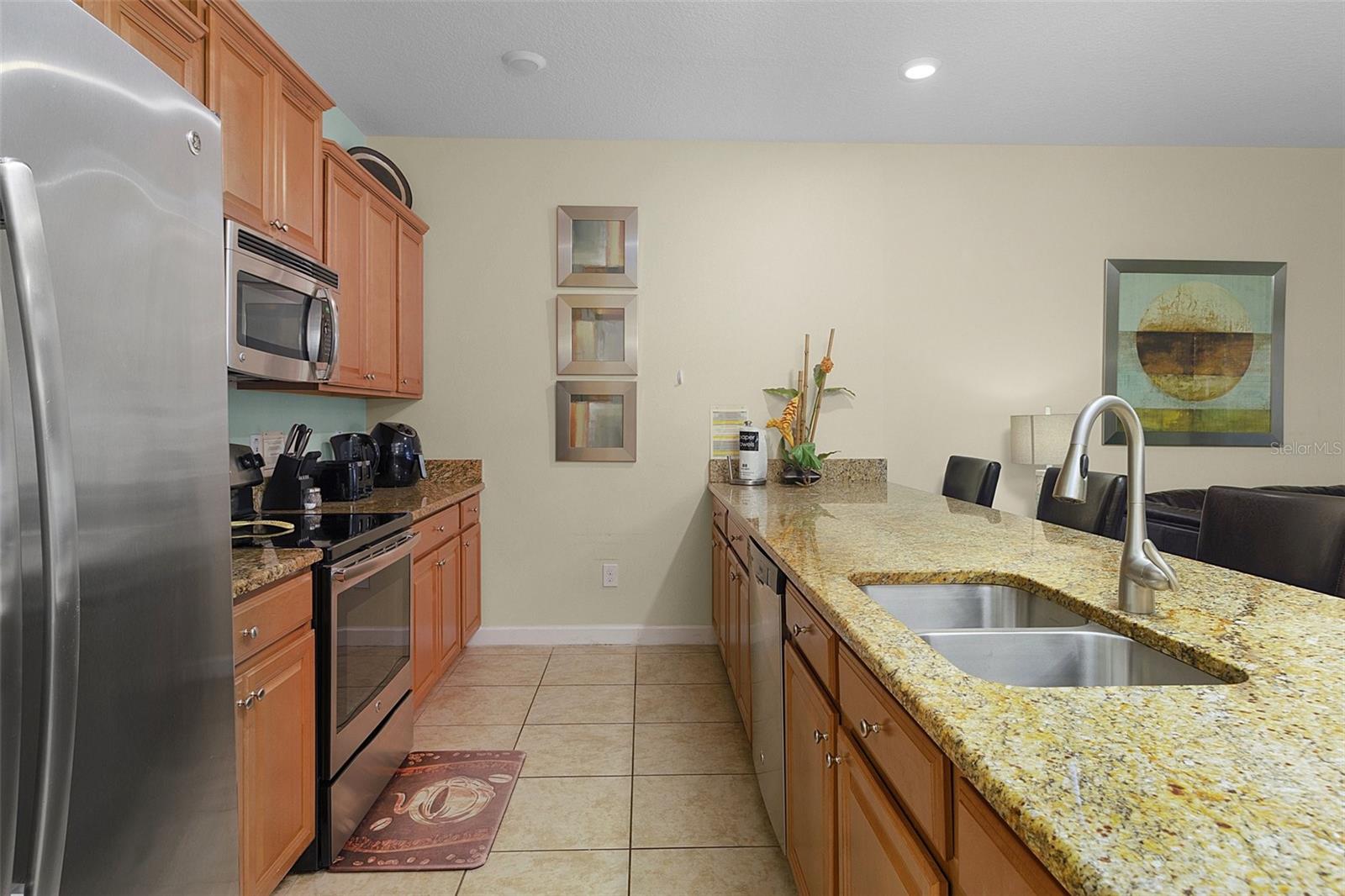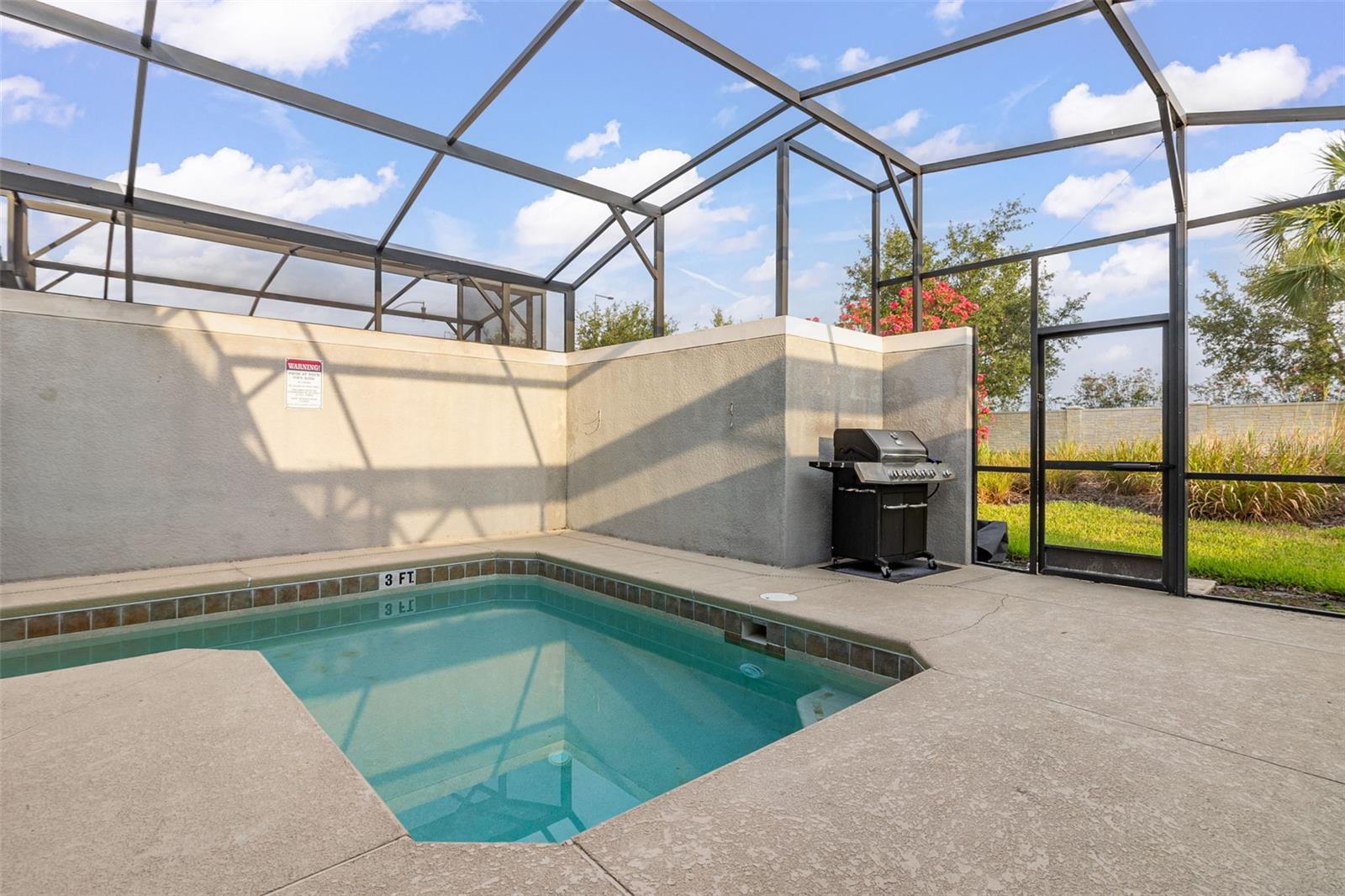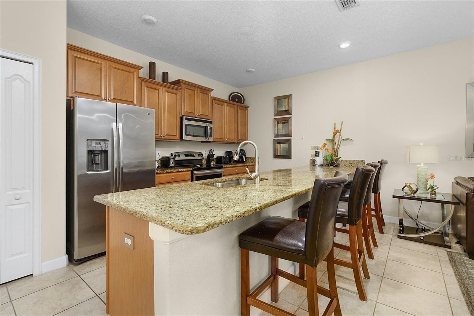 Excellent Investment Opportunity in STOREY LAKE Community! Welcome in this 4/3 TOWNHOME located in the desirable RESORT community ** STOREY LAKE ** by Lennar Homes, and make yourself at home! This beautifully decorated, fully FURNISHED, and filled with natural light home, has it's own PRIVATE HEATED POOL with screen enclosure. As you enter through the front door using your door code, be amazed by this READY TO MOVE IN home. The fully equipped kitchen has robust WOOD 42"CABINETS, STAINLESS STEEL APPLIANCES such as built in microwave, dishwasher, range and side by side refrigerator. All granite countertops, granite ISLAND breakfast bar with double sink make this open kitchen/family room perfect for family gatherings and durable if you wish to rent it to SHORT TERM guests. The sliding doors in the main area lead to a covered patio area with a HEATED POOL with plenty of room to relax with complete patio furniture. The first floor offers a full bathroom with granite counters and a beautifully adorned bedroom with dual closets. Additional bedrooms are strategically placed on the second floor, ensuring privacy. The LUXURIOUS master bedroom features a private bathroom with double vanity, granite counters, and wood cabinets. The second and third bedrooms share a full bathroom with double vanity, granite counters, and wood cabinets as well. All bedrooms are carpeted for added comfort, with a conveniently located laundry room on the second floor. Conveniently situated just 25 minutes from Orlando International Airport and a mere 10-minute drive to Disney's iconic attractions. Seaworld, Universal Studios, and Central Florida's renowned attractions are within easy reach. Indulge in RESORT-STYLE AMENITIES including various pools, water slides, a lazy river, hot tub, spa, splash park, mini-golf, sports courts, a top-notch gym, tiki bar, restaurants, and more. The association fee covers a plethora of services, including 24-hour manned and unmanned gates, cable TV, internet, common ground taxes, street lighting, valet trash service, exterior maintenance of the unit, ground and landscape maintenance, a sprinkler system with reclaimed water, and sidewalks. Don't miss the chance to explore this INCREDIBLE INVESTMENT OPPORTUNITY that offers luxurious living and excellent INCOME POTENTIAL through renting when not in use. Schedule a Showing Today!