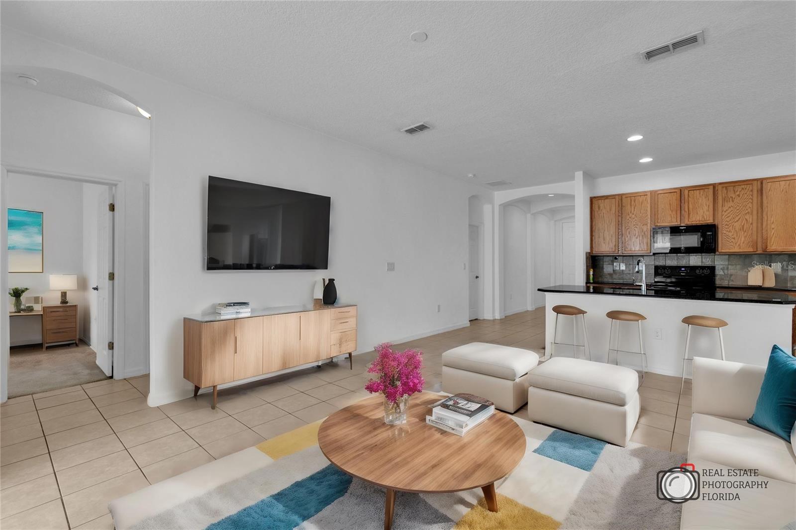 THIS LOVELY 4 BEDROOM 2 BATH HOME is in a prime location with good school zones, near Fl turnpike, and just a few minutes from Orlando international airport and Lake Nona Area. OPEN FLOOR PLAN, HIGH CEILINGS Granite countertops and in a gated community