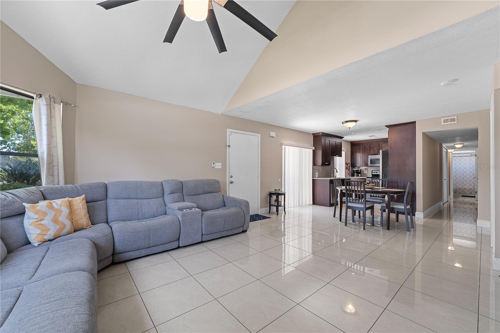 Introducing a fantastic opportunity in Shadow Bay Villas: an impressive ground-floor condominium with 3 bedrooms offering comfort and convenience. Upon entering, you'll discover elegant porcelain tiles adorning all common areas, while plush carpeting adds a touch of warmth to the bedrooms. The kitchen, a standout feature, boasts quartz countertops, wood cabinets, and stainless steel appliances, adding a touch of elegance and functionality. Enjoy the benefits of community living with access to a refreshing pool, perfect for relaxation and recreation. Whether you're considering long-term residency or seeking lucrative short-term rental opportunities, this versatile property caters to your lifestyle needs. Located just 10 minutes from The Loop, indulge in a premier shopping and entertainment destination with over 40 shops, a variety of restaurants, and a modern Regal cinema. With its proximity to Disney property and a host of attractions in central Florida, each day promises adventure and excitement. Plus, seamless travel is guaranteed with Orlando International Airport just a short drive away. Don't miss this exceptional property: seize the opportunity to make it yours today!