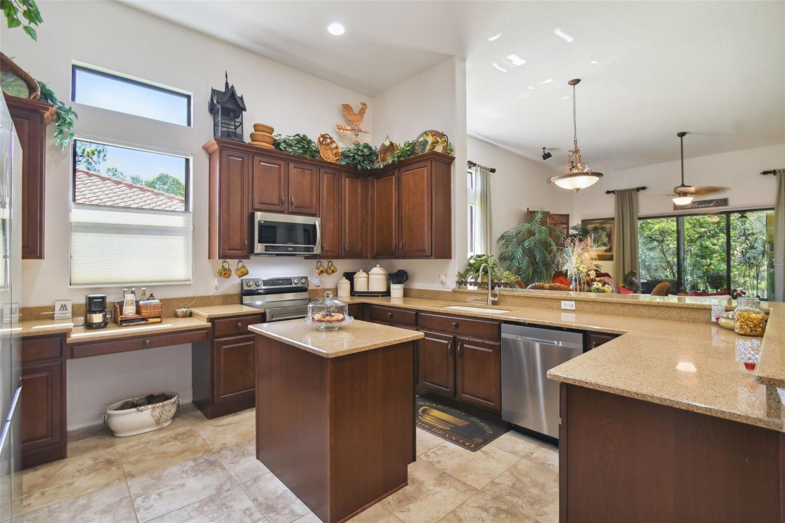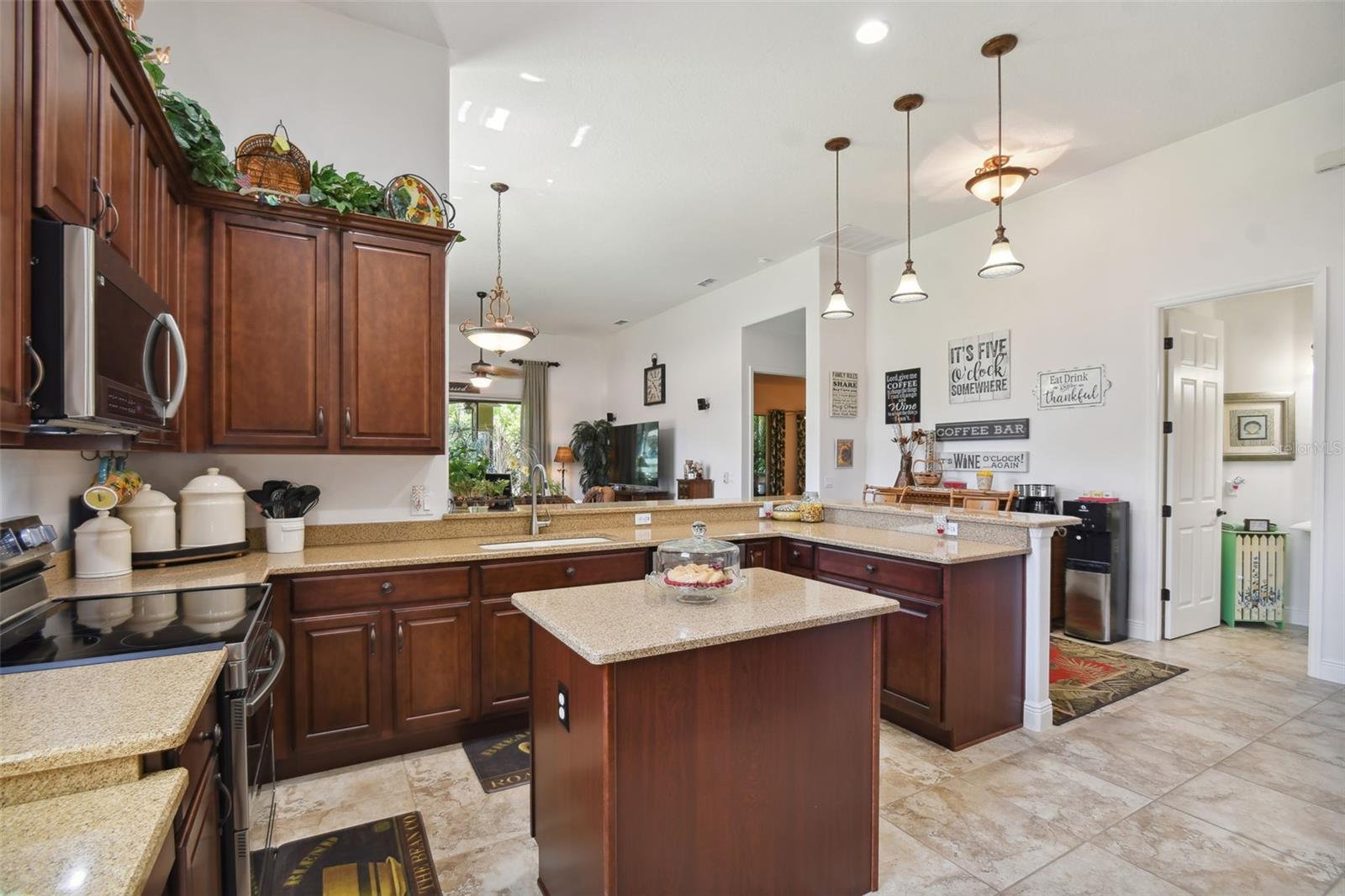 Seller will contribute toward closing costs. Welcome home to this upgraded Sanibel 3 Bedroom 2.5 bath that is a true masterpiece of design and functionality. From the moment you arrive, the custom landscaping featuring a striking three-tier block wall sets the tone for the elegance and attention to detail found throughout this home. The custom outside paint color makes this home stand out. Step inside and be greeted by soaring 12' ceilings, elegant rounded corners, and 20"x20" tile flooring in the wet areas, great room, and kitchen, offering both durability and timeless style. The 8' doors throughout the home create a sense of grandeur, while luxury planking in the bedrooms adds warmth and comfort under foot. The heart of this home is the chef’s dream kitchen, a culinary masterpiece designed for both beauty and efficiency. Quartz countertops provide sleek and durable surfaces, while the generous wrap-around eat-at bar is perfect for entertaining. Modern conveniences abound with features such as a touchless faucet, instant hot water, and a large walk-in pantry for all your storage needs. The kitchen is equipped with stainless steel appliances, all replaced in 2022, including a refrigerator with dual icemakers, a range with two ovens and a built-in air fryer, and cabinets with pull-out shelves for easy organization. The expansive great room seamlessly connects to the outdoors through a stunning three-panel sliding door, which opens to a massive 40' x 10' covered lanai. This outdoor space is perfect for entertaining or simply enjoying the tranquility of the conservation views, making it an extension of your indoor living area. The oversized primary suite is a luxurious retreat, offering breathtaking conservation views and two custom walk-in closets to accommodate all your wardrobe needs. The spa-like ensuite bathroom is designed for relaxation, featuring dual sinks, a vanity area, and a luxurious walk-in shower with a built-in seat, creating the ultimate private sanctuary. The additional bedrooms are spacious and well-appointed, providing flexibility for guests, a home office, or a hobby room. The 2.5 bathrooms are tastefully designed, ensuring comfort and convenience for all. The oversized two-car garage is a standout feature, complete with epoxy flooring and two 8' smart racks for additional storage. The home has been meticulously maintained, with both the interior and exterior painted in 2022. For added peace of mind, the HVAC system was replaced in 2020, ensuring efficient and reliable climate control. This home combines luxury, practicality, and sustainability in a serene setting. Whether you’re relaxing on the lanai, preparing meals in the gourmet kitchen, or enjoying the conservation views from the comfort of your living space, this property offers an unparalleled lifestyle. Solivita is a gated and guard-monitored 55+ master-planned community situated on 4,300 acres and boasts 150,000 square feet of resort-style amenities such as golf, 2 - 18 hole Golf courses, 2 state-of-the-art fitness centers, and various dining options. Residents can also enjoy 14 heated pools, amenity complexes, neighborhood centers, pickleball, tennis, bocce, and shuffleboard courts, along with miles of walking and bike paths. Over 200 Clubs, with Art, Education and cultural classes for you to enjoy! Join the "Solivita Family" and make this home your home today! Just outside of Solivita is the new Poinciana Lakes shopping center with Outback, First Watch.