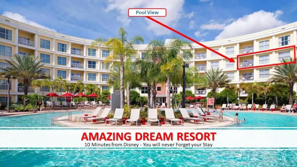 Welcome to Beautiful Condo-Hotel in an excellent location right off I-4 and minutes away from Disney. Enjoy a fully furnished, 2 bedroom, and 2 bathroom suite. The comfortable Master bedroom features a King-sized bed with desk to stay organized while working on vacation. The main living area has a large LCD TV, couch that converts to a hide-away bed, dining area, and a large balcony. This unit overlooks the pool, and also is considered accessibility unit, with wider doors and a walk-in shower. The floor plan of this unit is very desirable, with bedrooms on either side of the unit and the living space in the middle. The resort features an on-site restaurant with room delivery as an option, music, activities, and entertainment. The Melia has a variety of amenities including an infinity pool with beach-style entrance, spa, concierge, 24-hour front desk, room service, and PET FRIENDLY! The pool area features an outside bar area, put-put golf, table-top tennis, pool towels provided at the pool area. Elevators are available in the building as well. All this located in the beautiful town of Celebration Florida, where you will find the Celebration Golf Course, many restaurants, unique shops, grocery store and drug store are just around the corner! Situated just a few minutes from all the theme parks within the Orlando area, so close that you can hear the nightly fireworks from Disney not to mention the short drive from Orlando International Airport! This community allowed the owners to stay up to 179 days. Call to see the property today!