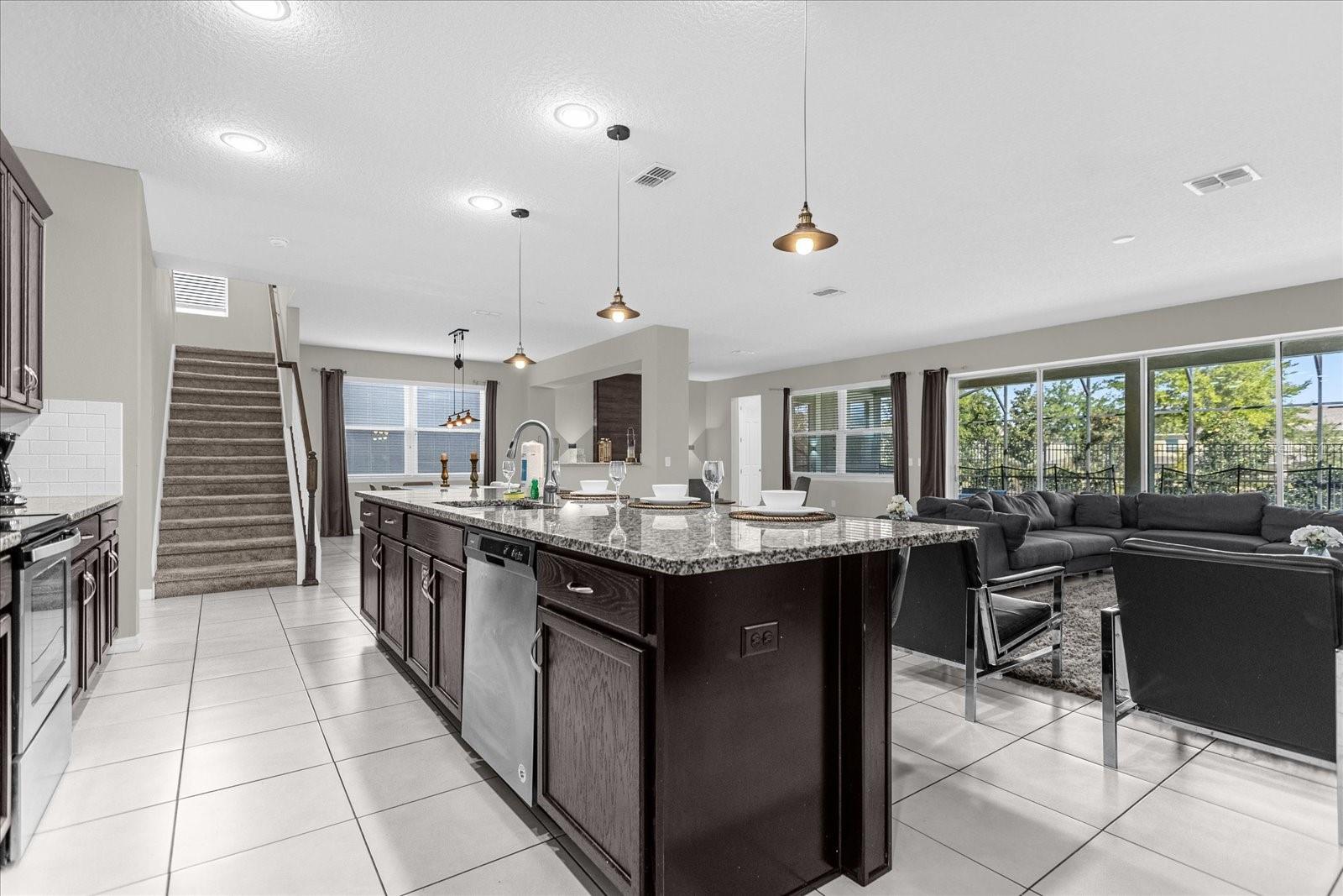 Welcome to your future TURN KEY OPPORTUNITY ! This *9 BEDROOM / 6 FULL BATHROOM / 1 HALF BATHROOM* home, nestled on the FIRST phase of one of the most amazing vacation community, SOLARA RESORT. Consisting of over 4,300 SqFt with a modern elevation and living spaces, this filled with natural light home offers a very spacious and stylish floor plan with many features such as: POOL DECK, GOURMET KITCHEN, FEW STEPS from COMMUNITY AMENITIES. Walk in through and you'll be greeted by a spacious and bright living room and large windows that allow plenty of natural light. The open floor plan seamlessly connects the living room to the dining area and kitchen, perfect for entertaining and get together. The kitchen has modern appliances, granite countertops, and ample storage space. The large island with a breakfast bar is ideal for enjoying morning coffee or chatting with guests while preparing meals. The primary bedroom, located on the first floor, features a walk-in closet and an en-suite bathroom with dual sinks, a soaking tub, and a separate shower. The pool deck area offers a large covered lanai and a gourmet kitchen with propane grill, sink and granite counter. Going up the stairs to the second floor you'll find eight more bedrooms five bathrooms, and a large loft providing plenty of space for family and guests. and other bedroom, spaces and and a spacious loft for entertaining. Bedrooms are decorated with Themed rooms and furnished with the guest and families in mind to provide long lasting memories. This home is very close from the amazing clubhouse that offers amenities such as pools, fitness center, restaurant, tiky bar, convenience store, soccer field. Solara Resort offers a state-of-the-art clubhouse with a full-service restaurant, ice cream parlor, and coffee bar. Fitness enthusiasts can enjoy the gym, while outdoor lovers can take advantage of the basketball, beach volleyball, and soccer facilities. The zero-entry pool, surrounded by cabanas, a poolside tiki bar, and a splash pad, provides endless hours of recreation. HOA fees include Basic Cable & Internet, Landscaping Maintenance, Valet Trash Service, and Common Area Maintenance. And located about 8 miles from Walt Disney World and a short drive to Universal, SeaWorld, and International Drive, offers the perfect blend of convenience and luxury for vacation home or investment property buyers. Don't miss this opportunity!Close to the Disney parks and many options of restaurant, shopping, grocery stores, this home is suitable for short term rentals in one of the best performing vacation communities in the area.