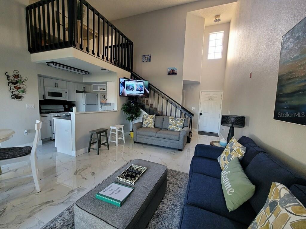 Welcome to this beautiful renovated Townhouse with new AC unit , located in the west side of Kissimmee, conveniently close by everything Restaurants, shopping's Attraction Parks and more. This Corner unit offer and open floor plan with a high ceilings and comfortable loft space. The villages at Mango key offers a gated community at the most peacefully feeling in the area. Short term rental approved, no need to wait no more to live or for short term.very close to disney.