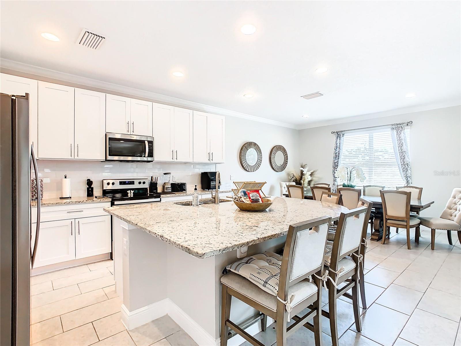 Beautifully decorated TURN KEY home in highly sought after Encore Reunion/ Reunion West subdivision. If you are looking for a vacation, rental or even your next investment property, this one is for YOU!! Fully furnished 5 bedroom, 5.5 bath home that is perfect for a vacation rental with all of the bedrooms having ensuites. Kitchen and dining area are spacious and ready for large groups. Kitchen is fully equipped and has shaker cabinets, beautiful granite, large island and all stainless appliances. All bedrooms are spectacularly decorated, fun and inviting. Home will come with all decor and all linens. Outside recharge and enjoy your covered Lani, pool, spa and very private large backyard with family and friends. This home is an entertainers dream with large family room, themed bedrooms, and amazing game room. Enjoy all the HOA has to offer including exterior landscape maintenance, irrigation for landscaping, internet, exterior pest control services, exterior pressure washing, trash services, gated and security patrol. Encore Reunion has resort style waterpark, pools, playgrounds, restaurants/bars, shopping, fitness center, tennis courts, basketball, volleyball and much much more! Located minutes from Disney, Sea World, Shopping, Fine dining, and an easy commute to Universal Studios. Enjoy all Orlando has to offer right at your fingertips or just stay in your own neighborhood with plenty to do! Don't miss out on this amazing home! Schedule your showing today with your favorite Realtor!