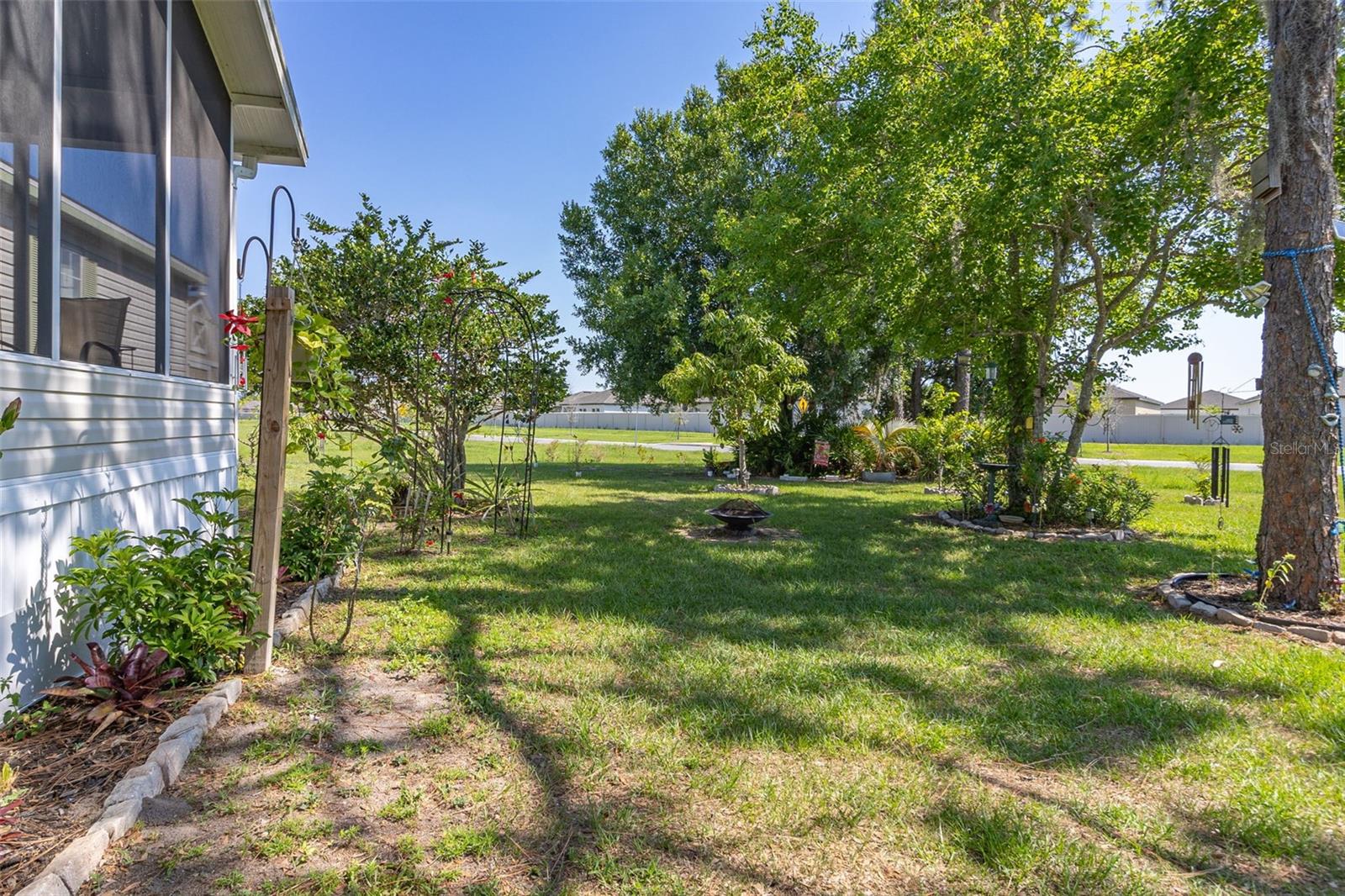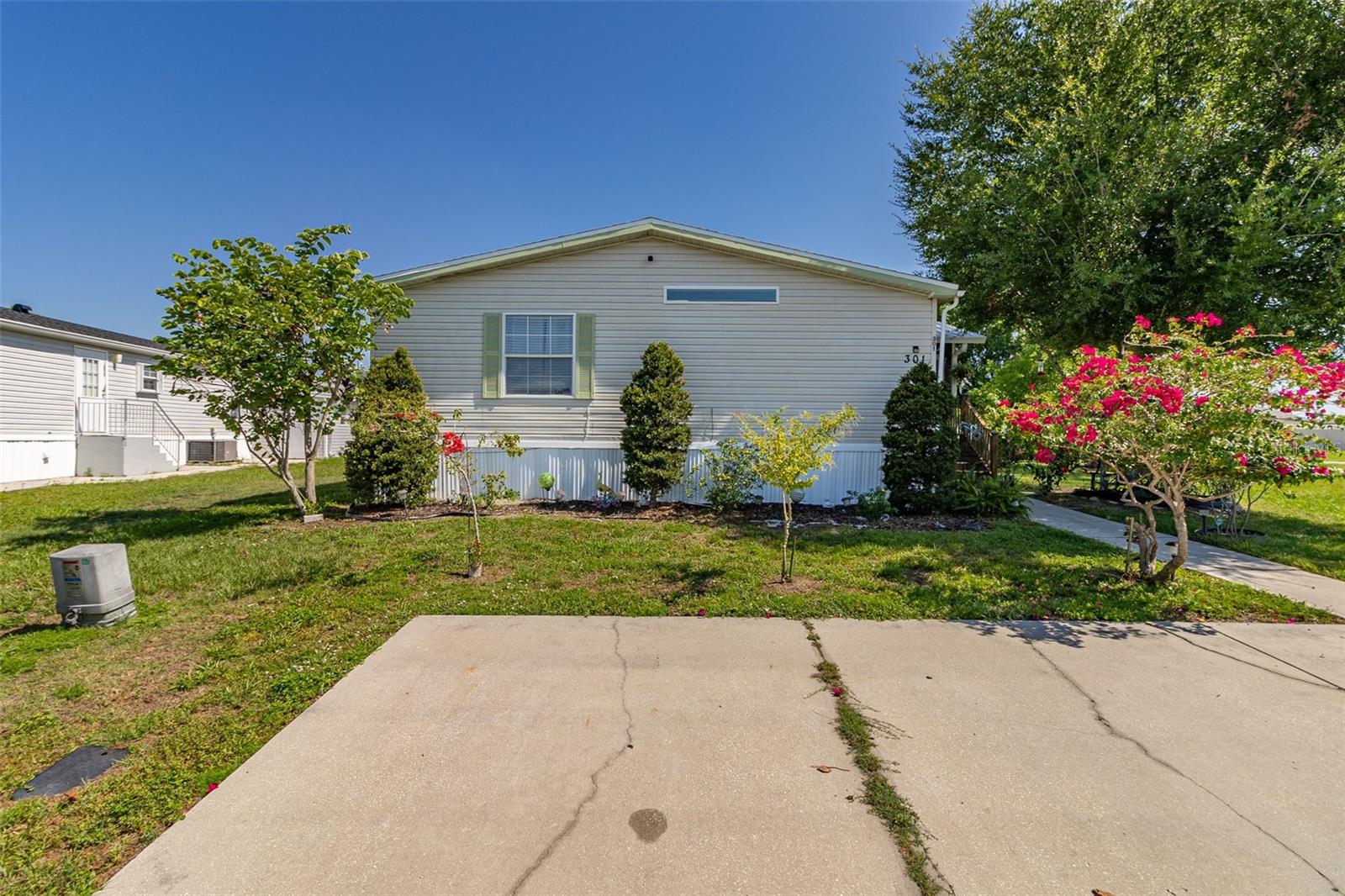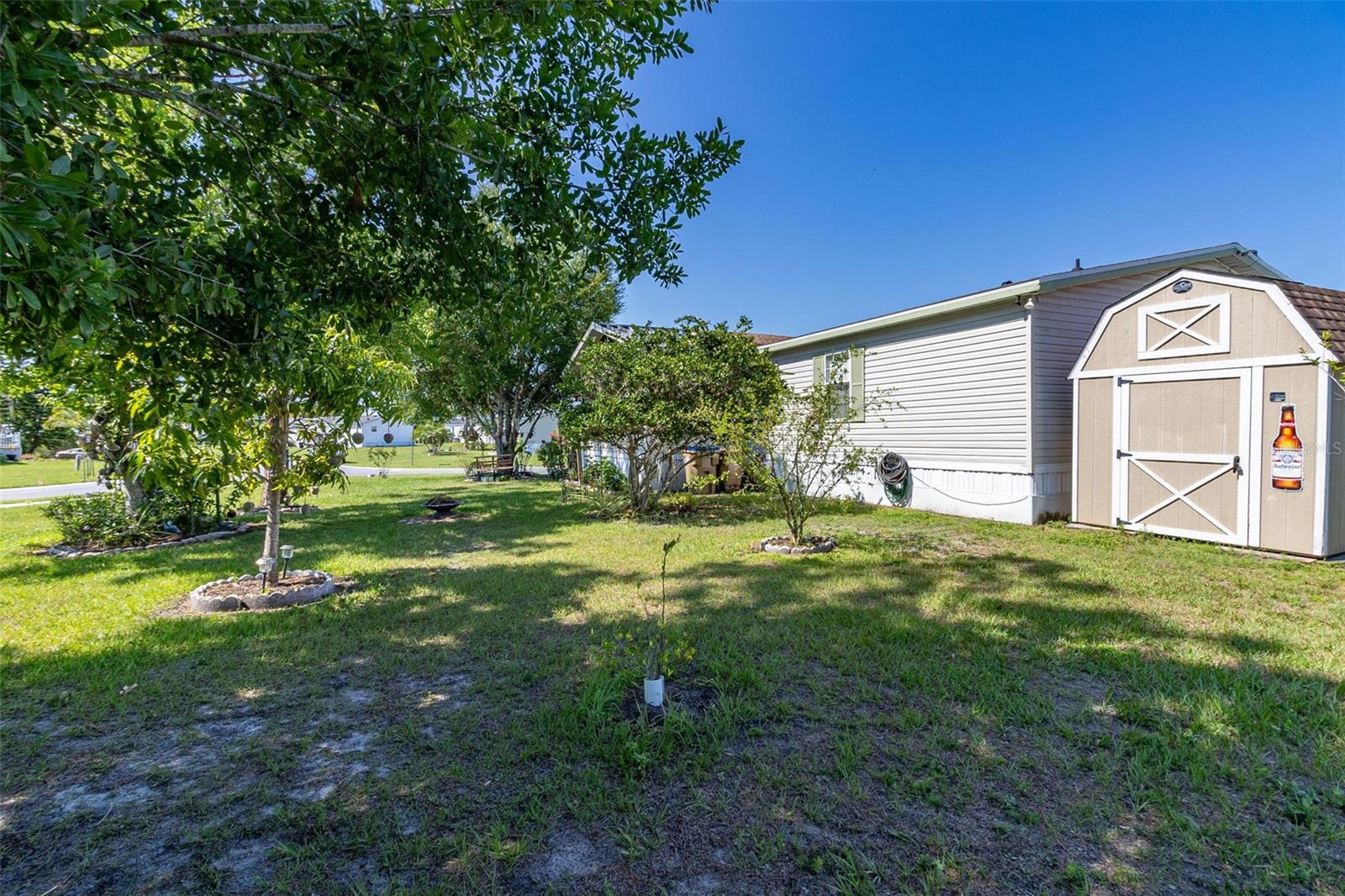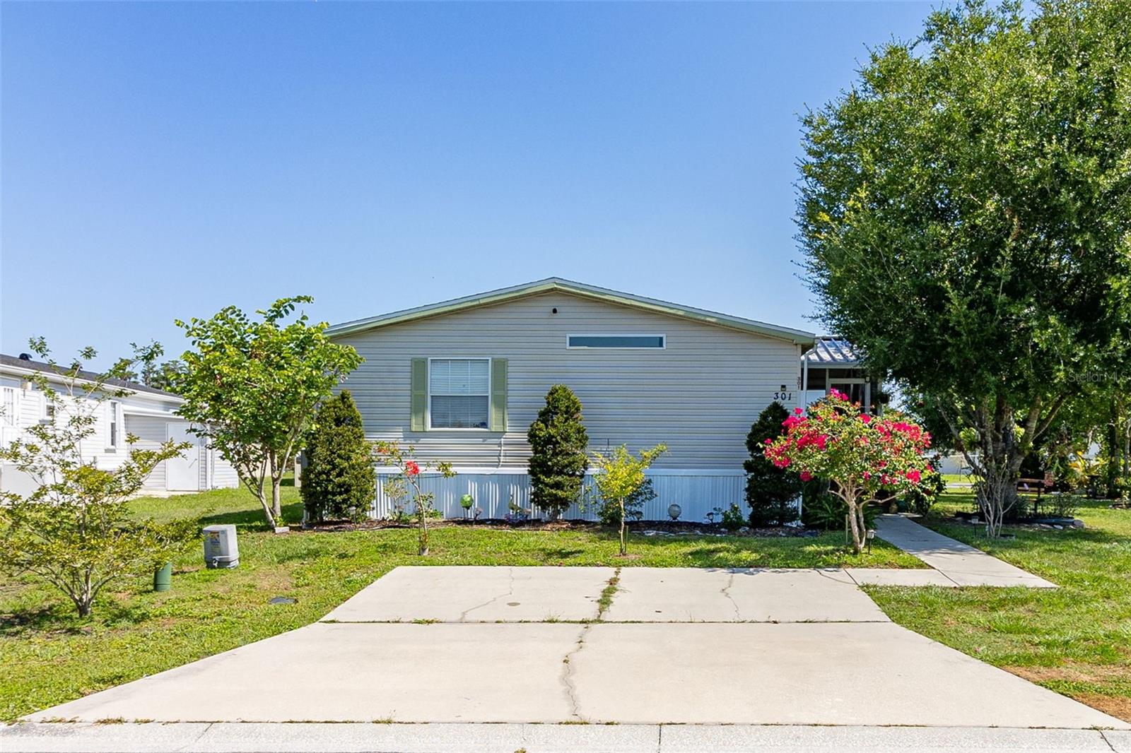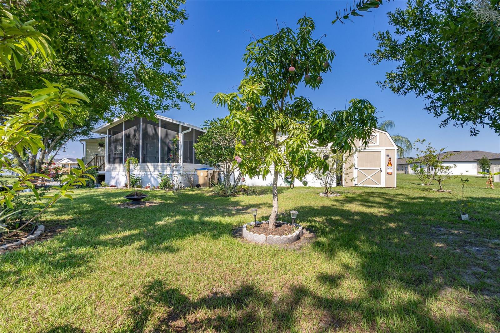 Welcome to this cozy updated home on a Spacious CORNER LOT with beautiful trees! Upon entrance relish in the OPEN FLOOR PLAN with LAMINATE floors and Vaulted Ceilings, updated light fixtures and fans. The flow of living room, dining room, family room and kitchen all in one open space gives you plenty of room for entertaining for you and the family. Having the Screened In Lanai allows expanding the living area, enjoy a morning coffee listening to the birds or relaxing in the evening after a long day. The Spacious kitchen is equipped with gorgeous epoxy countertops (which look like granite or quartz), plenty of White Cabinets with black hardware complimenting the newer black appliances. The WOOD Burning Fireplace with Wallpaper for a Decorative Feature and is a nice touch for those few Florida cold nights furthermore, the Expansive Nook is large enough for those who love the massive Flat Screened TVs. Enjoy the Spacious Primary Suite with a Spacious en suite bathroom, dual vanity, walk in shower and walk in closet. The other 2 bedrooms are at the back of the home with a little office/bonus/study area. With NO Rear Neighbors, enjoy the peace and quite offered on this expansive CORNER LOT with it's fruit trees including Mango, Passion Fruit, Citrus Fruit, Cherry Trees just to name a few. Not forgetting the lovely tropical flower (Orchids do not convey). The roof was replaced in 2020 and gutters and the HVAC in 2020. Additionally, .The backyard features an open space and a shed that conveys with the sale for even more storage. Located close is the Poinciana Sun rail, stores and schools. The community also offers landscaping, lawn maintenance with the HOA dues. This fantastic gem can be delighted in immediately, all this home needs is YOU!