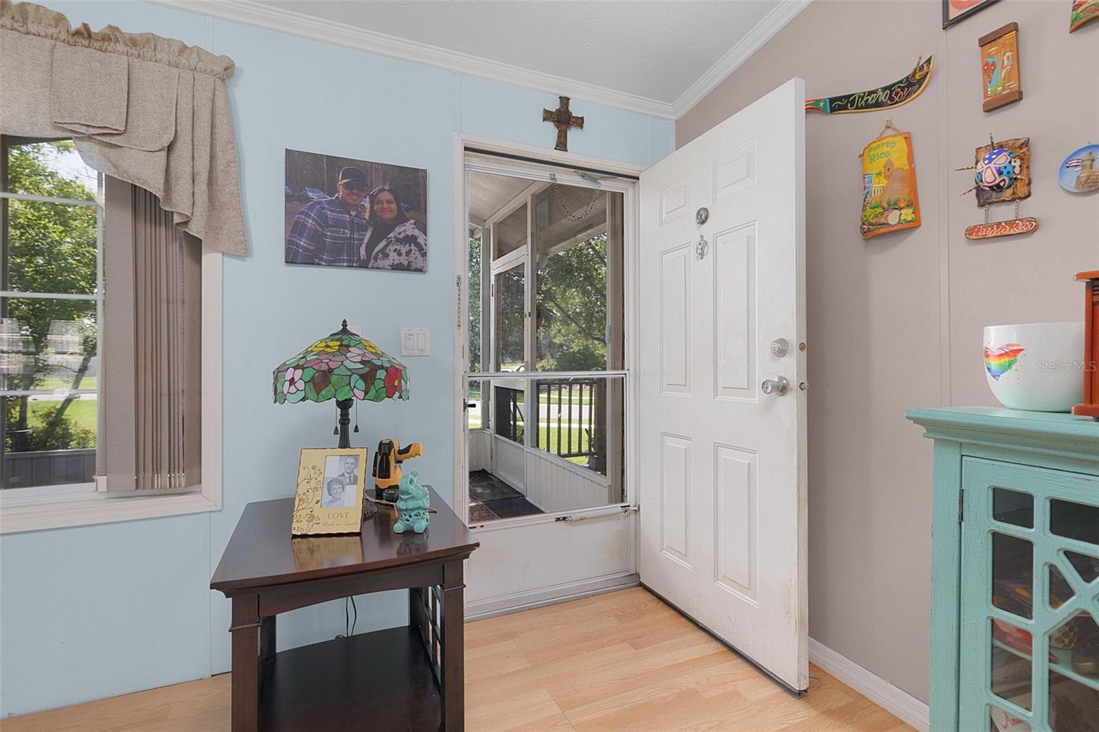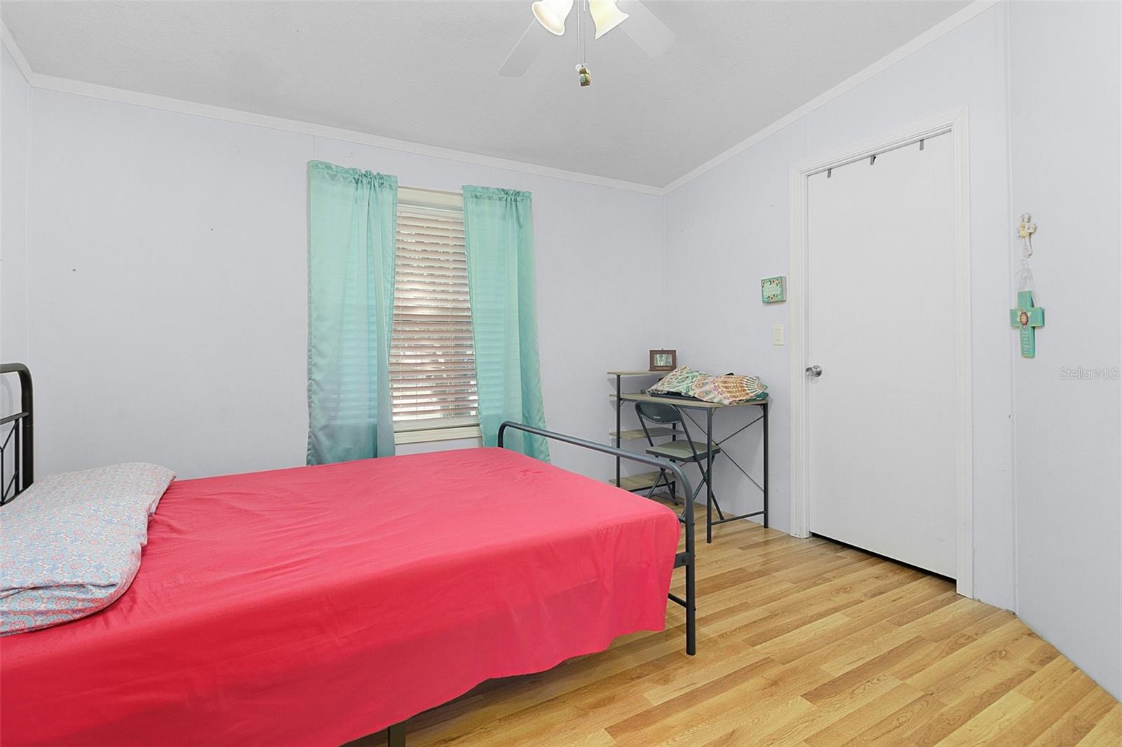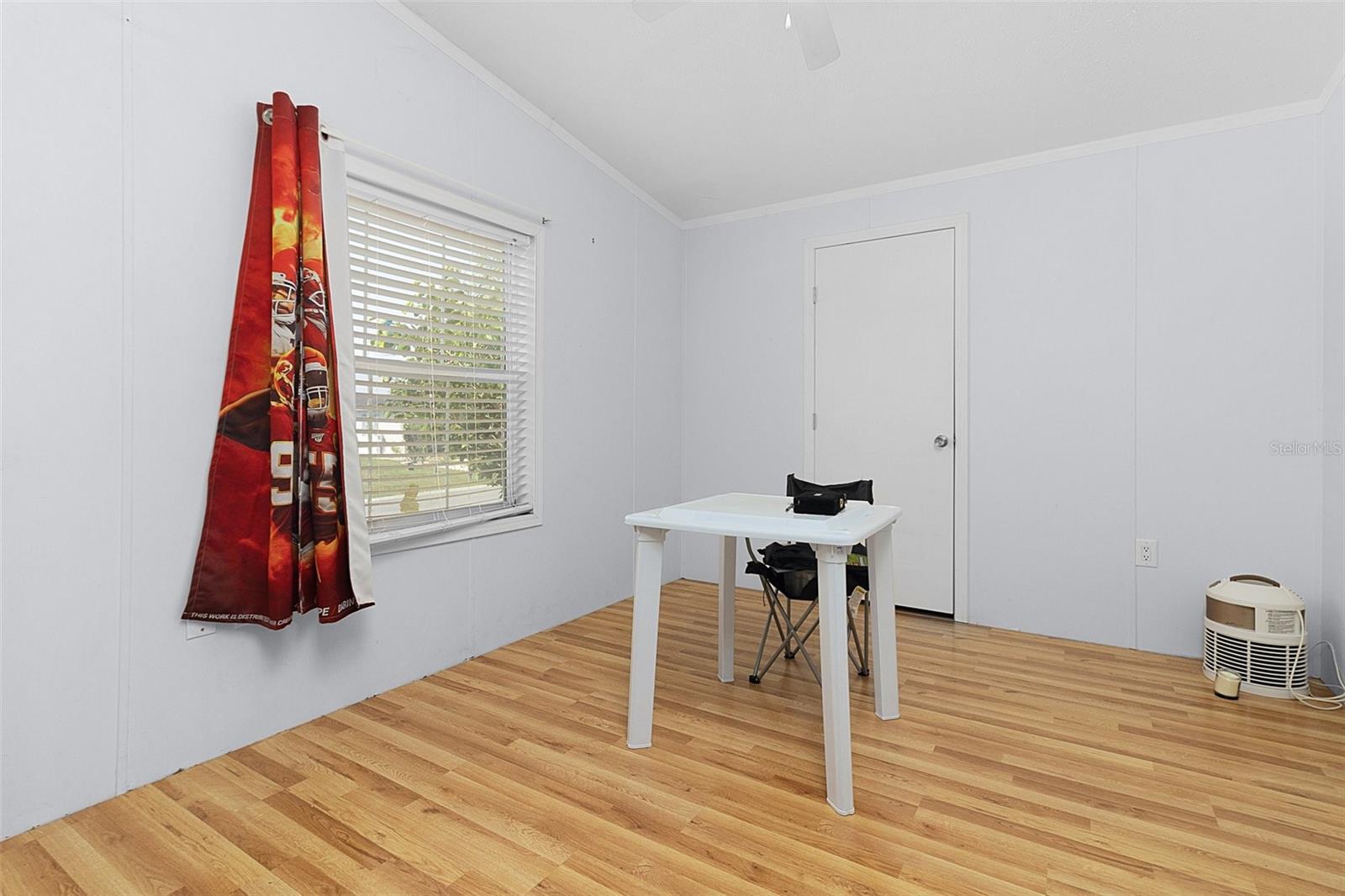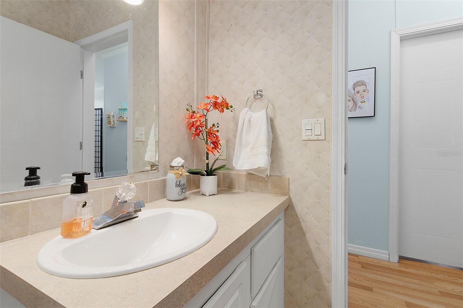 Welcome to this cozy updated home on a Spacious CORNER LOT with beautiful trees! Upon entrance relish in the OPEN FLOOR PLAN with LAMINATE floors and Vaulted Ceilings, updated light fixtures and fans. The flow of living room, dining room, family room and kitchen all in one open space gives you plenty of room for entertaining for you and the family. Having the Screened In Lanai allows expanding the living area, enjoy a morning coffee listening to the birds or relaxing in the evening after a long day. The Spacious kitchen is equipped with gorgeous epoxy countertops (which look like granite or quartz), plenty of White Cabinets with black hardware complimenting the newer black appliances. The WOOD Burning Fireplace with Wallpaper for a Decorative Feature and is a nice touch for those few Florida cold nights furthermore, the Expansive Nook is large enough for those who love the massive Flat Screened TVs. Enjoy the Spacious Primary Suite with a Spacious en suite bathroom, dual vanity, walk in shower and walk in closet. The other 2 bedrooms are at the back of the home with a little office/bonus/study area. With NO Rear Neighbors, enjoy the peace and quite offered on this expansive CORNER LOT with it's fruit trees including Mango, Passion Fruit, Citrus Fruit, Cherry Trees just to name a few. Not forgetting the lovely tropical flower (Orchids do not convey). The roof was replaced in 2020 and gutters and the HVAC in 2020. Additionally, .The backyard features an open space and a shed that conveys with the sale for even more storage. Located close is the Poinciana Sun rail, stores and schools. The community also offers landscaping, lawn maintenance with the HOA dues. This fantastic gem can be delighted in immediately, all this home needs is YOU!