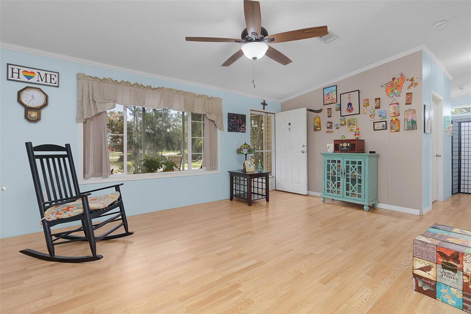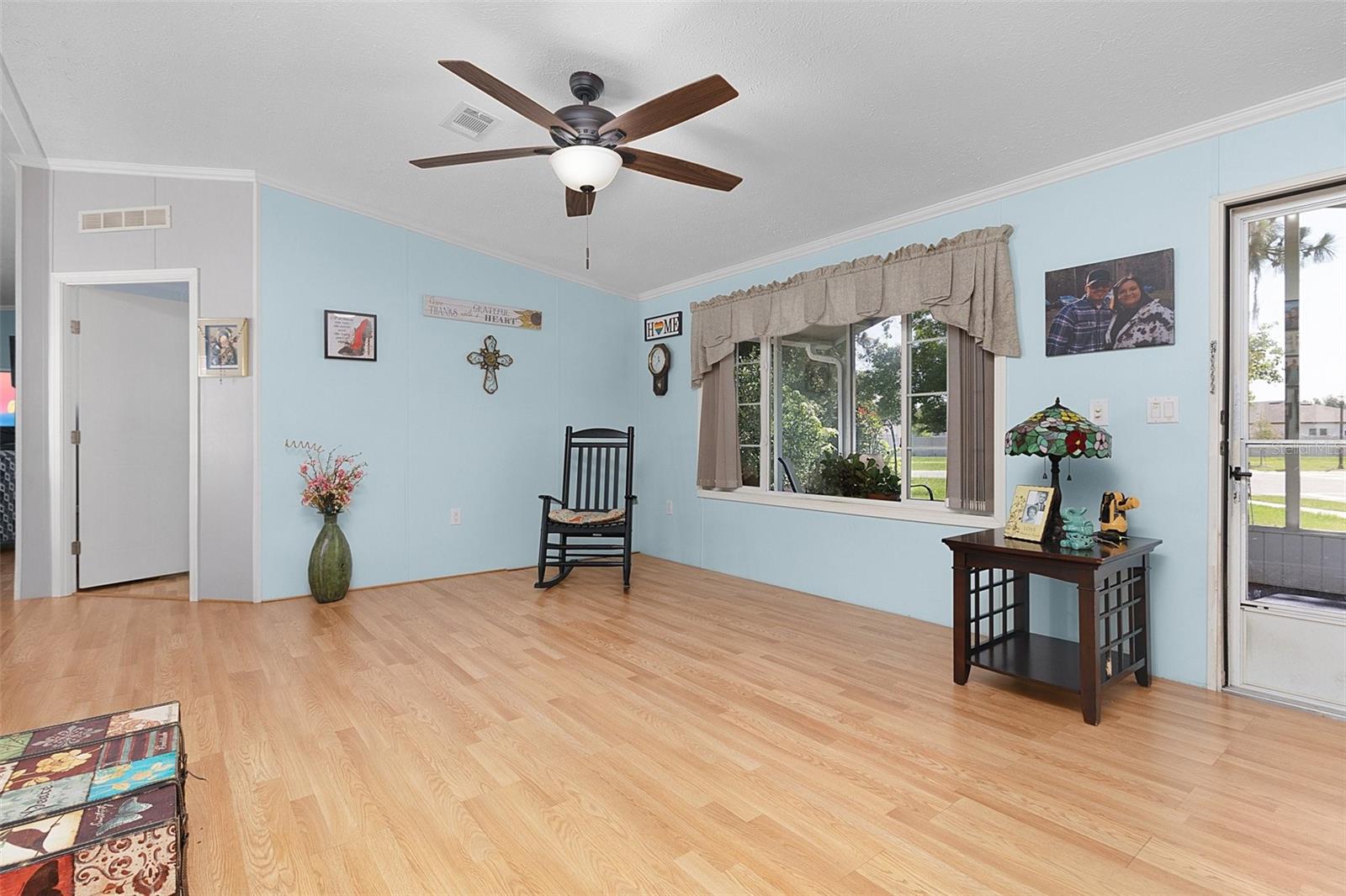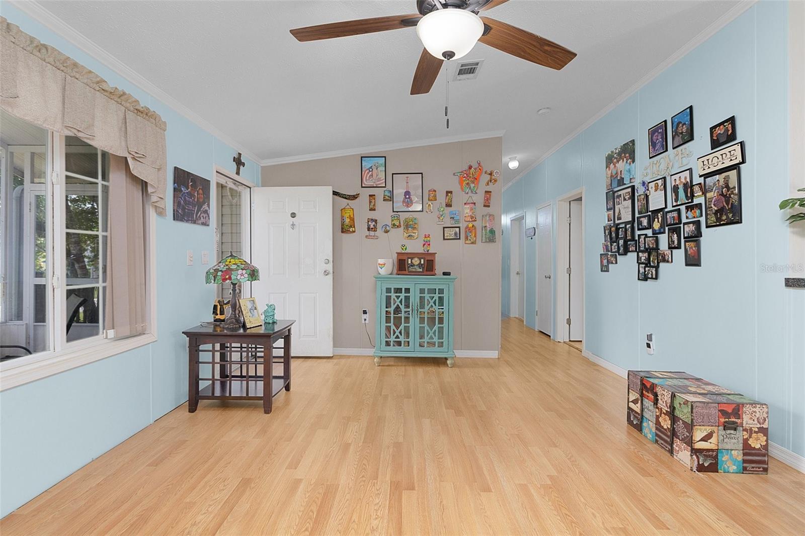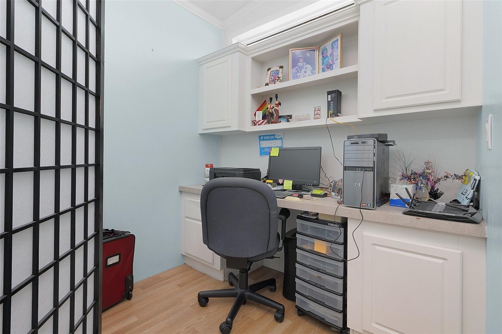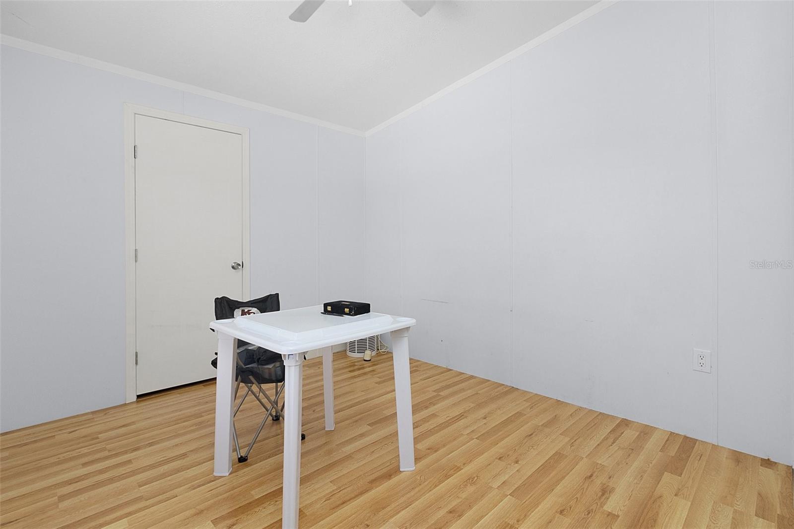 Welcome to this cozy updated home on a Spacious CORNER LOT with beautiful trees! Upon entrance relish in the OPEN FLOOR PLAN with LAMINATE floors and Vaulted Ceilings, updated light fixtures and fans. The flow of living room, dining room, family room and kitchen all in one open space gives you plenty of room for entertaining for you and the family. Having the Screened In Lanai allows expanding the living area, enjoy a morning coffee listening to the birds or relaxing in the evening after a long day. The Spacious kitchen is equipped with gorgeous epoxy countertops (which look like granite or quartz), plenty of White Cabinets with black hardware complimenting the newer black appliances. The WOOD Burning Fireplace with Wallpaper for a Decorative Feature and is a nice touch for those few Florida cold nights furthermore, the Expansive Nook is large enough for those who love the massive Flat Screened TVs. Enjoy the Spacious Primary Suite with a Spacious en suite bathroom, dual vanity, walk in shower and walk in closet. The other 2 bedrooms are at the back of the home with a little office/bonus/study area. With NO Rear Neighbors, enjoy the peace and quite offered on this expansive CORNER LOT with it's fruit trees including Mango, Passion Fruit, Citrus Fruit, Cherry Trees just to name a few. Not forgetting the lovely tropical flower (Orchids do not convey). The roof was replaced in 2020 and gutters and the HVAC in 2020. Additionally, .The backyard features an open space and a shed that conveys with the sale for even more storage. Located close is the Poinciana Sun rail, stores and schools. The community also offers landscaping, lawn maintenance with the HOA dues. This fantastic gem can be delighted in immediately, all this home needs is YOU!