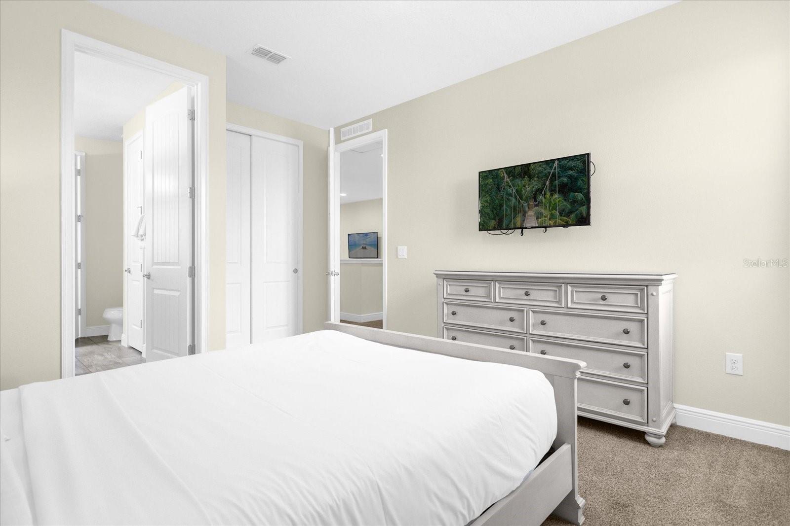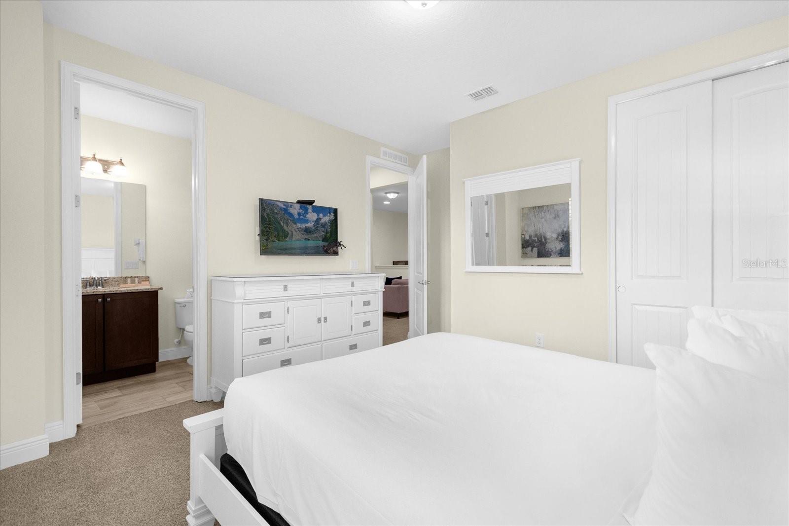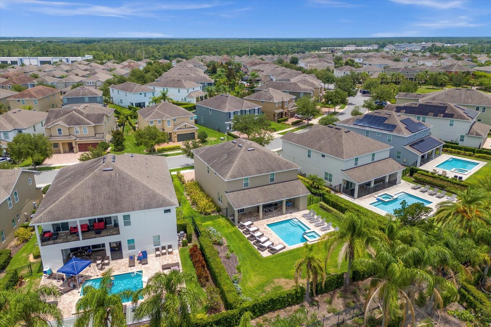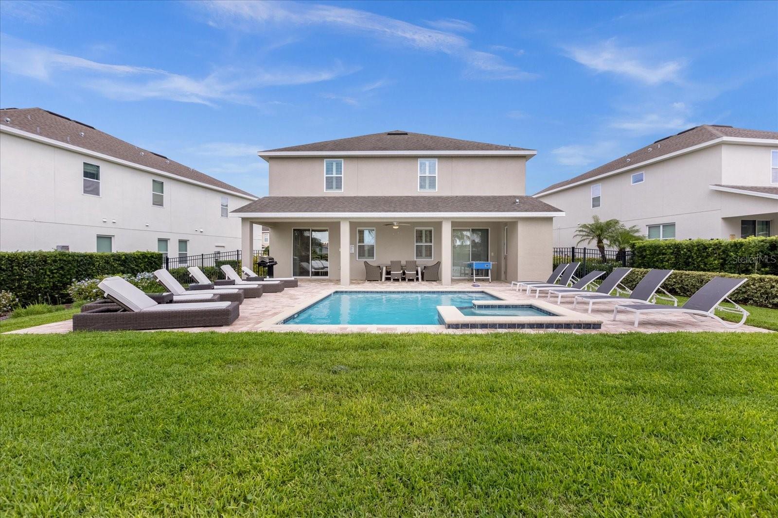 PRICE REDUCTION: Down 30,000 ....Walking distance to the Clubhouse. Welcome to this luxury vacation 8 bedroom + theater room, 6.5 bathroom income producing SHORT TERM RENTAL home. Great opportunity to own in one of the most desirable resort communities near Disney, ENCORE RESORT AT REUNION. The home is on an oversized lot with just over a 1/4 acre and is within a short walking distance to the state-of-the-art clubhouse and waterpark with several restaurants, fitness center, volleyball, basketball, tennis courts and even a concierge check-in desk for guests. This home is turn-key rental ready, features 8 large bedrooms including several with their own en-suites. Swim in the private heated pool and spa or relax in the theater room that can be easily converted into bedroom #9 in the future if you desire. The open floor plan offers a primary bedroom on the main level along with an additional suite. The kitchen offers a great view out the backyard and pool, and also overlooking the large comfy living room and dining area, perfect for gathering with family and friends. ENCORE AT REUNION is a gated resort style community, with a 10-acre water park, sports facilities featuring two hard surface tennis courts, a full and half court for basketball, two sand volleyball courts, and a full soccer field, a state-of-the-art fitness center. This stunning two-story 8 bedroom single-family Orlando home is the perfect place to have the best Vacation with the entire family. Comes Fully furnished with everything you will need for a short term vacation rentals or primary home usage. This Home features many upgrades such as a Premium Lot with over sized yard and large pool and professionally decorated. Enjoy the resort style water park pools, spa, fitness center, restaurant, on site concierge, and much more. ENCORE CLUBHOUSE AND WATER-PARK: Amenities include: Water-slides, Swimming Pool, Fitness Area, Games Room. This property is great for investors short term rentals, family vacation home or primary residence. Property location is 15 min from Theme parks. A MUST SEE