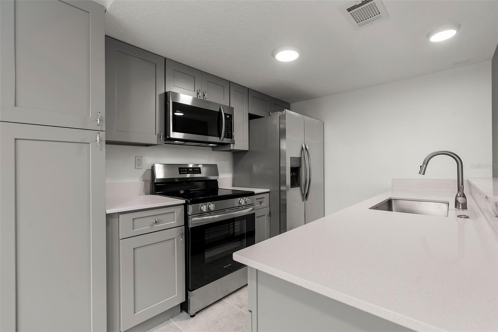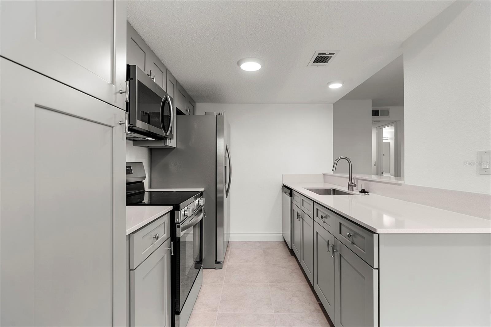 BACK ON THE MARKET! BUYER'S FINANCING FELL THROUGH! AMAZING! BEAUTIFUL! Just two of the many words that can describe this condo! This place has been fully remodeled from the floors to the ceilings and just about everything in between. NEW solid wood cabinets, stainless steel appliances, quartz countertops, a/c, interior doors, interior paint, windows, tub, shower, vanities, ceramic floor tile and carpet. You will be amazed at the picturesque view of the modern kitchen as soon as you walk through the front door. Just imagine entertaining friends or family even while your in this beautiful kitchen making one of your famous meals or whipping up some quick snacks during your favorite sporting event. This home has it all. Two bedrooms, two full baths, 970 square feet of living space, a screened in rear patio/balcony. A gated community with a community pool, clubhouse and a community laundromat. It's in a GREAT location. It's very close to shopping, restaurants and the Theme Parks. It also has a very low HOA fee and water is included. Need I say more? Schedule your showing today for tomorrow may be too late.