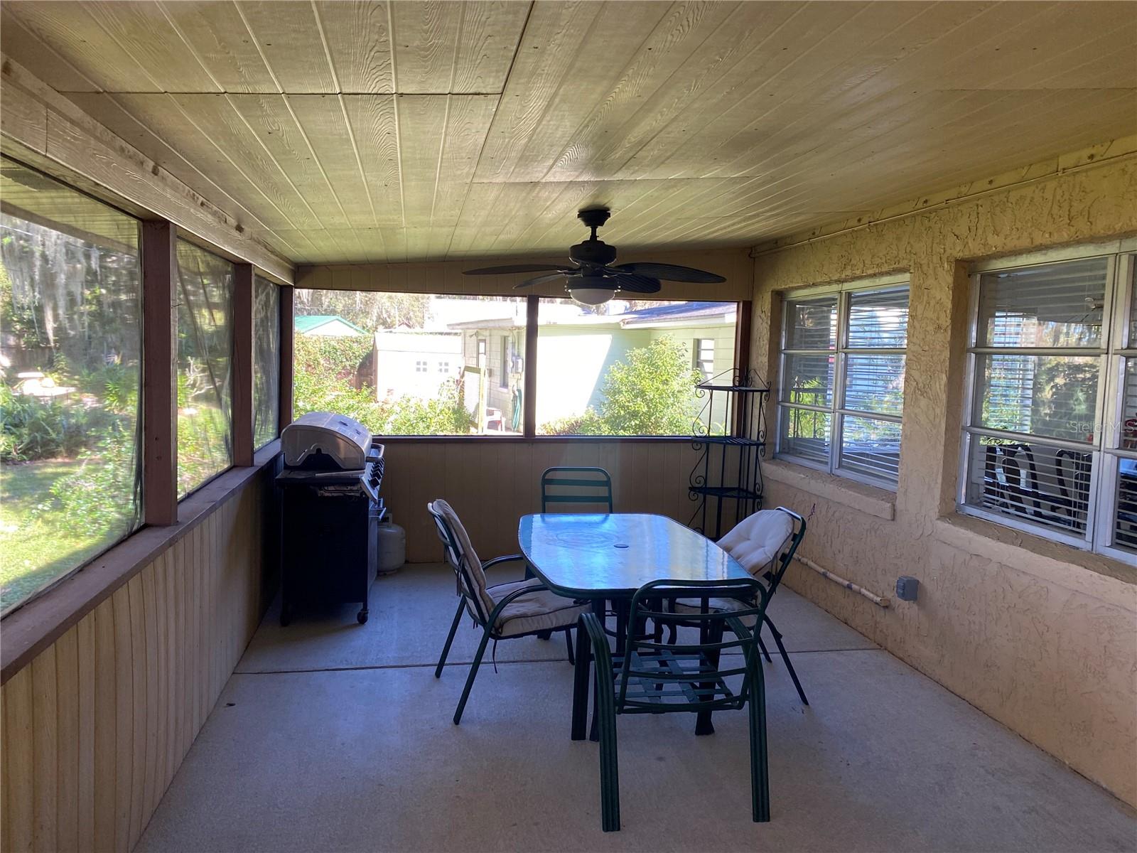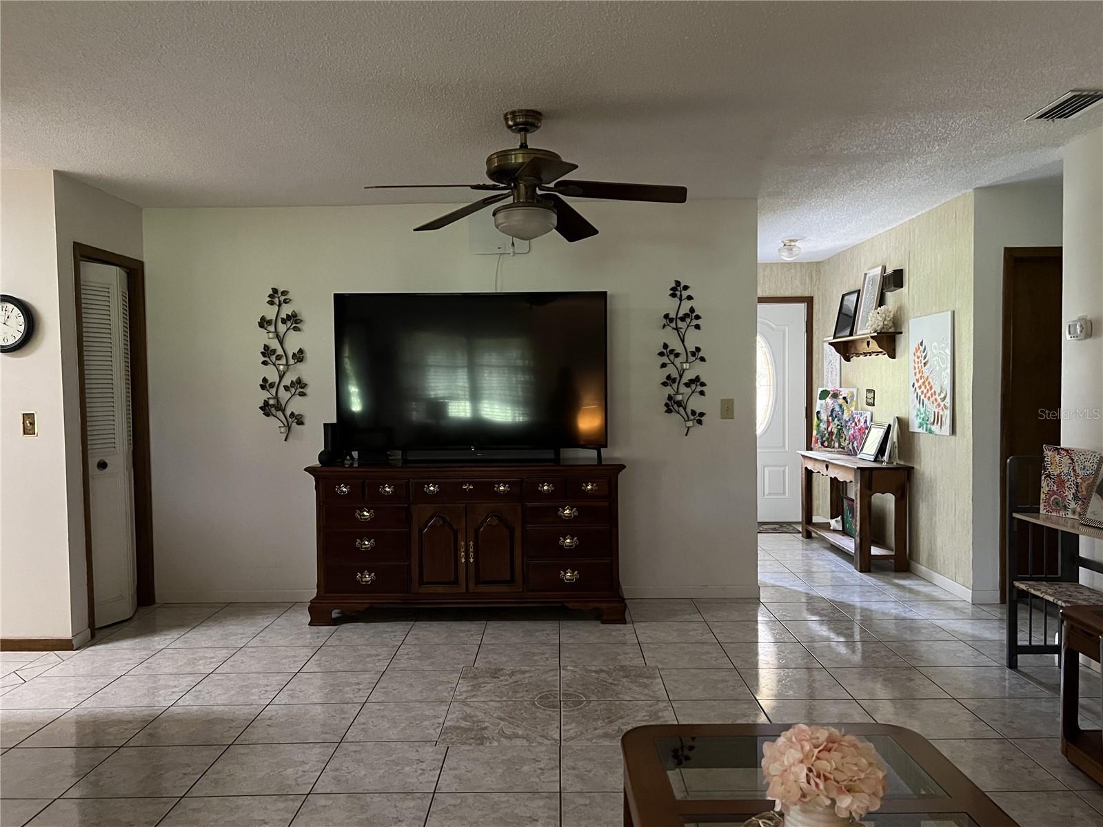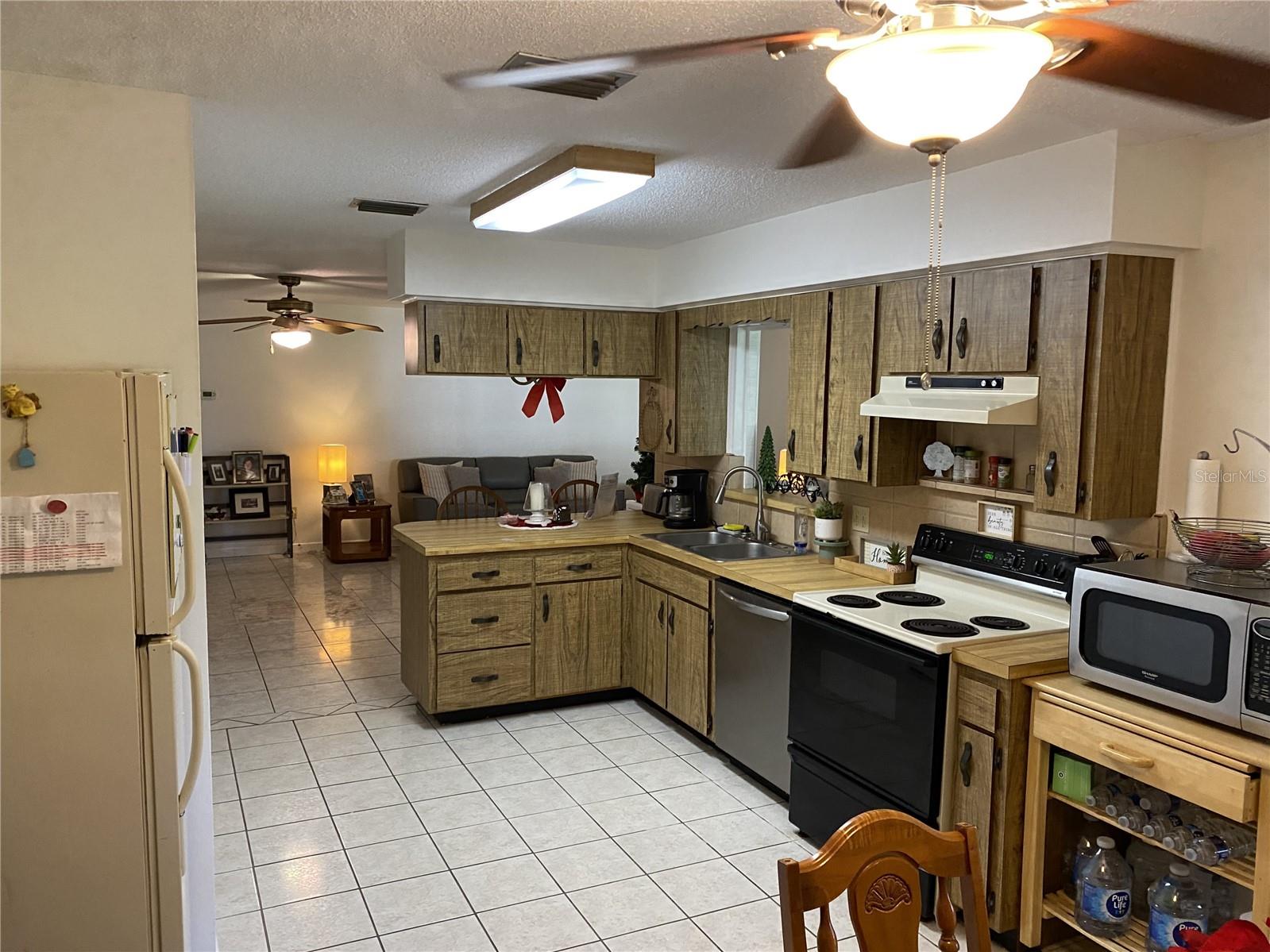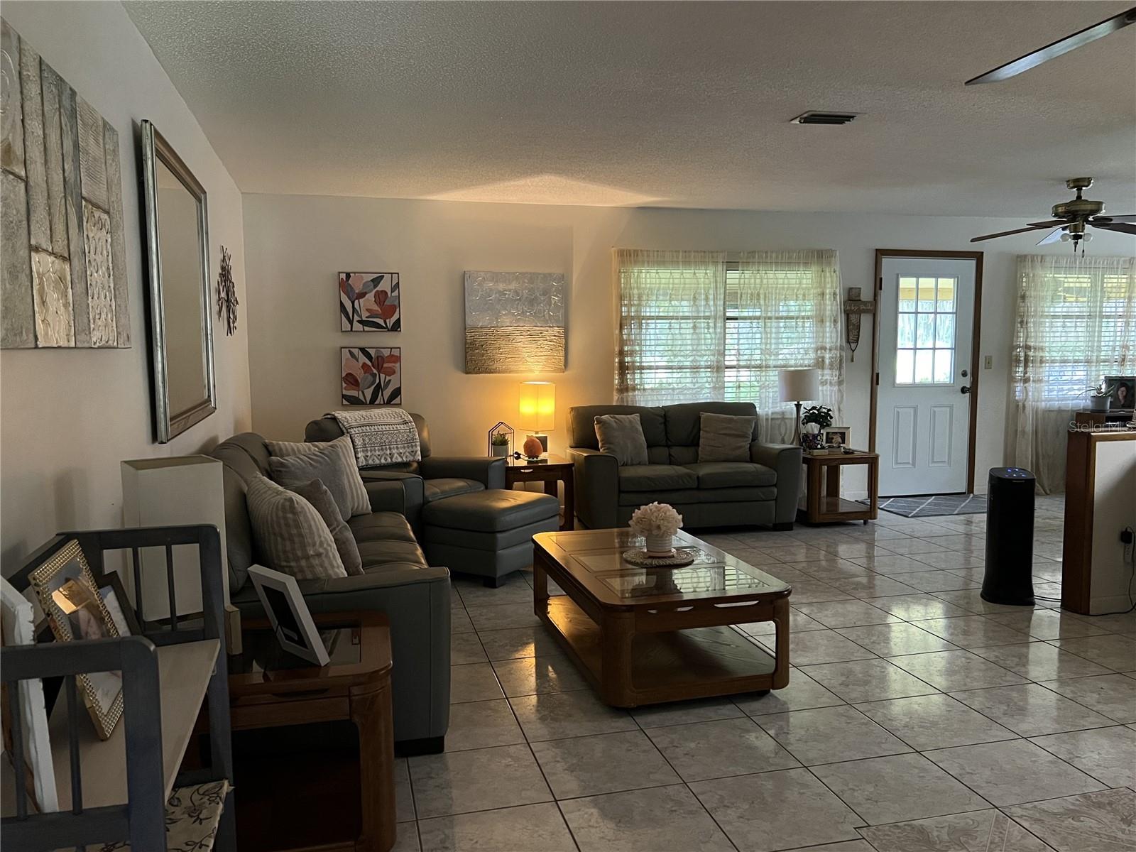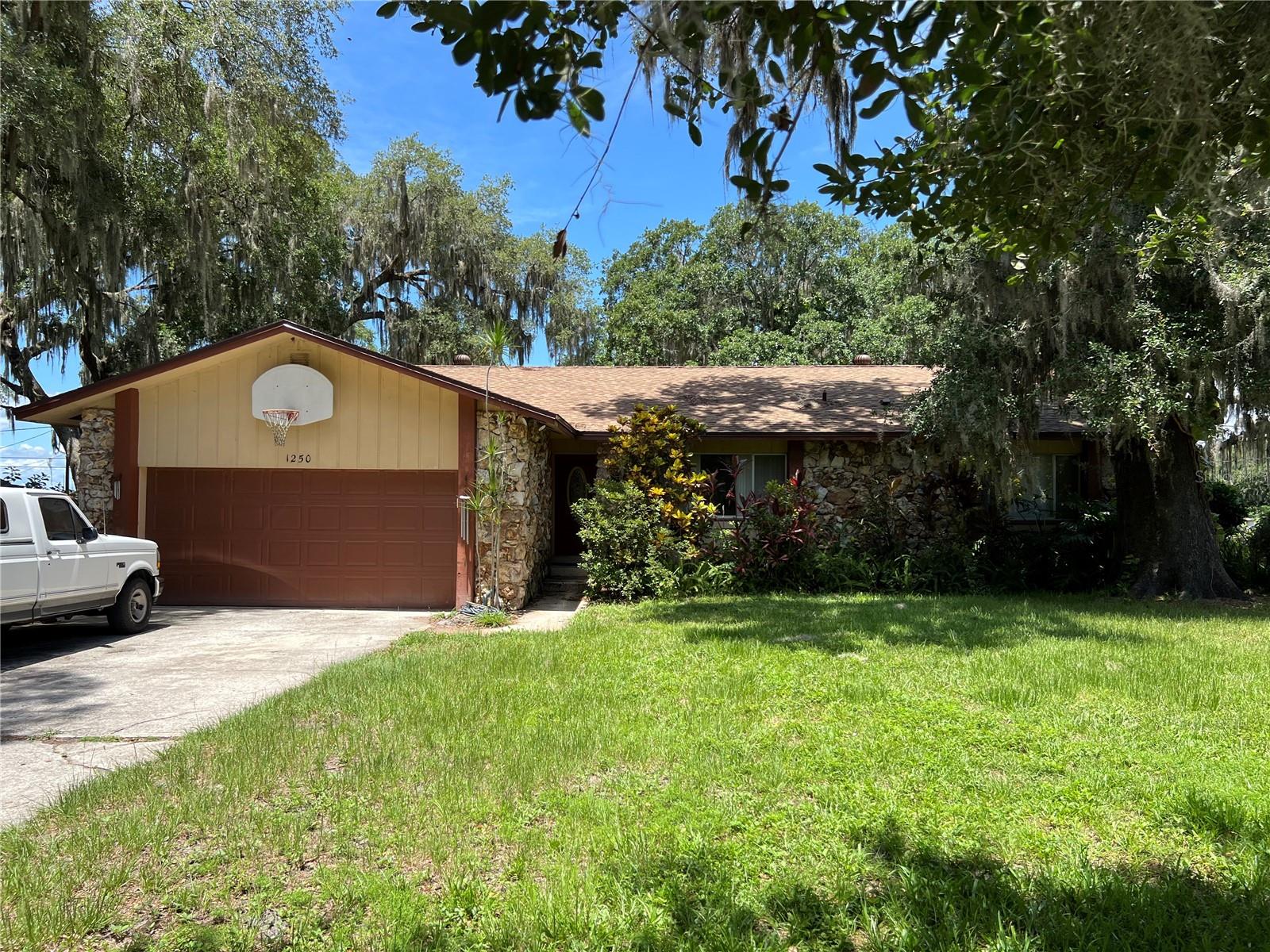 Very nice home off the beaten path, but close to everything. There is no HOA here and taxes are low. This well-cared-for home is tucked away in the hidden subdivision of Moss Oaks. There is easy-maintenance ceramic tile flooring throughout, and the interior has been freshly painted. Upon entering the home, see the formal living room to your right. If you need an office at the the front of the house, this room is perfect. Further on, the view opens up to the heart of the home, an open floor plan with dining room, kitchen and family room. All kitchen appliances will stay, including the washer and dryer, which are in the laundry area in the oversized 2-car garage. The primary suite has a large bedroom, walk-in closet, and private bath, which has a large and convenient step-in shower. The two remaining bedrooms share the second full bath. Bedroom 2 has a ton of storage in the double closet that runs the length of the room. The back porch is screened, with ceiling fans, to enjoy the Florida weather in all seasons, with view of the spacious back yard, and Fish Lake in the distance, very relaxing after a long day. The roof was replaced in 2023, and the home generator will stay. The home is on well and septic, to save you money on the water bill. The electric bill averages about $180, due to the majestic oak trees. There is a mango and an avocado tree out front. You will love coming home to this peaceful haven. There is close access to two FL turnpike exits, so you have easy access to Orlando, the theme parks, and Orlando Int'l Airport. A short drive to the east brings you to Cocoa Beach and the Atlantic Ocean, go west to Tampa/St. Pete and the Gulf of Mexico, south to Miami and Key West. Live the Florida lifestyle, right here in the heart of Central Florida.