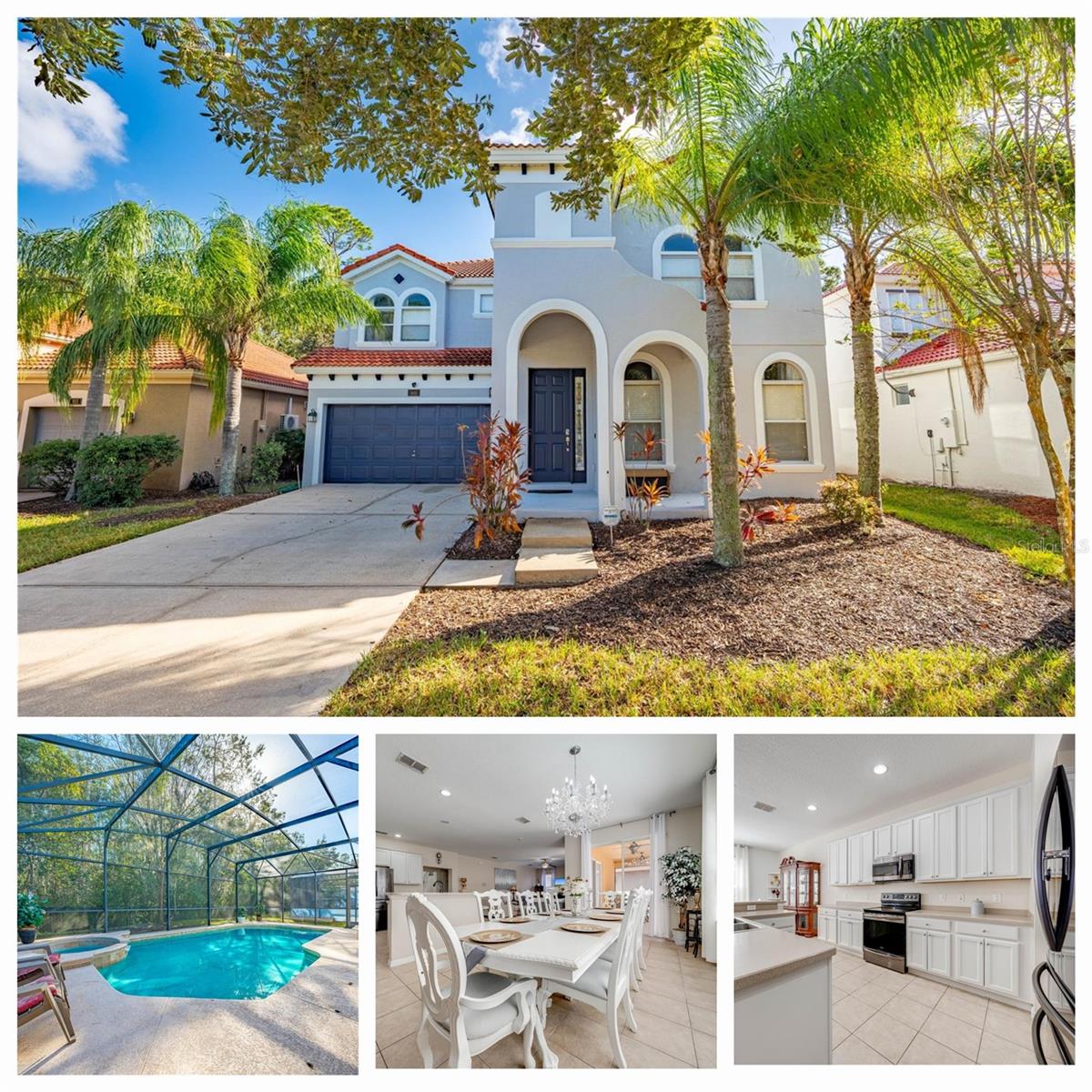 RESORT HOME IN BELLAVIDA.. This home featuring a private heated pool and no rear neighbors, with 6 bedrooms and 5.5 baths. Fully furnished vacation home. Updated luxury vinyl flooring upstairs, this home has NO CARPET. Open-concept first-floor formal living and dining area. The beautiful kitchen includes a Butler's pantry, stone countertops, recessed lighting, all appliances, and a closet pantry. Relax in the evenings by the heated pool and spa, and enjoy the large family room with a view of the pool. The community offers exceptional amenities such as RESORT STYLE POOL, cyber café, game room, basketball and volleyball courts, a gathering room with TV, walking trails, picnic area, a tot lot playground, and bocce ball. Located just 8 miles from Disney and close to shopping, banking, restaurants, and entertainment, this home is perfect for those seeking convenience and luxury. The HOA includes cable, internet, trash, 24-hour manned security, and lawn maintenance. Home is zoned for short-term rentals, long-term rentals, second home or primary residence. Home is located in Flood Zone X, NO flood insurance required! Don’t miss the opportunity to own your piece of paradise!
