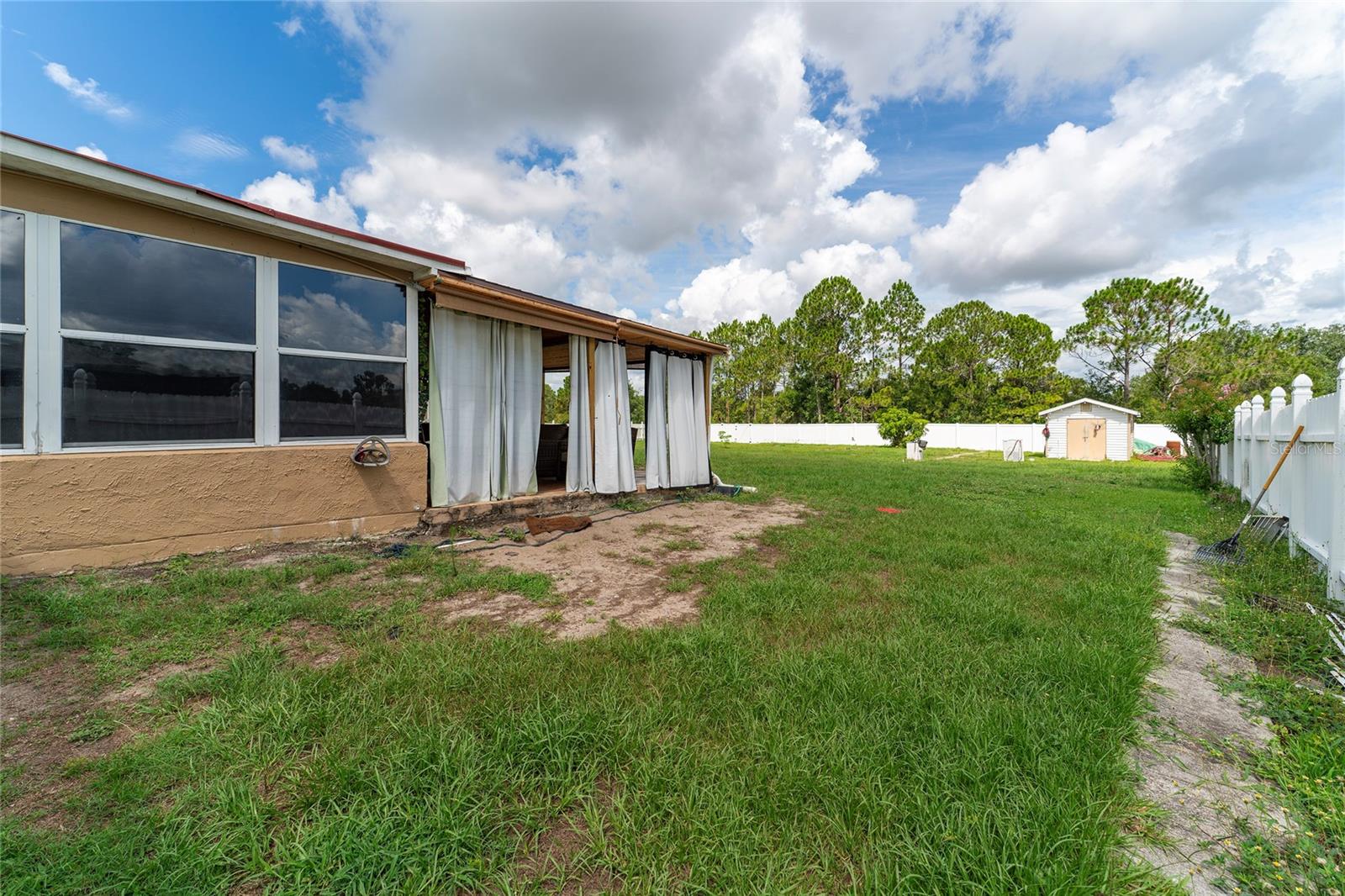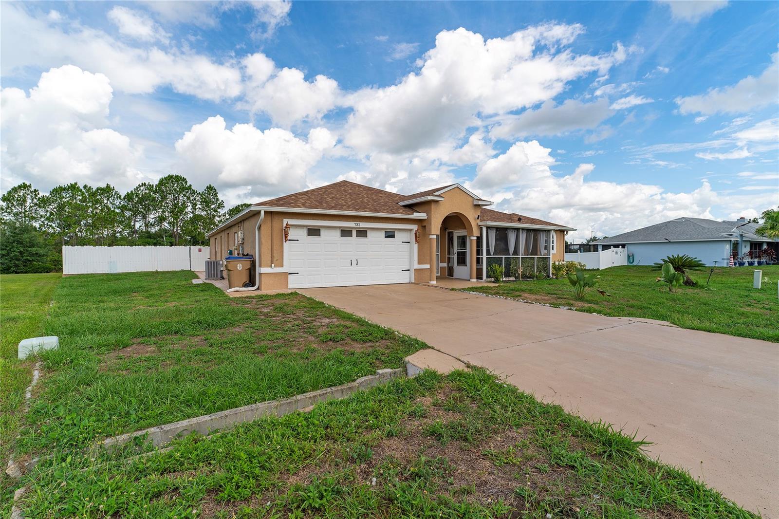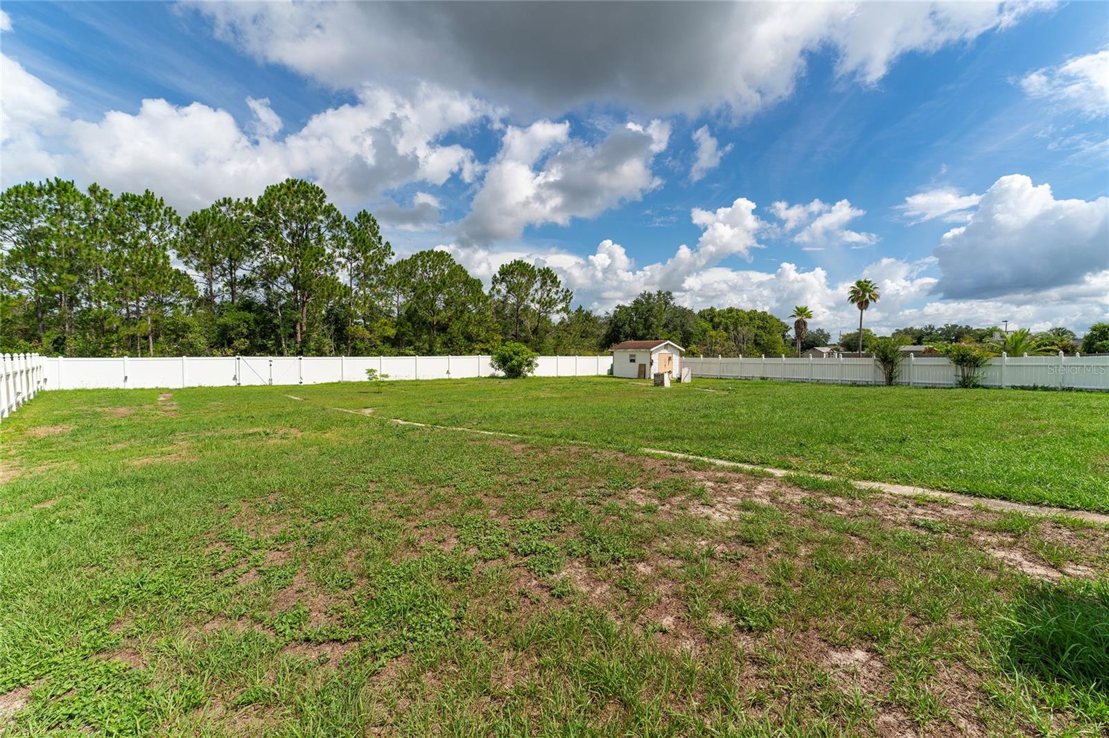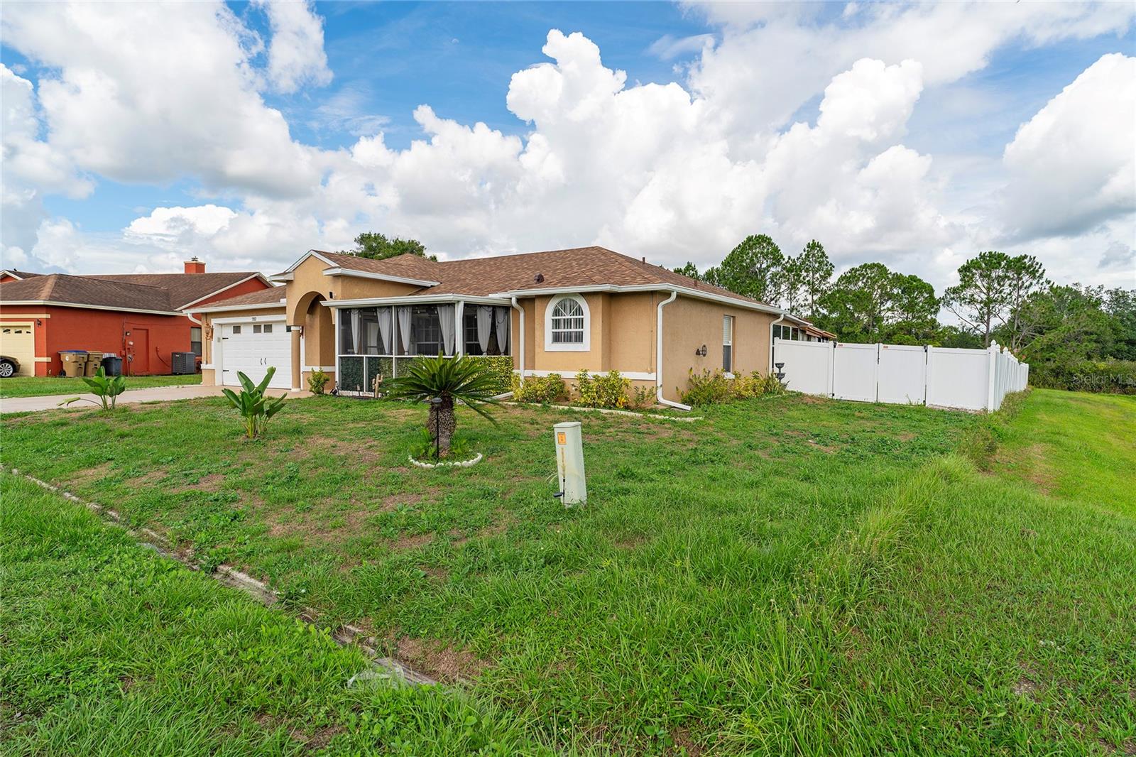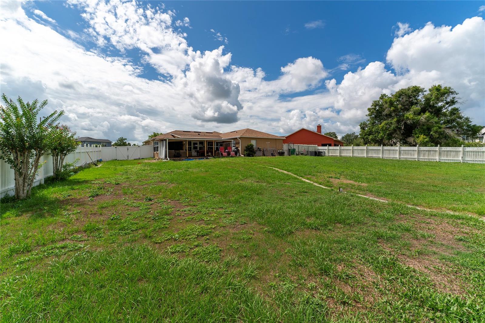 Back on the market. Financing fell through. Property appraised asking price. This 3-bedroom, 2-bath home has a Brand New Roof, Solar Panels, A/C 2018 and newer appliances. Also it boasts a spacious tiled covered porch, an open patio, and over half an acre of fully fenced backyard with a view of the woods. It offers proximity to schools, libraries, shopping, dining, and public transport. The home features block construction, ceramic tile, wood, and laminate floors within a light and airy open floor plan. The living and dining areas merge seamlessly, while the kitchen sports solid surface countertops, a closet pantry, and a breakfast bar, all overlooking the family room and porch. The bedrooms are generously sized, and the expansive backyard is ideal for a pool, garden, or other recreational pursuits. A powered workshop is situated at the property's rear. Nearby, the Poinciana Town Center and Poinciana Place Shopping Center provide ample shopping and dining options. Recreational facilities abound, with numerous playgrounds and sports fields. The Poinciana Medical Center and Poinciana Parkway has convenient access to I-4, Disney World, Universal Studios, and the Orlando Airport. This is a fantastic opportunity to own a delightful home.