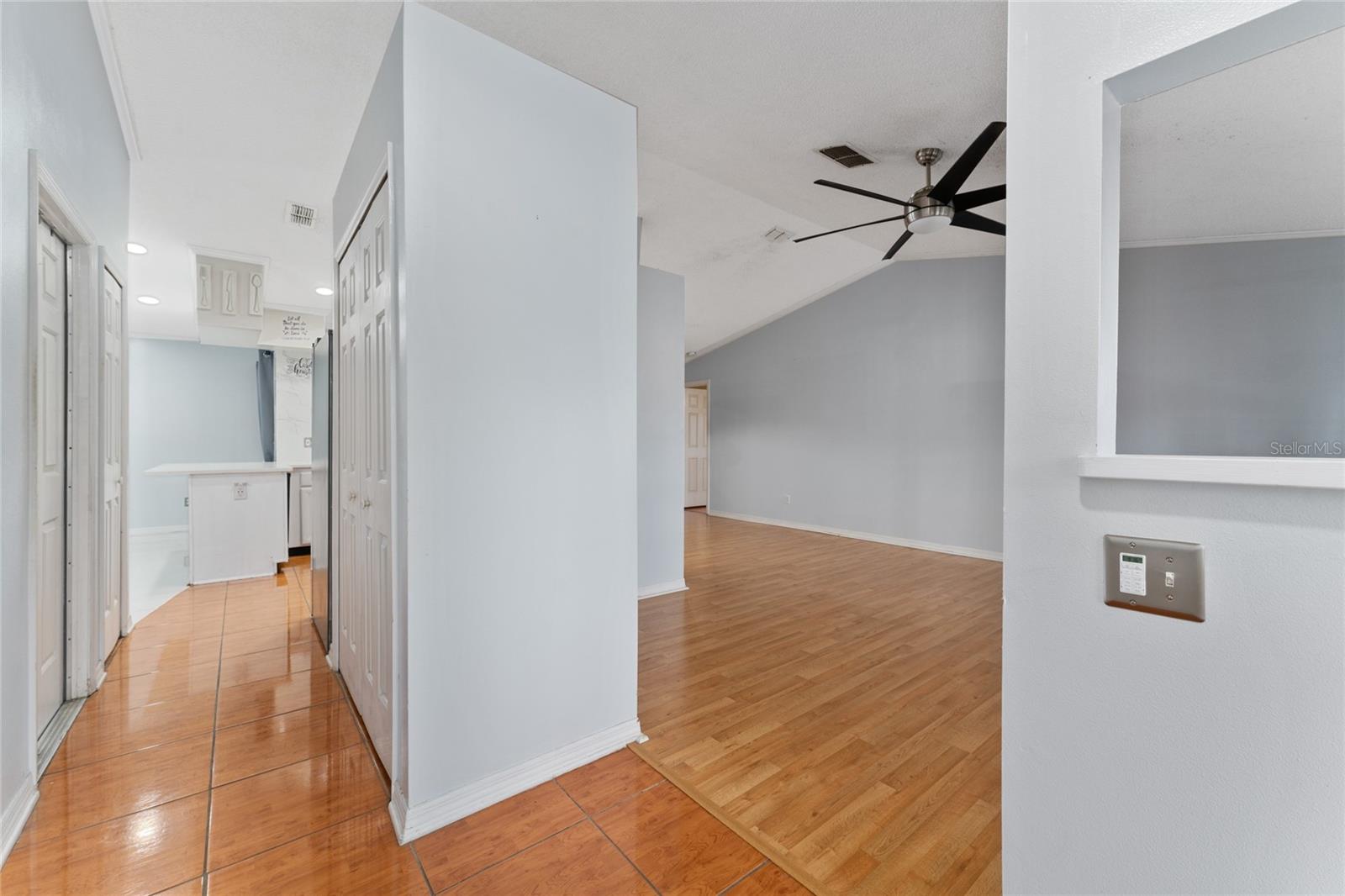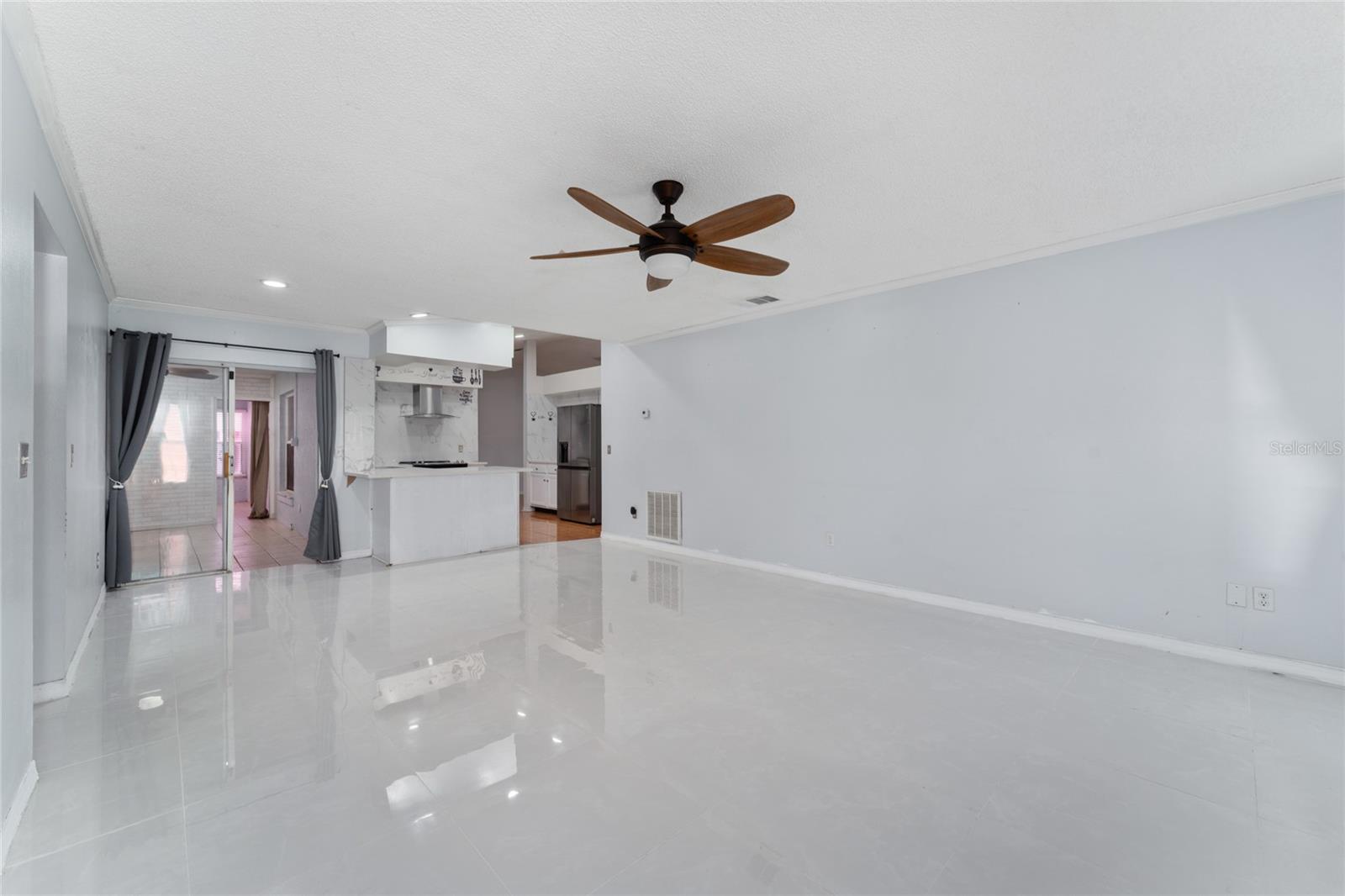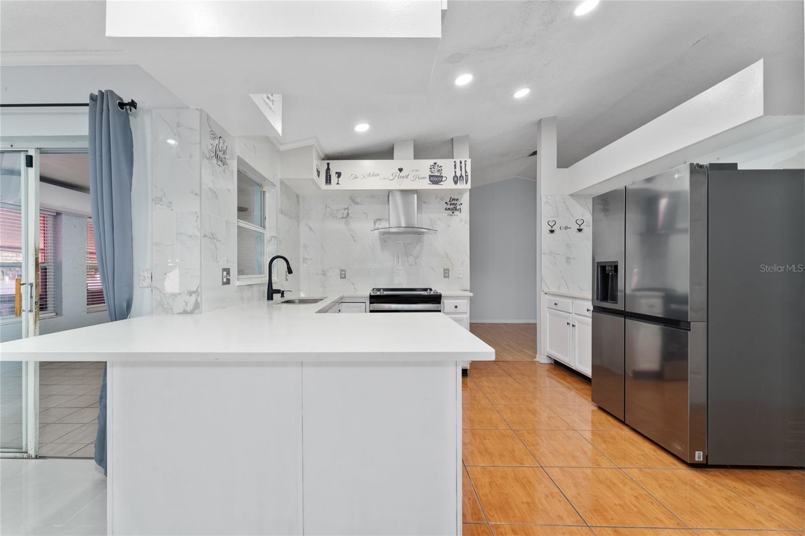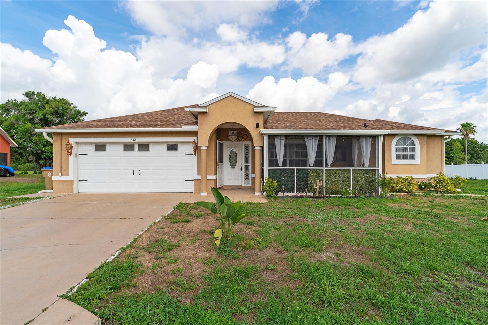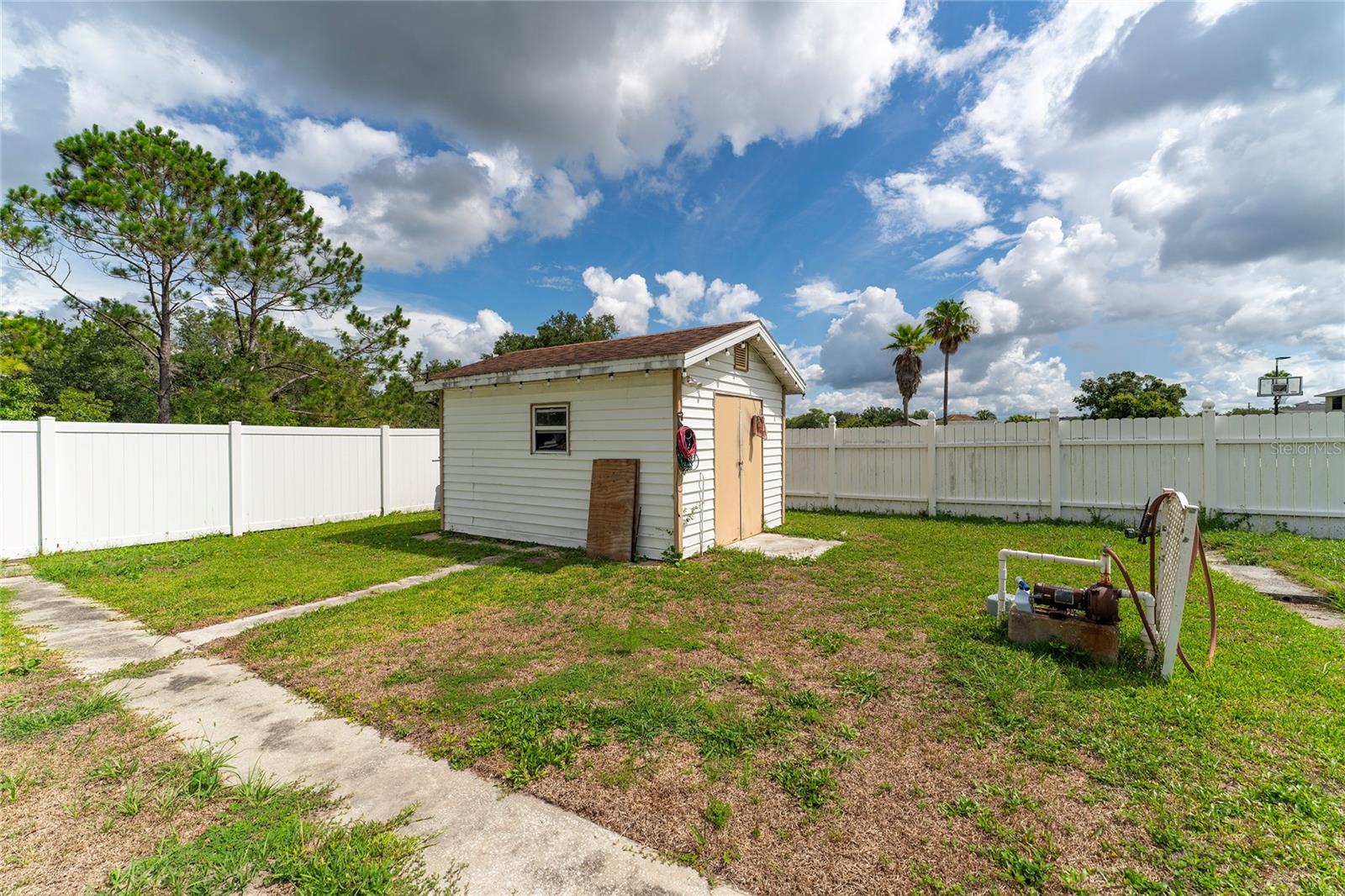 Back on the market. Financing fell through. Property appraised asking price. This 3-bedroom, 2-bath home has a Brand New Roof, Solar Panels, A/C 2018 and newer appliances. Also it boasts a spacious tiled covered porch, an open patio, and over half an acre of fully fenced backyard with a view of the woods. It offers proximity to schools, libraries, shopping, dining, and public transport. The home features block construction, ceramic tile, wood, and laminate floors within a light and airy open floor plan. The living and dining areas merge seamlessly, while the kitchen sports solid surface countertops, a closet pantry, and a breakfast bar, all overlooking the family room and porch. The bedrooms are generously sized, and the expansive backyard is ideal for a pool, garden, or other recreational pursuits. A powered workshop is situated at the property's rear. Nearby, the Poinciana Town Center and Poinciana Place Shopping Center provide ample shopping and dining options. Recreational facilities abound, with numerous playgrounds and sports fields. The Poinciana Medical Center and Poinciana Parkway has convenient access to I-4, Disney World, Universal Studios, and the Orlando Airport. This is a fantastic opportunity to own a delightful home.