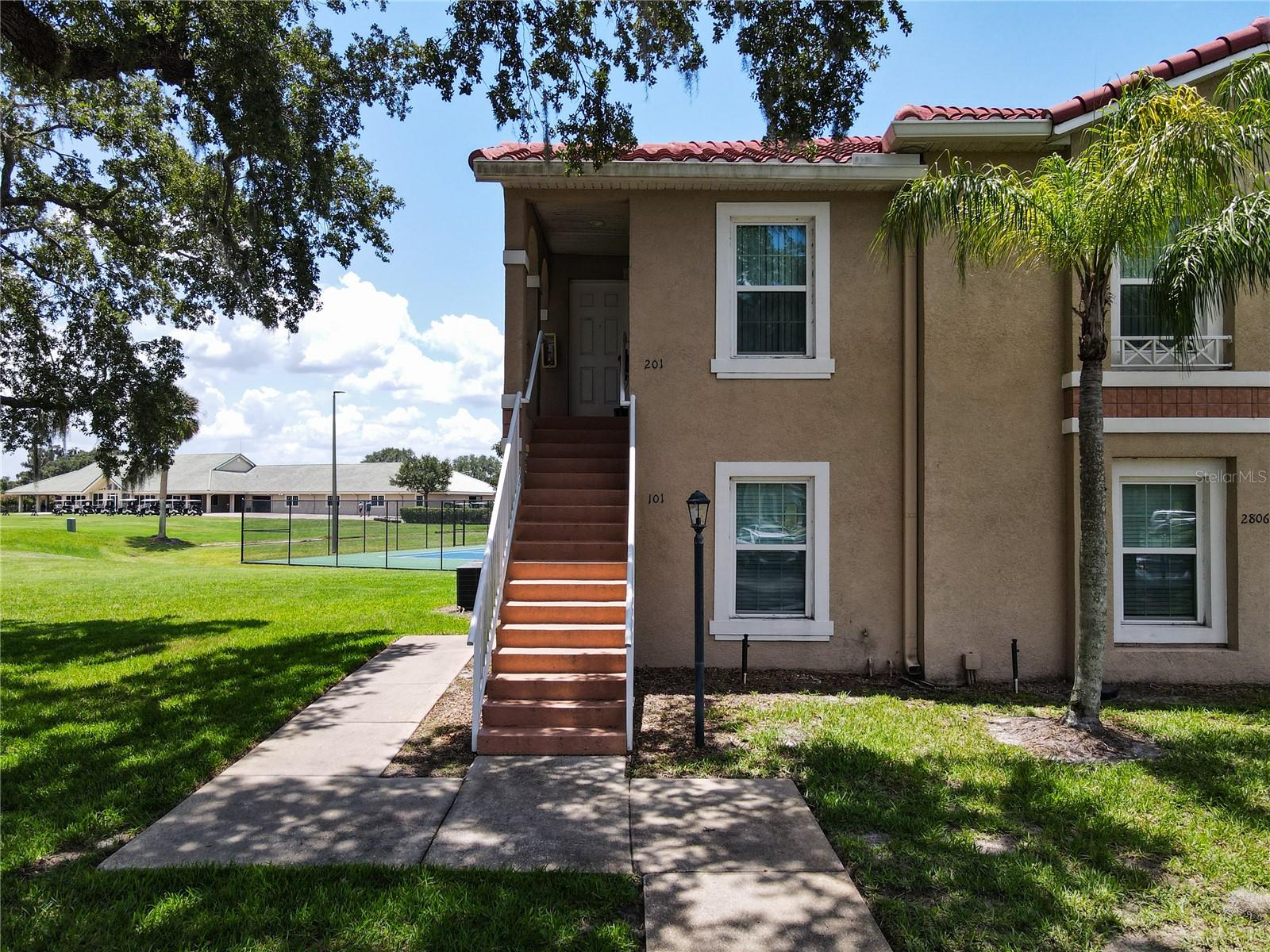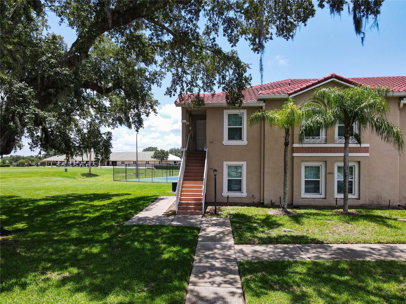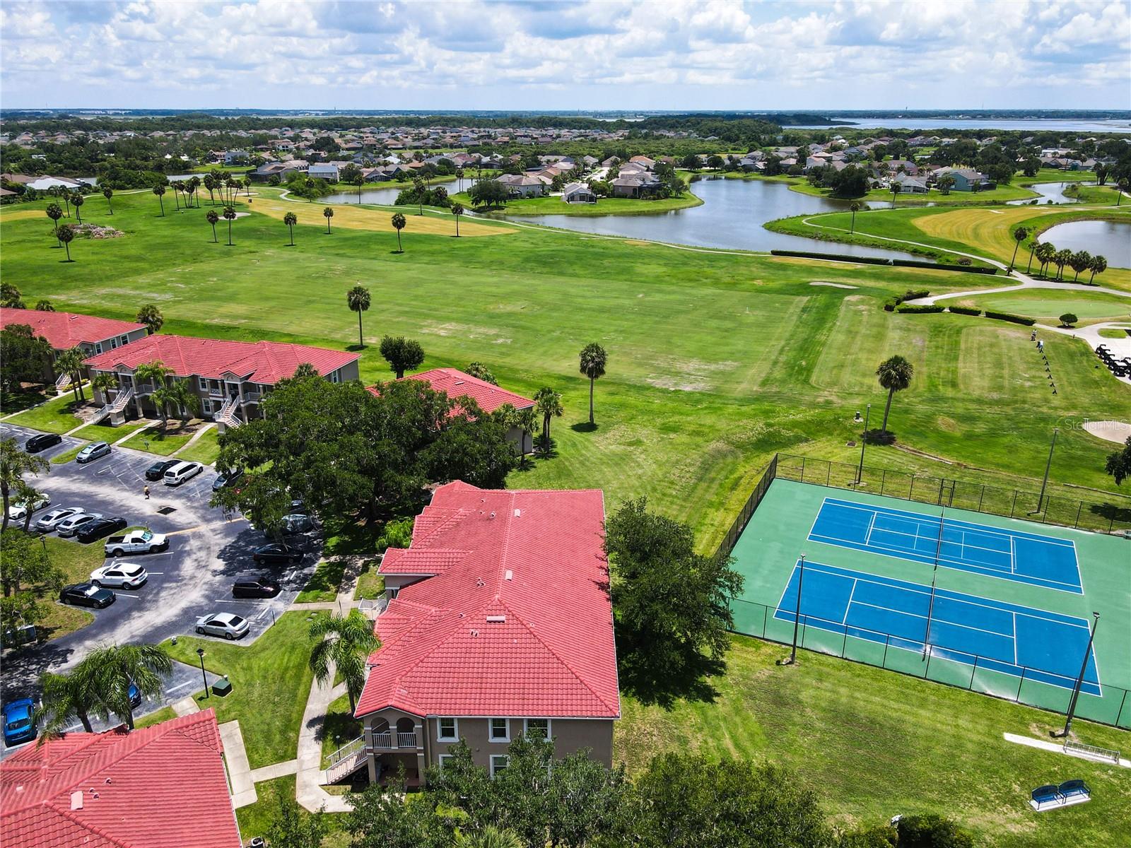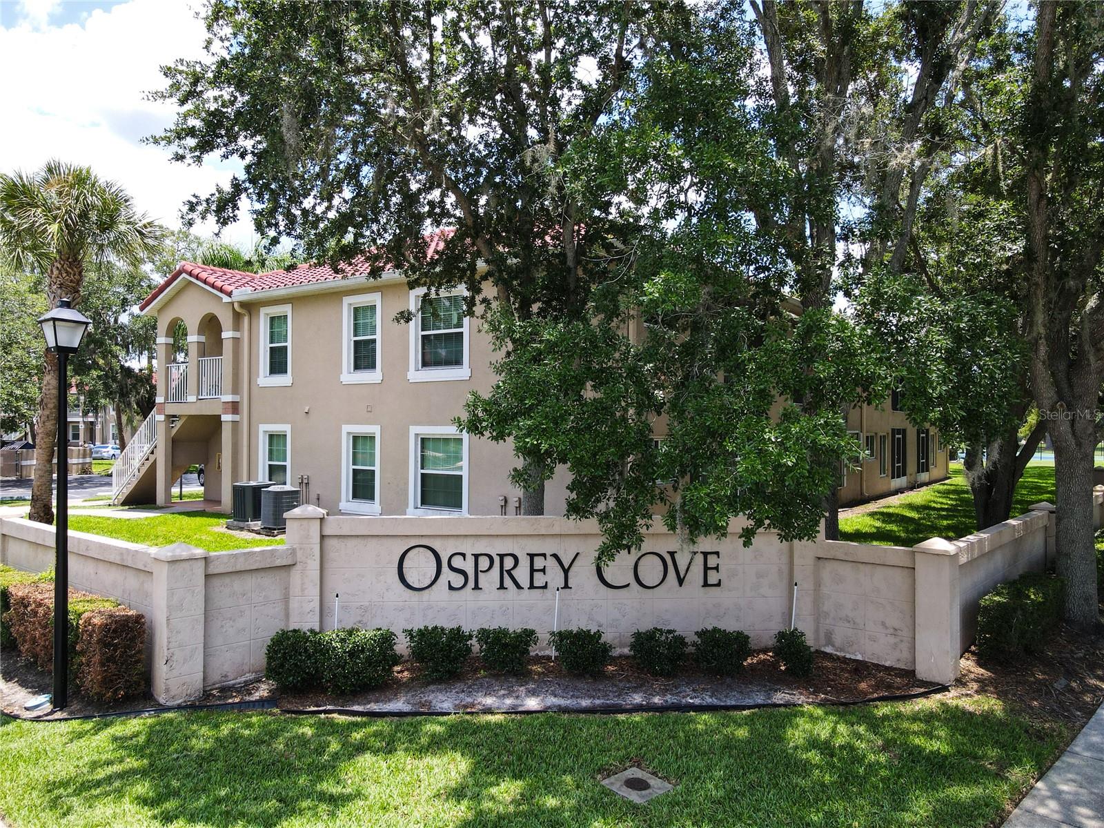 This is your opportunity of owning amazing investment property or your first Home!!! Discover relaxed living in this stunning 1st floor cornet lot unit featuring 3 bedroom, 2 bathroom condo inside the community of Osprey Cove. This home is elegantly laid out with new solid vinyl wood floors throughout, creating a sleek and cohesive look. The interior boasts vaulted high ceilings and open floor plan, offering a spacious and airy feel that is both inviting and functional. A nice kitchen with new stainless steel stove, microwave, dishwasher, new ceiling fans in the master bedroom and a newer AC UNIT. The large living area is filled with natural light that leads to a serene back porch with a storage room that presents a stunning view of a meticulously maintained golf course and Tennis courts, perfect for tranquil mornings and peaceful evening retreats watching the sunset. The master suite offers a walk-in closet, double sinks in the bathroom and a remodeled shower with beautiful tile. Enjoy the convenience of an in-unit laundry, a community pool, tennis courts, and the golf course at The Oaks. This property offers a unique blend of lifestyle, comfort and lifestyle in Kissimmee, Ideally located near shopping and dining, making it a perfect choice for those seeking sophistication and convenience.