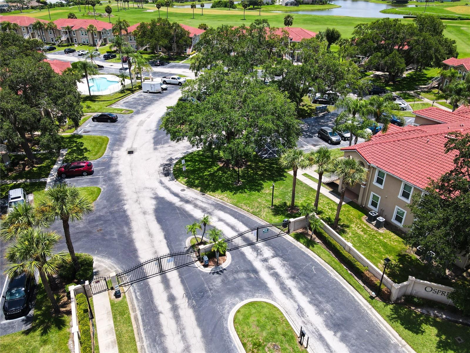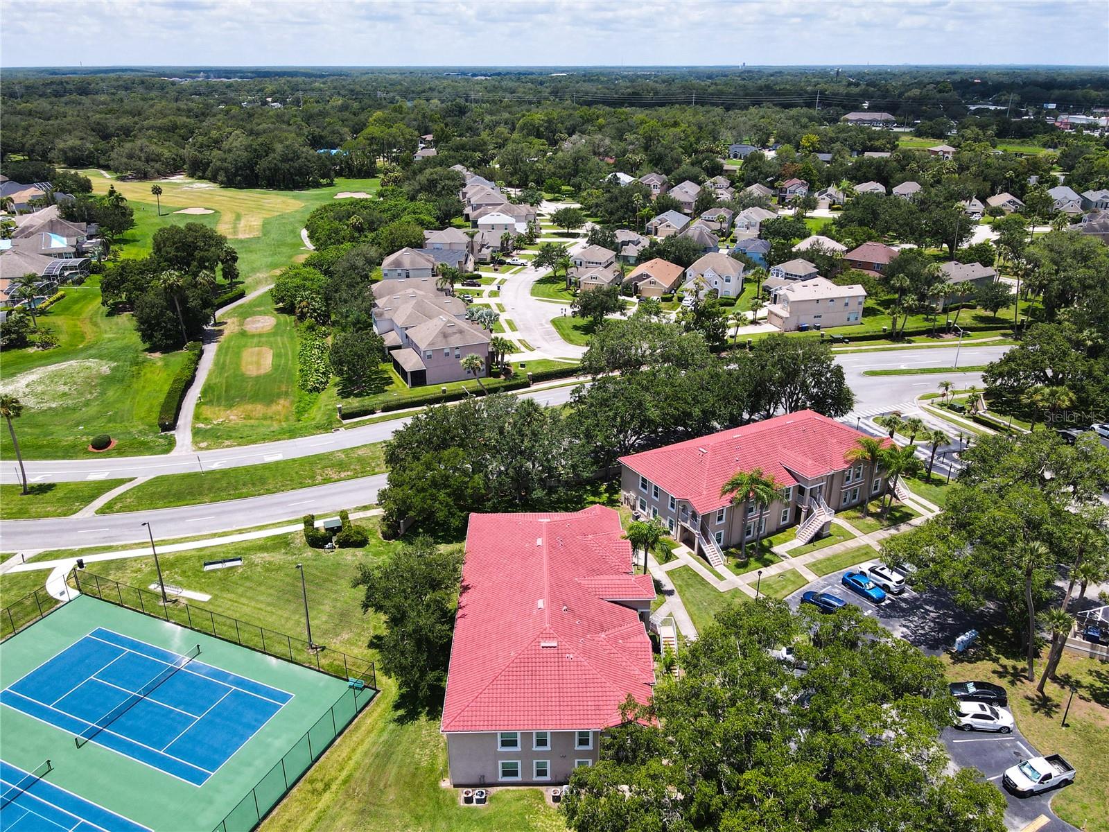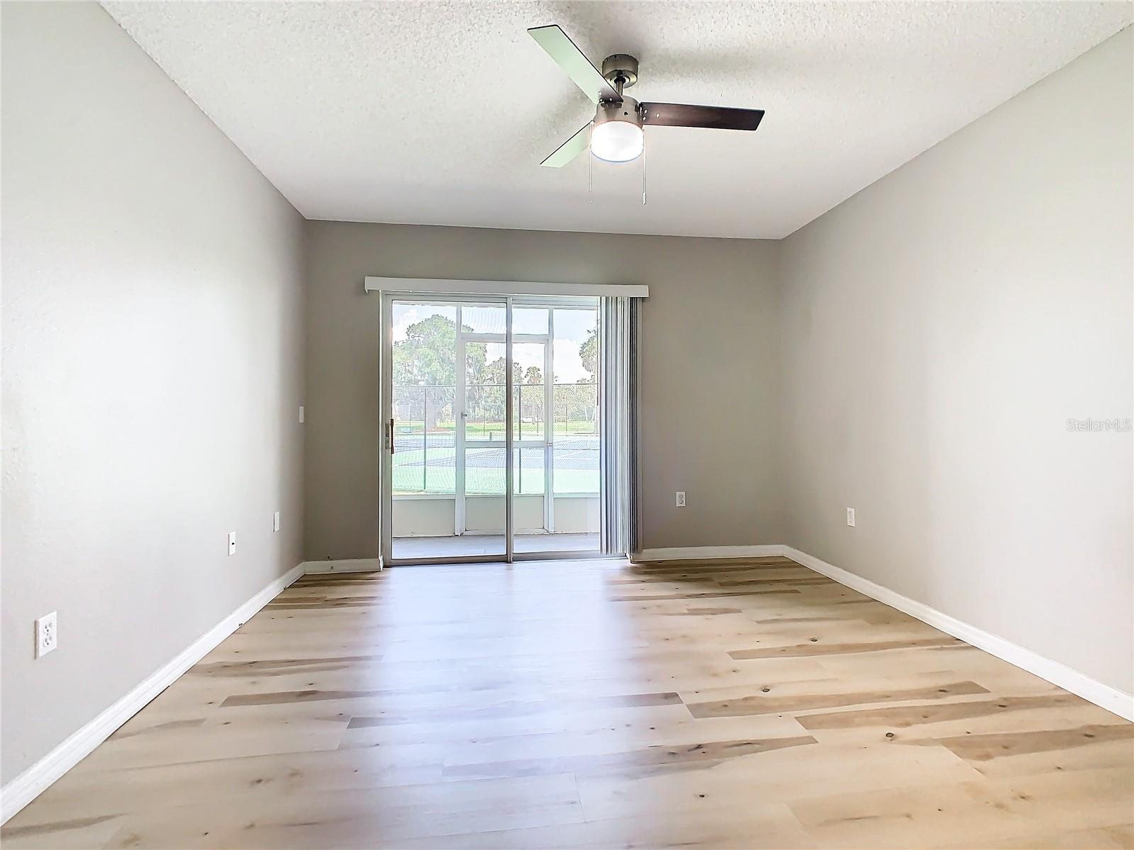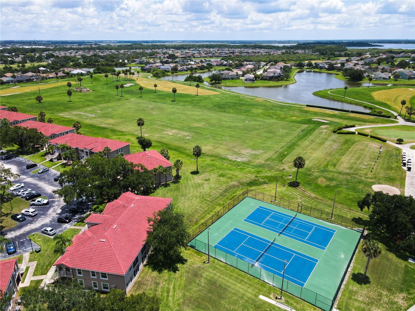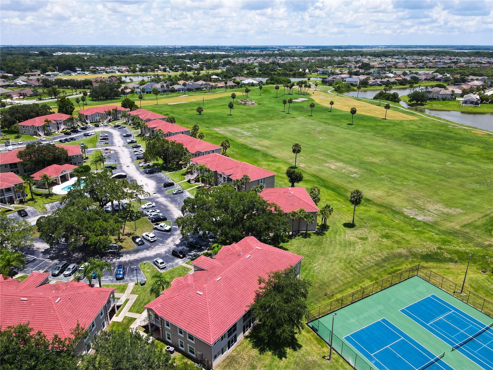 This is your opportunity of owning amazing investment property or your first Home!!! Discover relaxed living in this stunning 1st floor cornet lot unit featuring 3 bedroom, 2 bathroom condo inside the community of Osprey Cove. This home is elegantly laid out with new solid vinyl wood floors throughout, creating a sleek and cohesive look. The interior boasts vaulted high ceilings and open floor plan, offering a spacious and airy feel that is both inviting and functional. A nice kitchen with new stainless steel stove, microwave, dishwasher, new ceiling fans in the master bedroom and a newer AC UNIT. The large living area is filled with natural light that leads to a serene back porch with a storage room that presents a stunning view of a meticulously maintained golf course and Tennis courts, perfect for tranquil mornings and peaceful evening retreats watching the sunset. The master suite offers a walk-in closet, double sinks in the bathroom and a remodeled shower with beautiful tile. Enjoy the convenience of an in-unit laundry, a community pool, tennis courts, and the golf course at The Oaks. This property offers a unique blend of lifestyle, comfort and lifestyle in Kissimmee, Ideally located near shopping and dining, making it a perfect choice for those seeking sophistication and convenience.