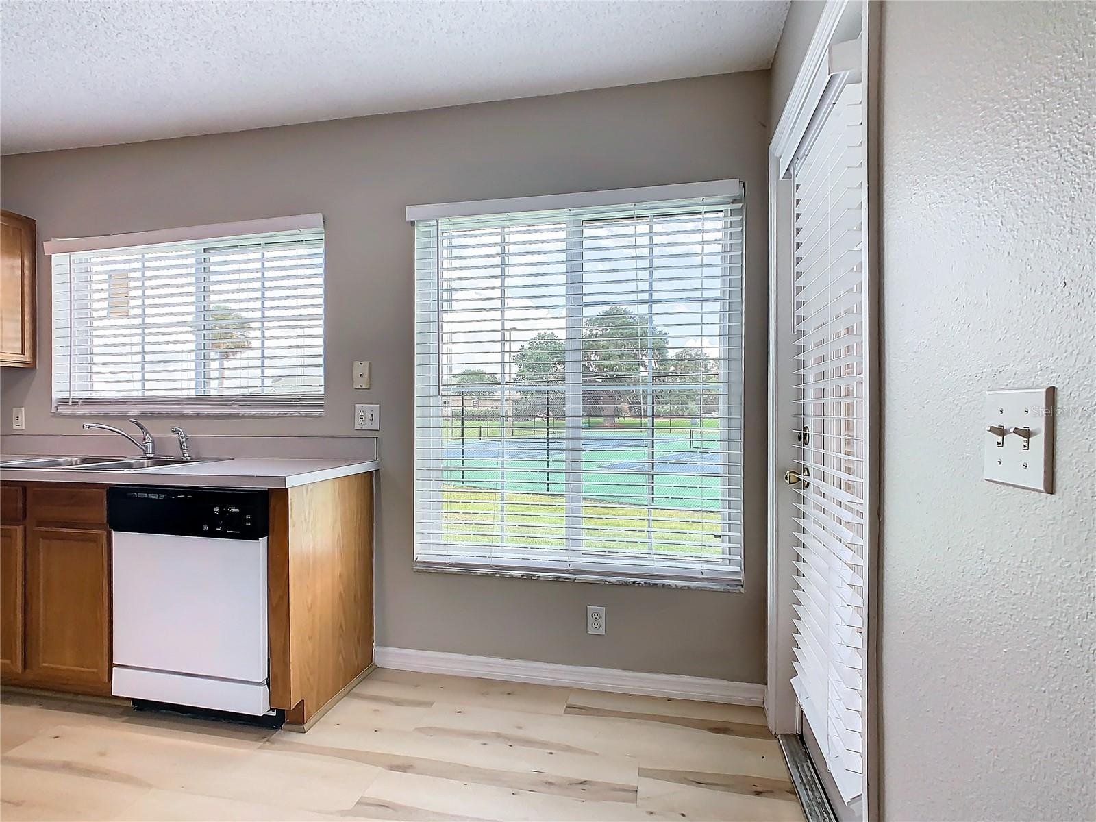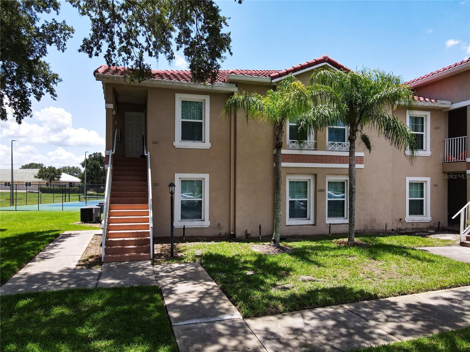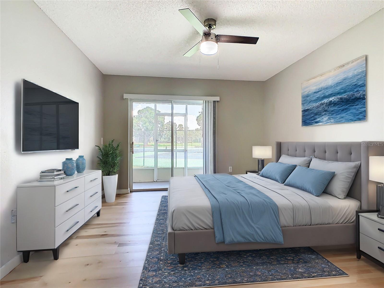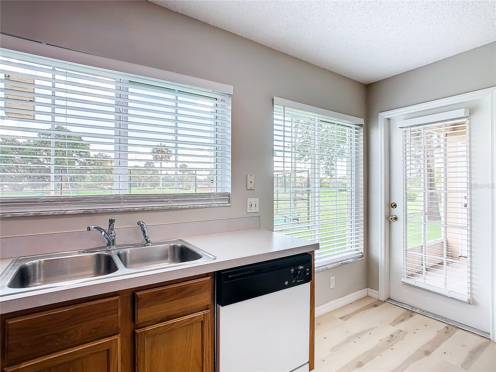 This is your opportunity of owning amazing investment property or your first Home!!! Discover relaxed living in this stunning 1st floor cornet lot unit featuring 3 bedroom, 2 bathroom condo inside the community of Osprey Cove. This home is elegantly laid out with new solid vinyl wood floors throughout, creating a sleek and cohesive look. The interior boasts vaulted high ceilings and open floor plan, offering a spacious and airy feel that is both inviting and functional. A nice kitchen with new stainless steel stove, microwave, dishwasher, new ceiling fans in the master bedroom and a newer AC UNIT. The large living area is filled with natural light that leads to a serene back porch with a storage room that presents a stunning view of a meticulously maintained golf course and Tennis courts, perfect for tranquil mornings and peaceful evening retreats watching the sunset. The master suite offers a walk-in closet, double sinks in the bathroom and a remodeled shower with beautiful tile. Enjoy the convenience of an in-unit laundry, a community pool, tennis courts, and the golf course at The Oaks. This property offers a unique blend of lifestyle, comfort and lifestyle in Kissimmee, Ideally located near shopping and dining, making it a perfect choice for those seeking sophistication and convenience.