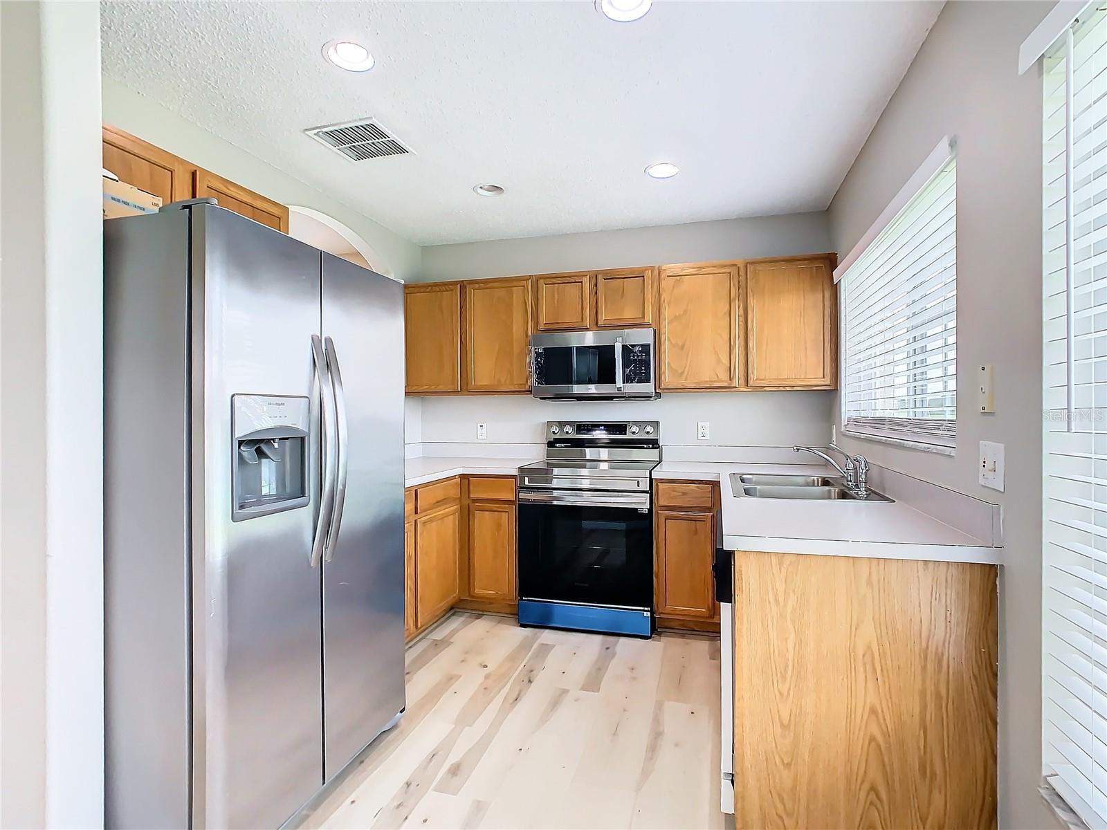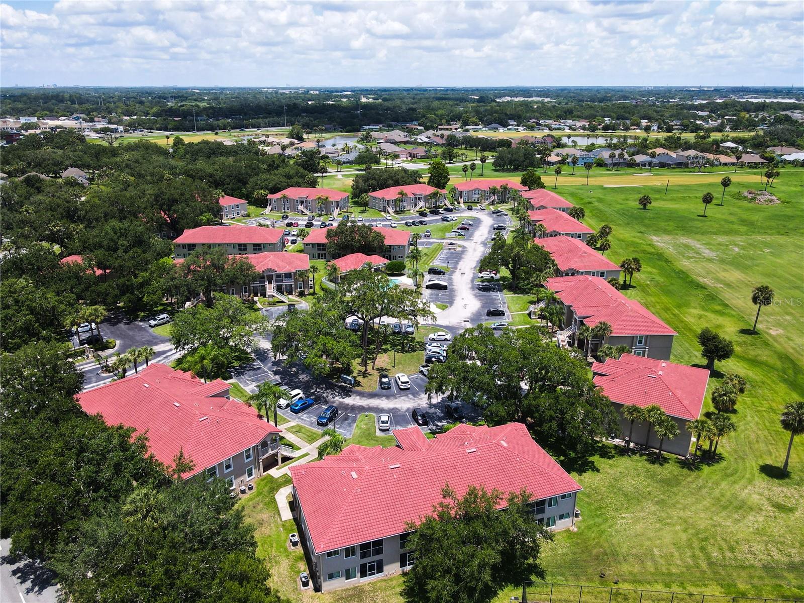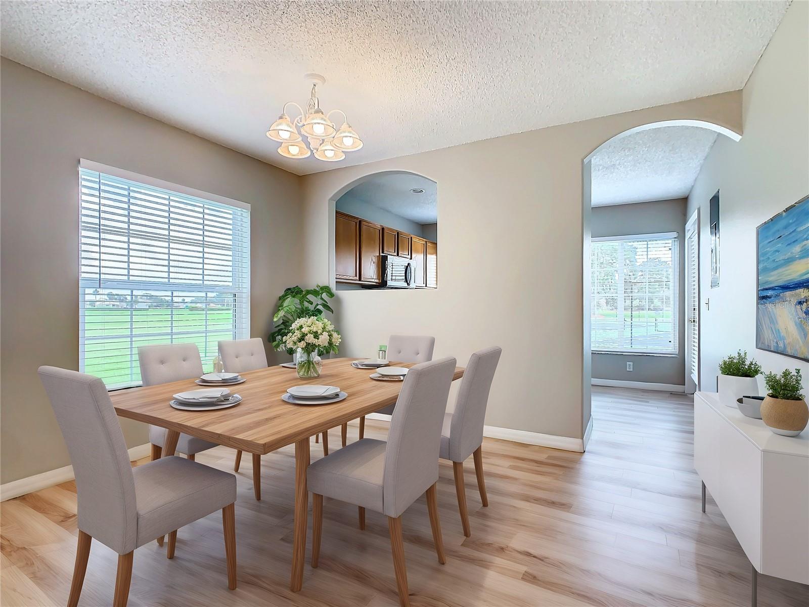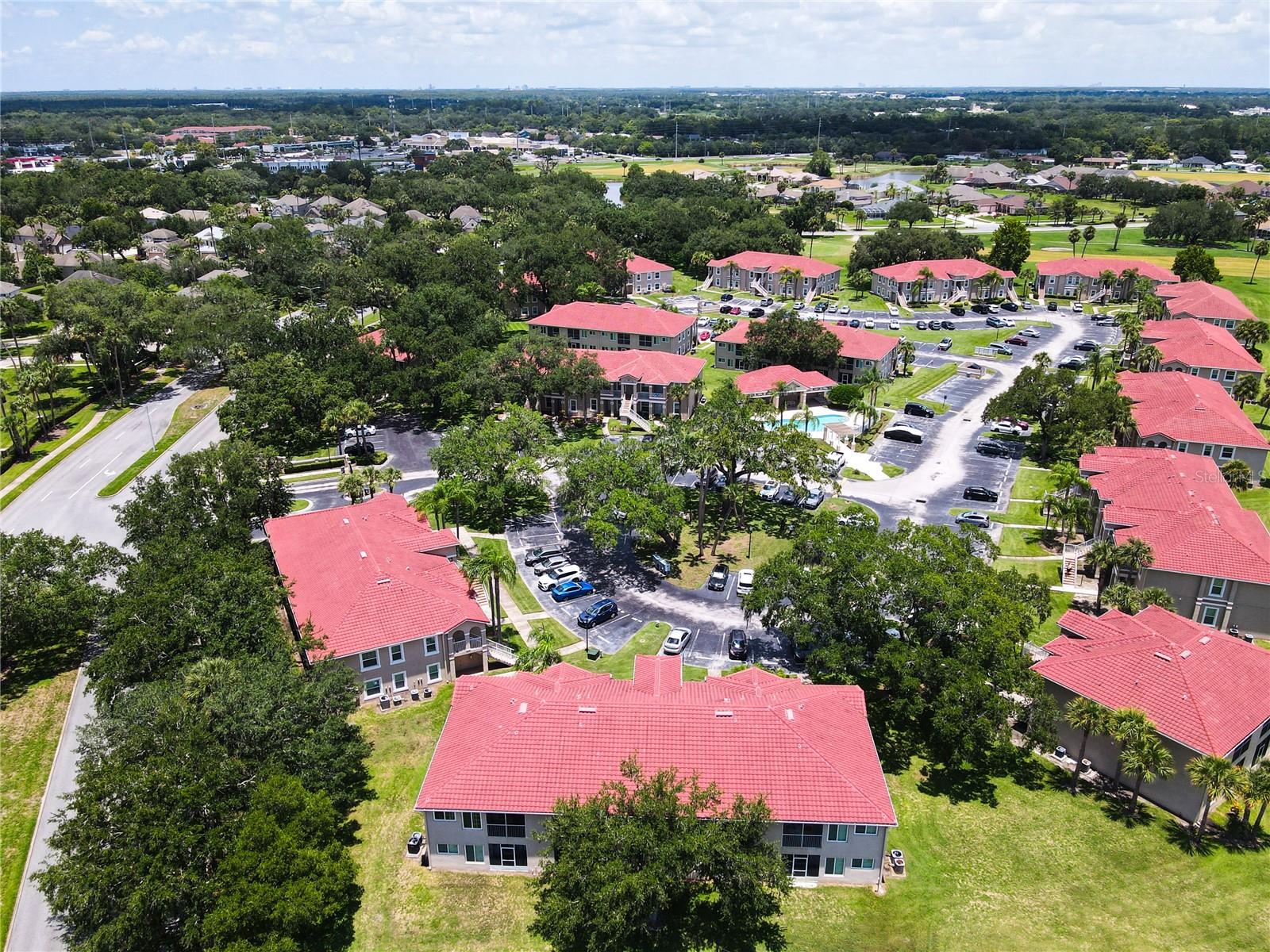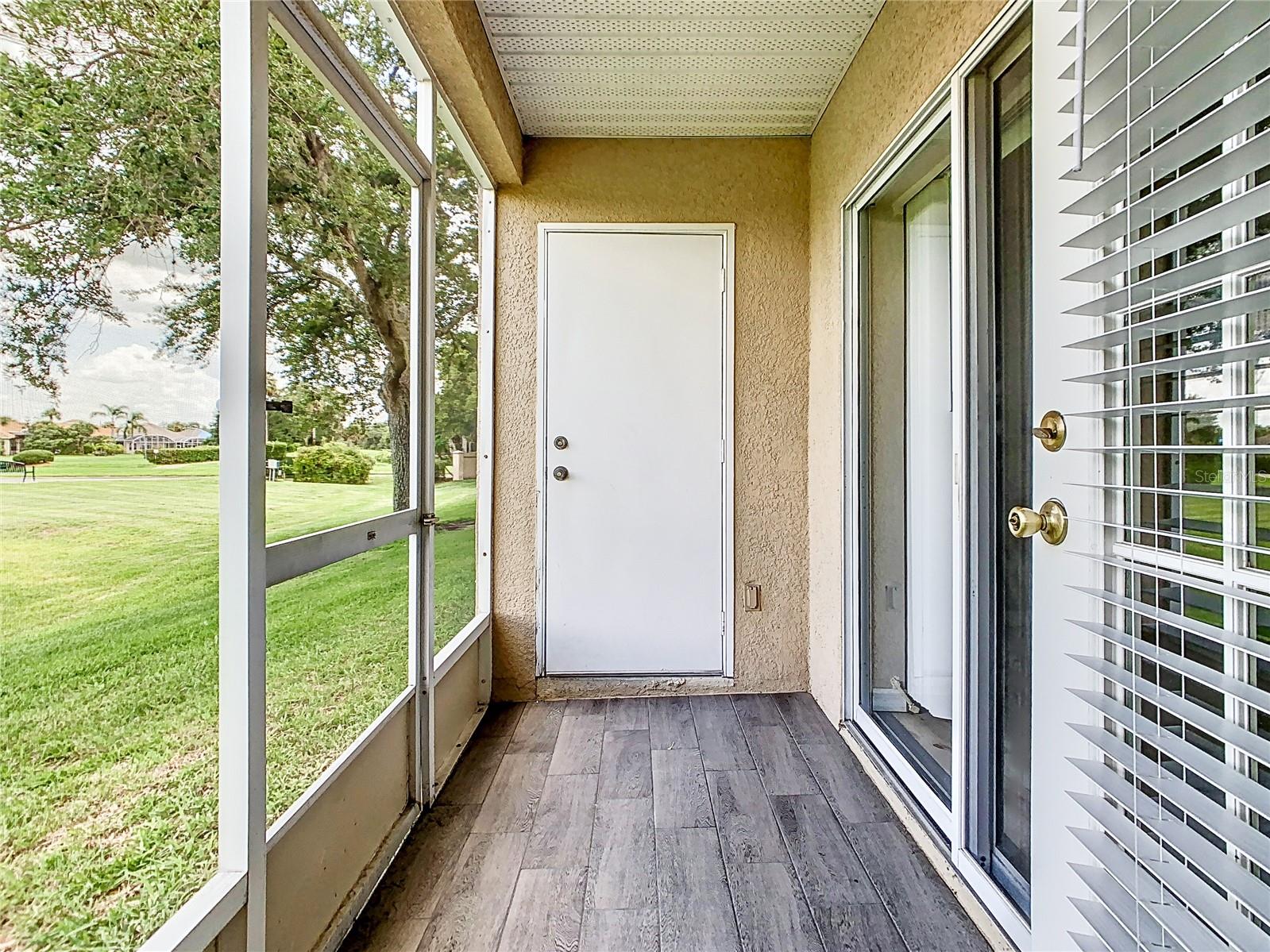 This is your opportunity of owning amazing investment property or your first Home!!! Discover relaxed living in this stunning 1st floor cornet lot unit featuring 3 bedroom, 2 bathroom condo inside the community of Osprey Cove. This home is elegantly laid out with new solid vinyl wood floors throughout, creating a sleek and cohesive look. The interior boasts vaulted high ceilings and open floor plan, offering a spacious and airy feel that is both inviting and functional. A nice kitchen with new stainless steel stove, microwave, dishwasher, new ceiling fans in the master bedroom and a newer AC UNIT. The large living area is filled with natural light that leads to a serene back porch with a storage room that presents a stunning view of a meticulously maintained golf course and Tennis courts, perfect for tranquil mornings and peaceful evening retreats watching the sunset. The master suite offers a walk-in closet, double sinks in the bathroom and a remodeled shower with beautiful tile. Enjoy the convenience of an in-unit laundry, a community pool, tennis courts, and the golf course at The Oaks. This property offers a unique blend of lifestyle, comfort and lifestyle in Kissimmee, Ideally located near shopping and dining, making it a perfect choice for those seeking sophistication and convenience.