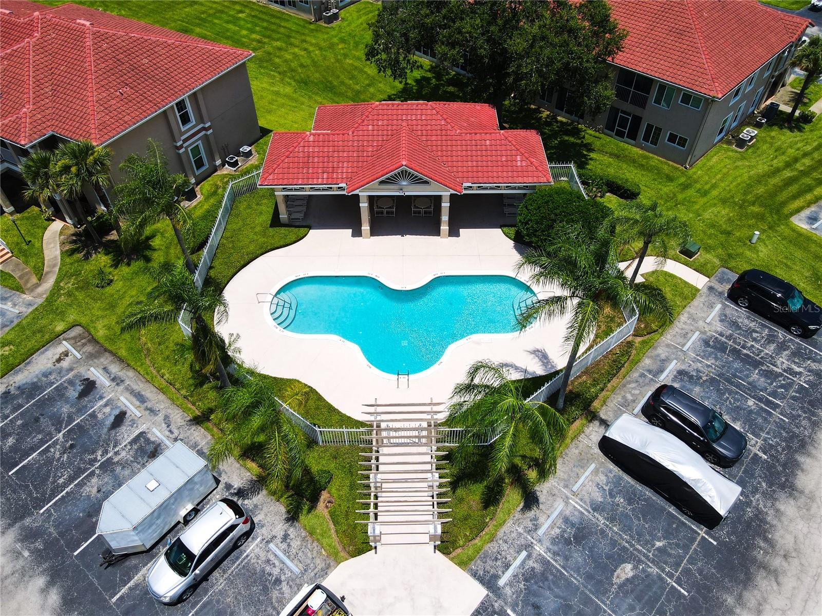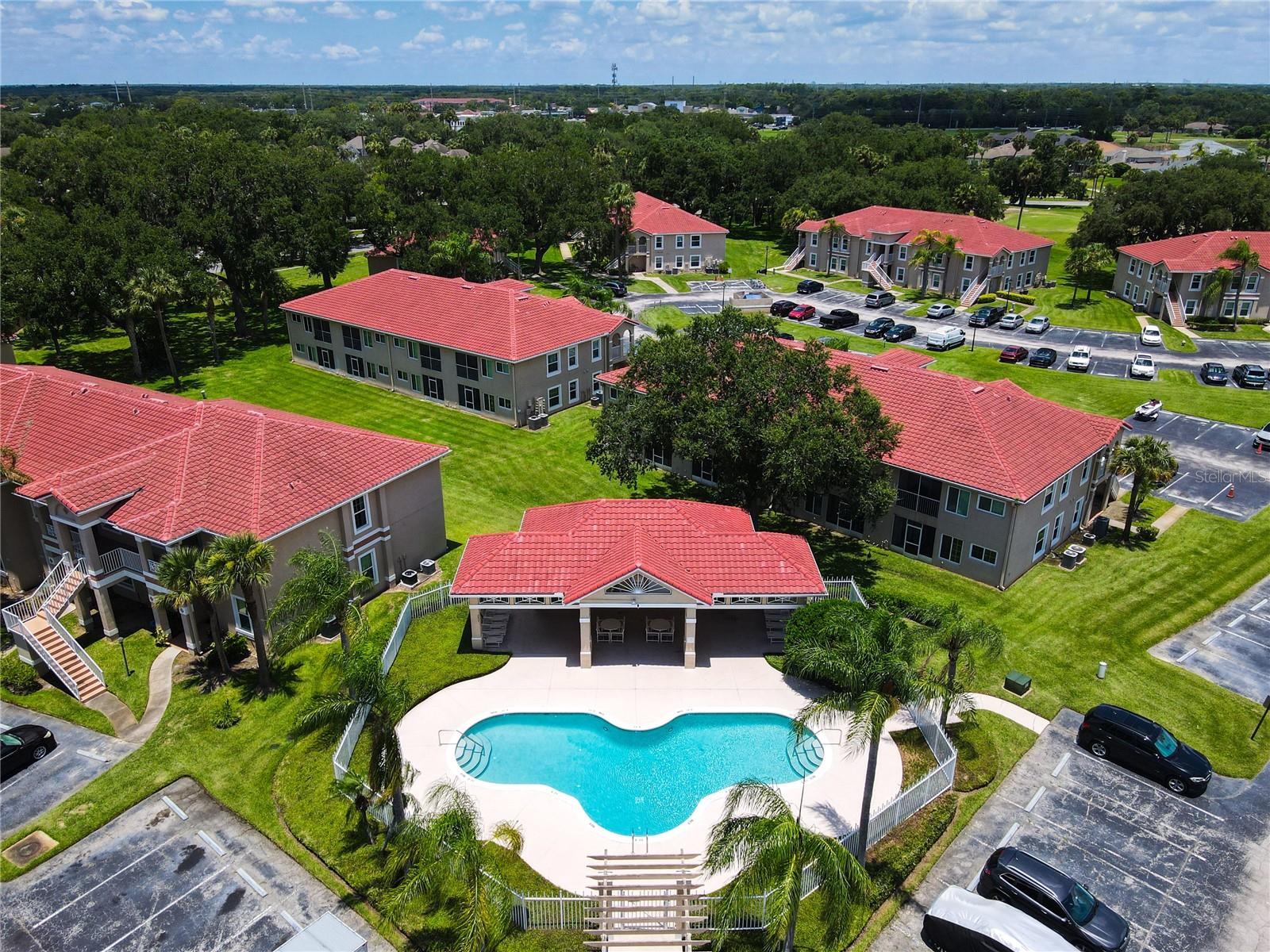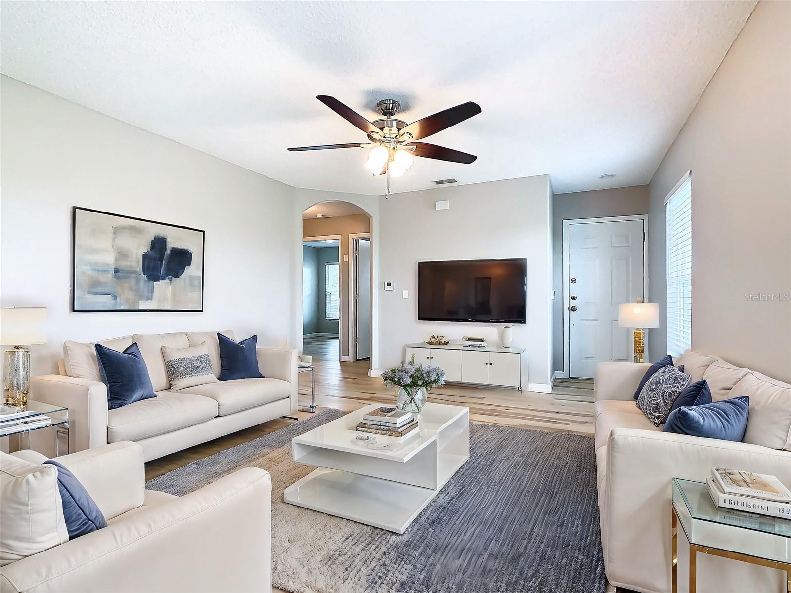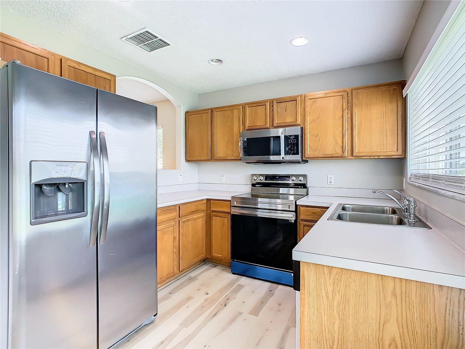 This is your opportunity of owning amazing investment property or your first Home!!! Discover relaxed living in this stunning 1st floor cornet lot unit featuring 3 bedroom, 2 bathroom condo inside the community of Osprey Cove. This home is elegantly laid out with new solid vinyl wood floors throughout, creating a sleek and cohesive look. The interior boasts vaulted high ceilings and open floor plan, offering a spacious and airy feel that is both inviting and functional. A nice kitchen with new stainless steel stove, microwave, dishwasher, new ceiling fans in the master bedroom and a newer AC UNIT. The large living area is filled with natural light that leads to a serene back porch with a storage room that presents a stunning view of a meticulously maintained golf course and Tennis courts, perfect for tranquil mornings and peaceful evening retreats watching the sunset. The master suite offers a walk-in closet, double sinks in the bathroom and a remodeled shower with beautiful tile. Enjoy the convenience of an in-unit laundry, a community pool, tennis courts, and the golf course at The Oaks. This property offers a unique blend of lifestyle, comfort and lifestyle in Kissimmee, Ideally located near shopping and dining, making it a perfect choice for those seeking sophistication and convenience.