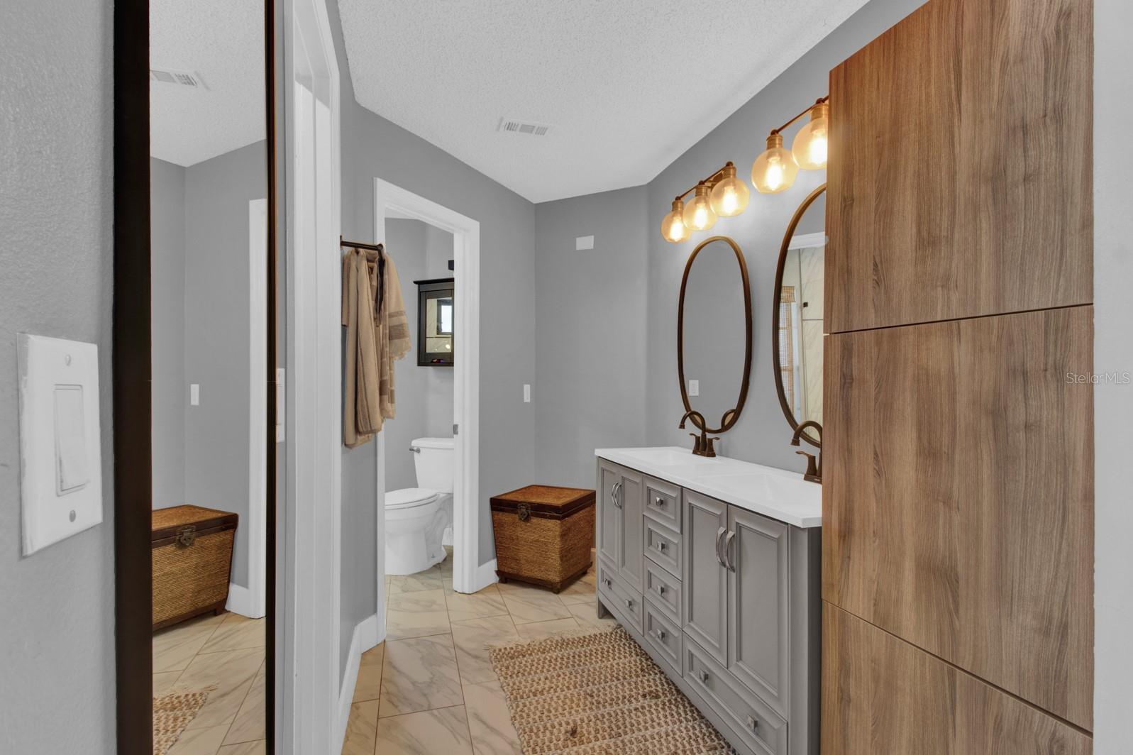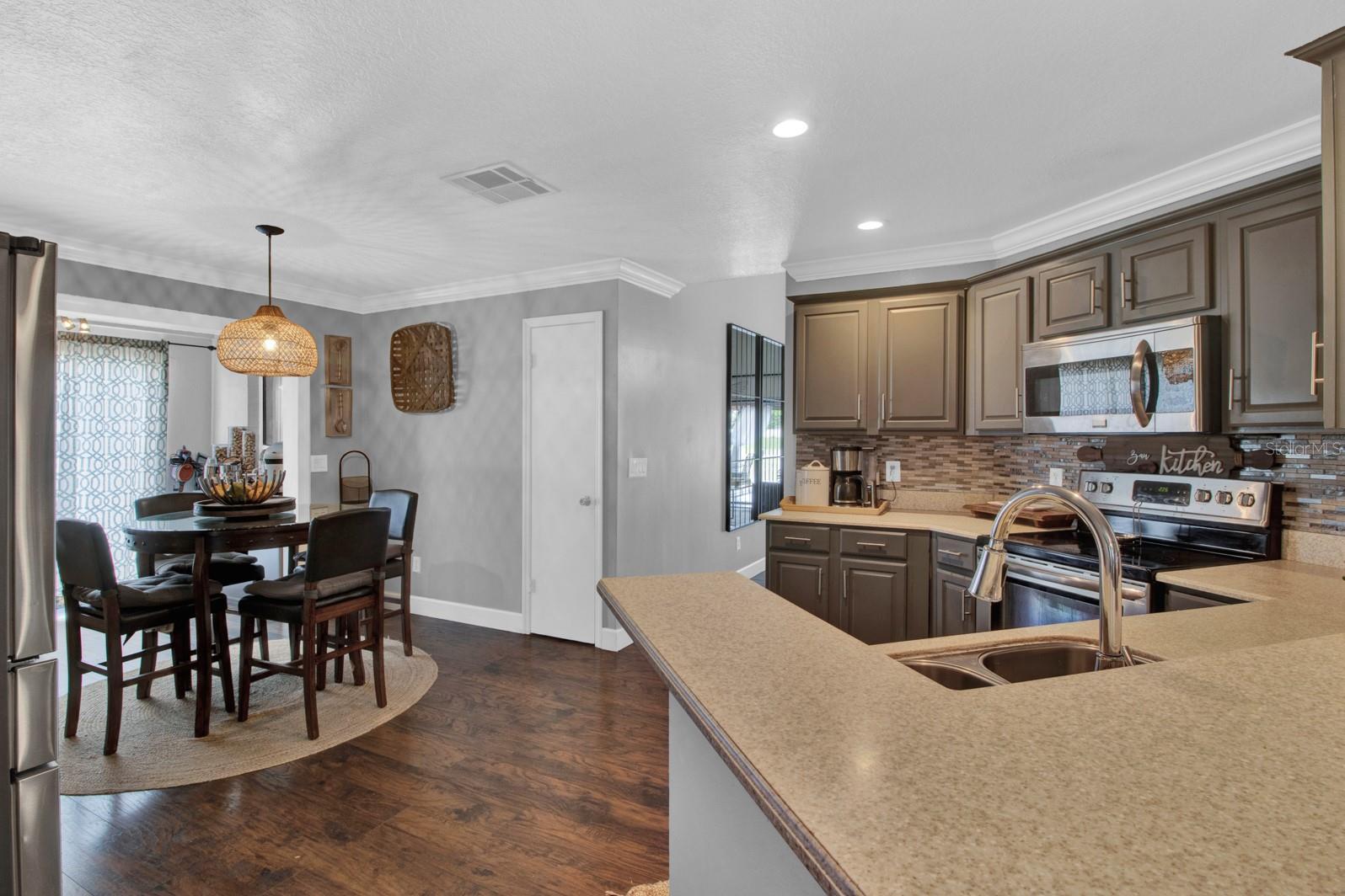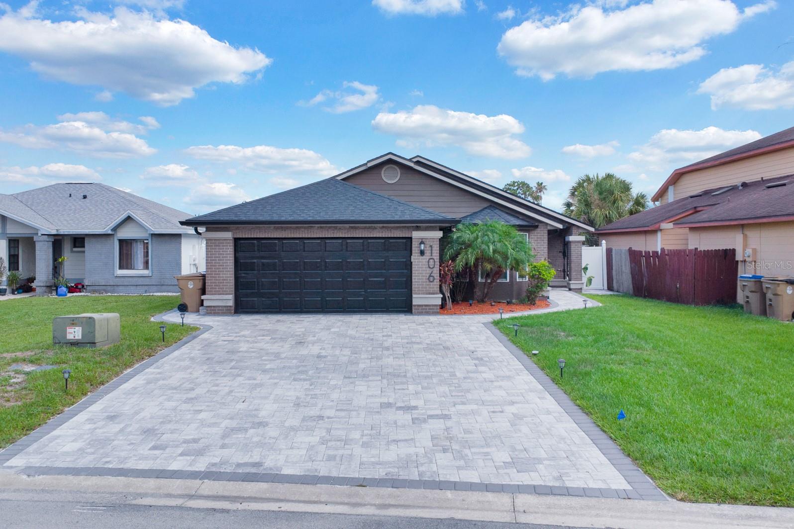 Welcome to the meticulously maintained one-story concrete block home with exposed brick and a bay window. 3 bedrooms, two bathrooms, split floor plan, with a cozy family room, formal living and dining room. All major rooms have been renovated including the kitchen, master and guest bathroom. Completed renovated master bathroom offers a walk-in closet, double sink vanity, walk-in shower and custom storage cabinet. The kitchen is in the center of the home featuring a breakfast bar, Corian countertops, stainless-steel appliances, dinette and office space. The formal dining and living room features soaring vaulted ceilings offering lots of natural light. Walk into a tropical oasis and enjoy the outdoor living space perfect for entertaining, featuring a custom-built wall mounted gazebo, custom deck, electric fireplace, hot tub, outdoor kitchen, custom lighting throughout and so much more. Vinyl fenced backyard with NO REAR neighbors and a pond view. Updated and newly installed finishes include complete roof replacement & gutters with Underground Downspouts in 2020, Eco Smart Tankless Water Heater installed in 2023, titanium grey pavers installed on the oversized driveway including pathways on both sides of the home in 2023. Home also includes Aluminum Hurricane Panels. And the best part is there’s NO HOA & NO CDD!!! PRIME LOCATION!!! Conveniently located off Osceola Parkway, 1 mile to the FL Turnpike, 2 miles to SR 417 less than 15 minutes to Orlando International Airport, 15 minutes to Lake Nona and just minutes to shopping centers and eateries. Move in ready! Schedule a private showing TODAY!